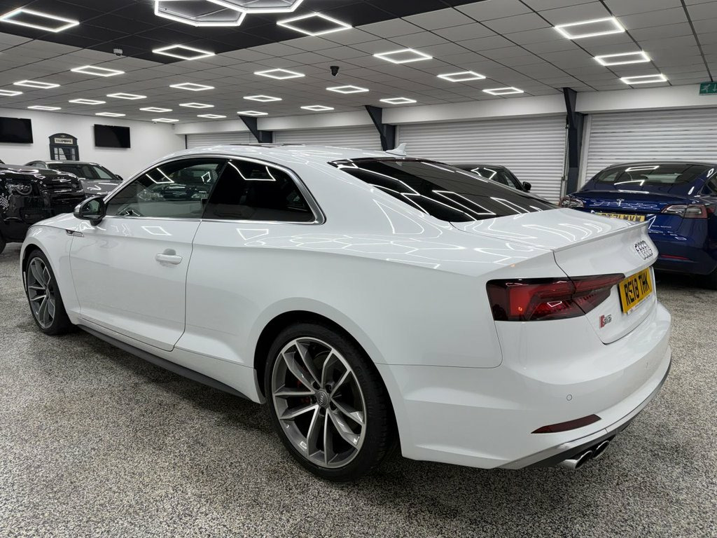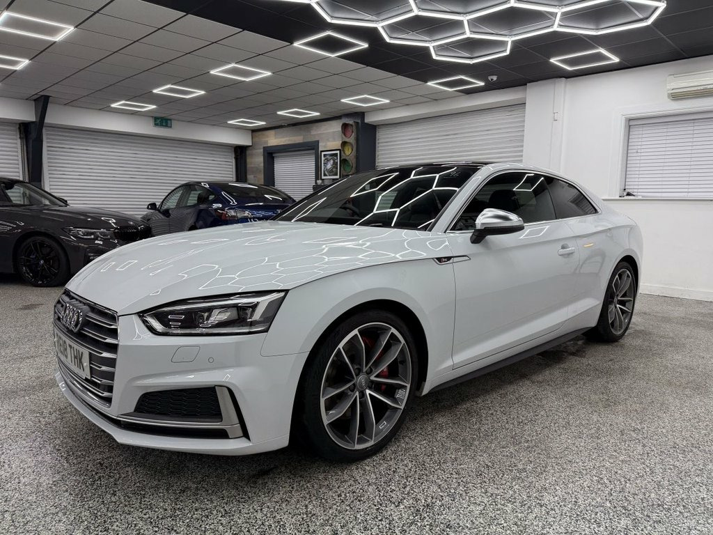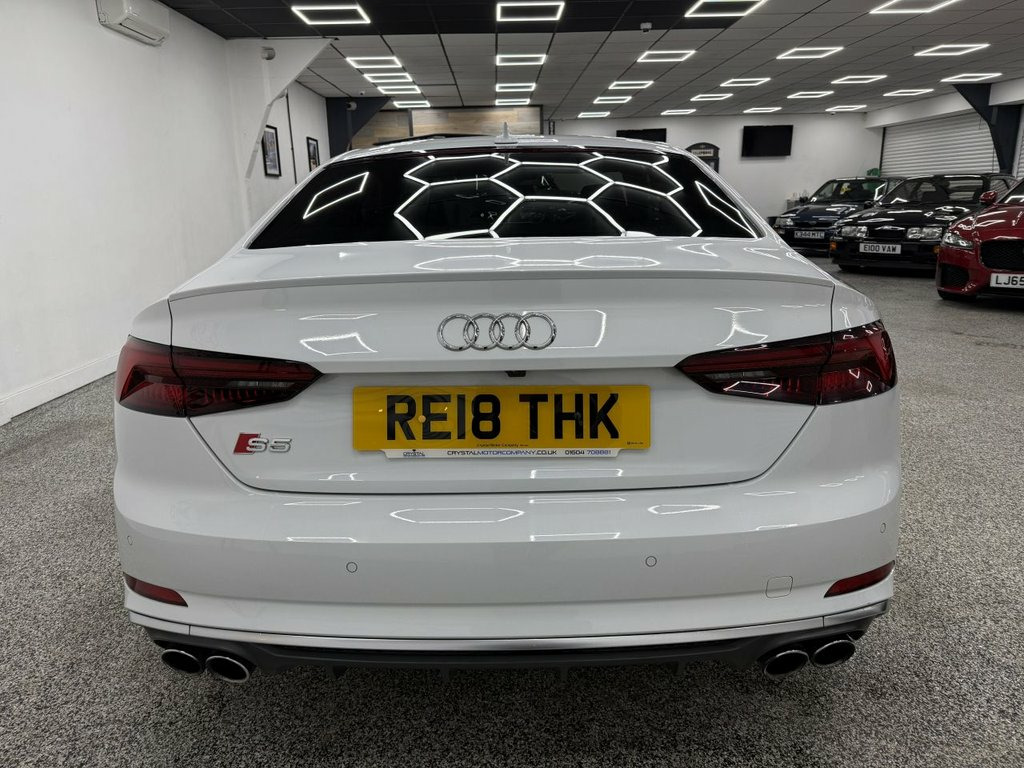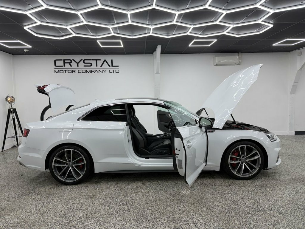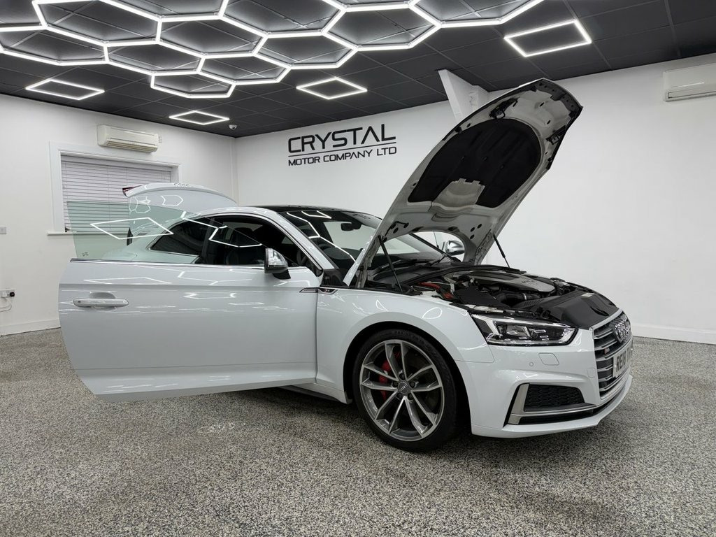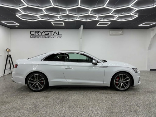 Crystal motor company are delighted to offer for sale this beautifully presented 2018 AUDI S5 3.0 TFSI V6 Coupe 2dr Petrol Tiptronic quattro Euro 6 (s/s) (354 ps) finished in WHITE. This car comes with TWO KEYS, THREE FORMER KEEPERS, FULL AUDI SERVICE HISTORY, LAST SERVICED ON 27/01/2026 AT 29,685 MILES. This car is equipped with 19" ALLOY WHEELS, RED BRAKE CALLIPERS, FRONT AND REAR PARKING SENSORS, REAR REVERSING CAMERA, ELECTRIC FOLDING WING MIRRORS, MATRIX LED HEADLIGHTS, OPENING PANORAMIC ROOF, BLACK LEATHER SEATS, ELECTRIC FRONT SEATS, MEMORY DRIVERS SEAT, HEATED FRONT SEATS, MASSAGE FRONT SEATS, FLAT BOTTOM STEERING WHEEL, PADDLE SHIFT, CRUISE CONTROL, VIRTUAL COCKPIT, AMBIENT LIGHTING (30 COLOUR CHOICE), CARBON FIBRE INTERIOR TRIMS, AUTO HOLD ASSIST, DAB RADIO, BLUETOOTH AUDIO, BLUETOOTH PHONE CONNECTION, SATNAV, APPLE CARPLAY, ANDROID AUTO. The car is 100% HPi clear. Part exchange and finance are available and all major credit and debit cards accepted. Crystal Motor Company Ltd Used Programme includes a full PDI inside and out, MOT, mileage certificate and a full inside and out valet. You can request a personalised video with attention given to any specifics you would like a better view of and we will be pleased to assist you. Likewise, we offer our customers a free collection service. Our journey began in 1996 with the aim to deliver the best possible customer experience, you will enjoy a completely hassle free approach, no pressure and great prices, values we 19in Alloy Wheels - 5-Spoke Cavo Design , 2 x USB Charging Ports and 1 x AUX-IN, 4-Way Electric Lumbar Support, 6-Airbag System, ABS - Anti-Lock Braking System, Aluminium-Effect Door Mirror Housings, Anti Theft Locking Wheel Bolts, Anti-Theft Alarm, Audi Beam, Audi Connect Safety and Service, Audi Drive Select, Audi Smartphone Interface, Audi Sound System, Audi Virtual Cockpit, Auto-Dimming Rear-View Mirror, Bluetooth Interface, Brake Calipers - Red, Brake Calipers Painted in Black with S5 , Cloth Headlining in Black, Comfort and Sound Package, Contrast Stitching on Seats - Steering W, Cruise Control with Speed Limiter, DAB Digital Radio Reception, Deluxe 3-Zone Electronic Climate Control, D
