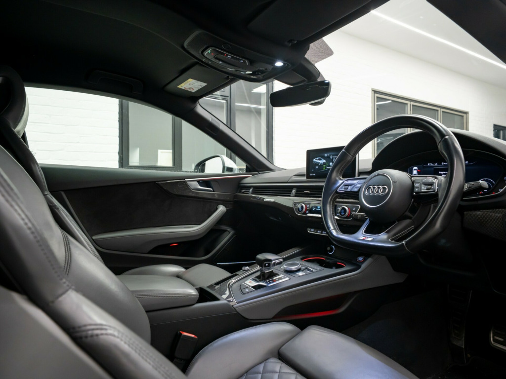 Newly available for sale from our Brighton location is this 2016 (66) Audi S5 Coupe finished in the timeless colourway of Florett Silver Metallic over Quilted Rotor Grey Fine Nappa leather.Factory equipment with option codes:9VS - Bang & Olufsen SoundKA6 - 360 CamerasKS1 - Head Up Display (HUD)PCN - Tour assist packPCZ - City assist pack0Y1 - Climatic Zones1G5 - Space Saving Spare wheel1N8 - Dynamic power steering1X1 - 4WD (Quattro)2H9 - Audi Drive Select2PF - Leather multi-function sports steering wheel3B3 - Isofix3L5 - Electric & heated Sports front seats4E2 - Power tailgate4F2 - Keyless entry4GF - Heat reflecting windscreen5MK - Carbon decorative inserts6E3 - Front Centre Armrest6I1 - Lane Keep Assist6XE - Power folding & heated mirrors7UG - Nav system - High7X5 - Park Distance Control8G4 - LED Matrix Beam Headlights8SP - LED Rear Lamps8T8 - Adaptive cruise9AQ - Air conditioning system+QQ2 - Ambient int lightingQV3 - DABVW1 - Privacy glassA JL Audio boot subwoofer is currently installed, which can be removed on request.Full Service history exclusively at Audi Main Dealerships:04/12/17 - 13,232 m - Insp with Oil Change08/11/18 - 25,388 m - Insp with Oil Change (Flexible)20/06/19 - 33,337 m - Insp with Oil Change & Spark Plugs11/12/19 - 37,967 m - Insp with Oil Change & Spark Plugs16/12/20 - 47,605 m - Oil Change Service21/10/21 - 58,879 m - Insp with Oil Change17/11/22 - 67,390 m - Oil Change Service17/11/22 - 67,390 m - Brake Fluid Service19/10/23 - 73,259 m - Insp with Oil Change10/06/24 - 82,616 m - Oil, Dust & Pollen Service13/06/24 - 82,616 m - Brake Fluid & Spark Plug ServiceThe model runs a 30000 km or 2 yr variable service schedule. Its next service is due at 101257 miles or in June 26, whichever comes first.With the car comes its 2 keys, book packs, Audi erWin service history printout, new MOT, HPI Clear report & V5 logbook showing 1 former keeper.Finance is available for business & personal users from our panel of 12 direct-to-dealer lenders, & part exchange is welcome.