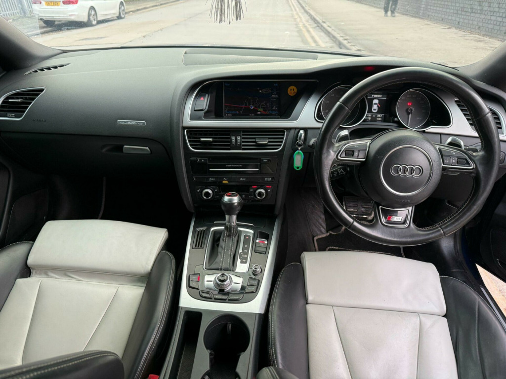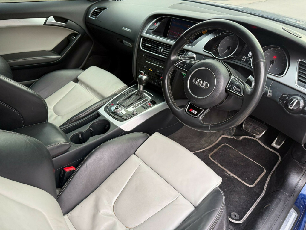 This 2014 Audi S5 TFSI V6 offers a compelling blend of performance and practicality, making it an excellent choice for discerning drivers. Powered by a potent 3.0 litre petrol engine and featuring Audi's renowned four wheel drive system, this S5 delivers an engaging driving experience. Inside, you'll find comfort and convenience with electronic three zone climate control, ensuring everyone enjoys the perfect temperature. For effortless parking, rear parking sensors are fitted, and the Bi-Xenon Plus headlights with automatic activation provide excellent visibility in all conditions. Connectivity is also a breeze thanks to the mobile telephone preparation with Bluetooth interface.Beyond its impressive specifications, this Audi S5 stands out with its remarkably low insurance group, offering peace of mind and potentially lower running costs compared to similar vehicles. Furthermore, the generous boot space ensures you have ample room for luggage, shopping, or sports equipment, highlighting its versatility for everyday life and longer journeys. These practical advantages, combined with the S5's inherent performance and refinement, make it a truly well rounded and desirable vehicle.FINANCE AVAILABLE, you can apply finance on our website at www.carsealtd.co.uk, If your finance is approved, you can drive the car same day. Recently Mot and Serviced, ULEZ Qualified, Full Service Done, 1 year AA breakdown cover also available for complete peace of mind. Call for more info * Viewing by appointments available* Open 6-days a week Monday to Saturday, Warranty Supplied * P/X Welcome * 100% HPI Clear * VOSA * HPI * Experian Checked and Verified * 5 Days Drive Away Insurance Available * T&C's Apply. 100% Customer Satisfaction. Please call us for more information and to book an appointment to view the car. 1 year AA breakdown cover also available for complete peace of mind. Finance arranged. Please note All our cars attract £99 admin fee. OUR SHOWROOM ADDRESS: 10 Choats Road, Dagenham. RM9 6BF. Please VISIT OUR WEBSITE FOR MORE CARS AT www.carsealtd.co.uk ivacy glass, navigation system, rear camera, parking sensors, heated front seats, 12v power socket - centre console, 19in alloy wheels - 5-parallel spoke design, 6.5in display screen, abs - anti-lock braking system, aux-in socket, airbags - driver, airbags - front passenger, airbags - front side, airbags - head level side for front and rear, alarm - thatcham category 1, aluminium-effect door mirror housings, anti theft locking wheel bolts, auto opening boot lid, auto-dimming rear-view mirror, automatic wipers with rain sensor, brake calipers - painted with s5 logo, car jack, climate control - electronic 3-zone, cloth headlining in black, colour drivers information system - dis, concert radio, cruise control, cup holders - centre console, dab digital radio, door mirrors - electrically adjustable and heated, door sill trims - aluminium with s5 logo, esp - electronic stability programme, electric windows - front, electromechanical parking brake, electromechanical power steering, enhanced braking system, exterior aluminium package, first aid kit, front centre armrest, front fog lights, front and rear floor mats, headlights - bi-xenon plus, headlights - light sensor, headlights - range adjustment, headlights washers, isofix child seat preparation front and rear, inlays - matt brushed aluminium, intelligent key, interior light package, led daytime running lights, led rear lights, leather door armrests, mobile telephone preparation - bluetooth interface, radiator grille - high gloss black, radiator grille - s design with s5 logo, rear parking sensors, rest recommendation system, s design body styling, s instrument dials, seats - front electric adjustment, seats - front sports with electric lumbar support, seats - super sports with electric adjustment and lumbar support, space saver spare wheel, speakers x10, split folding rear seat, steering column - rake and reach adjustment, steering wheel - 3-spoke leather/shift paddles, steering wheel - multi-function, suspension - s sports, through-load facility with ski-snowboard bag, tool kit