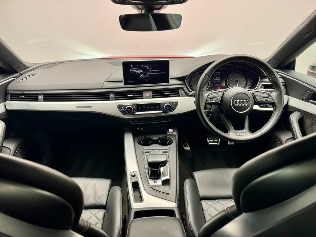 Finished in Misano Red with Fine Nappa Leather - S Super Sport Seats - S Embossed - Black Interior. --- FACTORY SPEC --- It boasts a very desirable spec list from the factory including; Comfort and Sound Package / Rear-View Camera / 19in Alloy Wheels - 5-Spoke Cavo Design - Contrasting Grey - Partly Polished / LED Headlights with LED Rear Lights and Dynamic Rear Indicators / High-Beam Assist / LED Interior Light Package / Pneumatically Adjustable with Massage Function / Electrically Adjustable Front Seats / 4-Way Electric Lumbar Support / Heated Front Seats / Audi Smartphone Interface / Cruise Control with Speed Limiter / High Gloss Package / Brake Calipers Painted in Black with S5 Logo at the Front / MMI Navigation Plus / Bluetooth Interface / DAB Digital Radio Reception / Door Mirrors - Electrically Adjustable and Heated with Built-in LED Indicators / Auto-Dimming Rear-View Mirror / Tyre Pressure Warning Light Privacy Glass plus so much more. --- SERVICE HISTORY --- Excellently maintained with service history present, 8 services in total with 7 from AUDI and the most recent that included a Brake Fluid change completed on 52,500 miles at our local Independent. Fine Nappa Leather - S Super Sport Seats, Misano Red, Rear-View Camera, Comfort and Sound Package, 19in Alloy Wheels - 5-Spoke Cavo Design , 2 x USB Charging Ports and 1 x AUX-IN, 4-Way Electric Lumbar Support, 6-Airbag System, ABS - Anti-Lock Braking System, Aluminium-Effect Door Mirror Housings, Anti Theft Locking Wheel Bolts, Anti-Theft Alarm, Audi Beam, Audi Connect Infotainment Services - 3 M, Audi Connect Safety and Service, Audi Drive Select, Audi Smartphone Interface, Audi Sound System, Auto-Dimming Rear-View Mirror, Bluetooth Interface, Brake Calipers Painted in Black with S5 , Cloth Headlining in Black, Contrast Stitching on Seats - Steering W, Cruise Control with Speed Limiter, DA