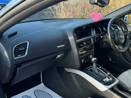 FULL SERVICE HISTORY - 13 SERVICES - INTERVALS 14K, 20K, 21K, 29K, 38K, 48K, 58K, 59K, 62K, 70K, 83K, 86KLOGBOOKK2This 2012 Audi S5 TFSI V6 is a remarkable example of German engineering, boasting a powerful 3.0 litre petrol engine and a sophisticated four wheel drive system. Equipped with Bi-Xenon Plus headlights for superior visibility and an Acoustic Parking System with rear sensors, parking is made simple. Inside, you'll find the comfort of Electronic 3-Zone Climate Control, ensuring a pleasant environment for all occupants, and a Bluetooth interface for seamless mobile telephone preparation.Experience exhilarating performance with this Audi S5, capable of accelerating from 0 to 62 miles per hour in a swift 5.1 seconds, a figure that demonstrates its dynamic capabilities. This impressive acceleration, combined with its spacious boot, sets it apart from many other vehicles in its class, offering both thrilling driving and practical utility. rough-load facility with ski-snowboard bag, audi drive select, bang and olufsen sound system, cd changer, cruise control, dab digital radio, heated front seats, audi parking system plus, adaptive cruise control, 12v power socket x2, 19in alloy wheels - 5-spoke star design, abs - anti-lock braking system, aux-in socket, acoustic parking system - rear, airbags - driver, airbags - front passenger, airbags - front side system, airbags - head level side for front and rear, alarm - thatcham category 1, audi sound system, auto opening boot lid, automatic wipers with rain sensor, climate control - electronic 3-zone, colour drivers information system - dis, concert radio - mp3-cd player, cup holders - centre console, door mirrors - electrically adjustable and heated, esp - electronic stability programme, electric windows - front and rear, electrically adjustable 4-way lumbar support, electromechanical power steering, first aid kit, front centre armrest, front fog lights, headlights - automatic adjustment, headlights - bi-xenon plus, headlights washers, isofix child seat preparation front and rear with passenger airbag deactivation switch, inlays - matt brushed aluminium, intelligent key, interior light package, led daytime running lights, leather armrests, light and rain sensor package, mobile telephone preparation - bluetooth interface, seats - drivers manual height adjustment, seats - front electric adjustment, space saver spare wheel, split-folding rear seats, steering column - rake and reach adjustment, steering wheel - 3-spoke leather - multi-function - sports - shift paddles, steering wheel - multi-function, suspension - s sports