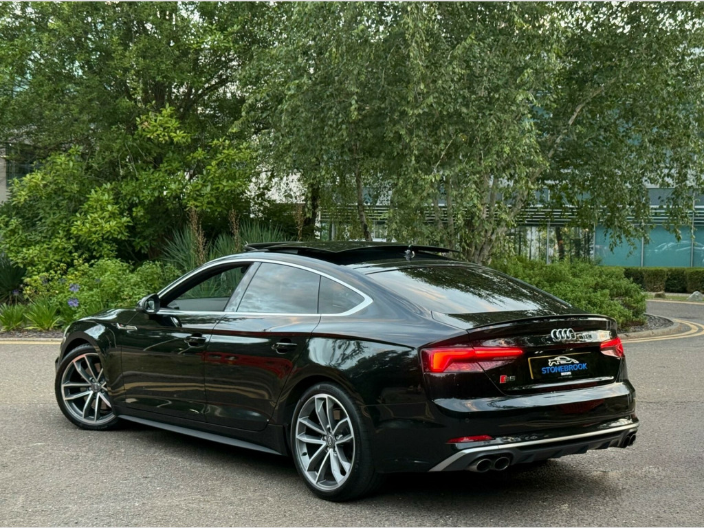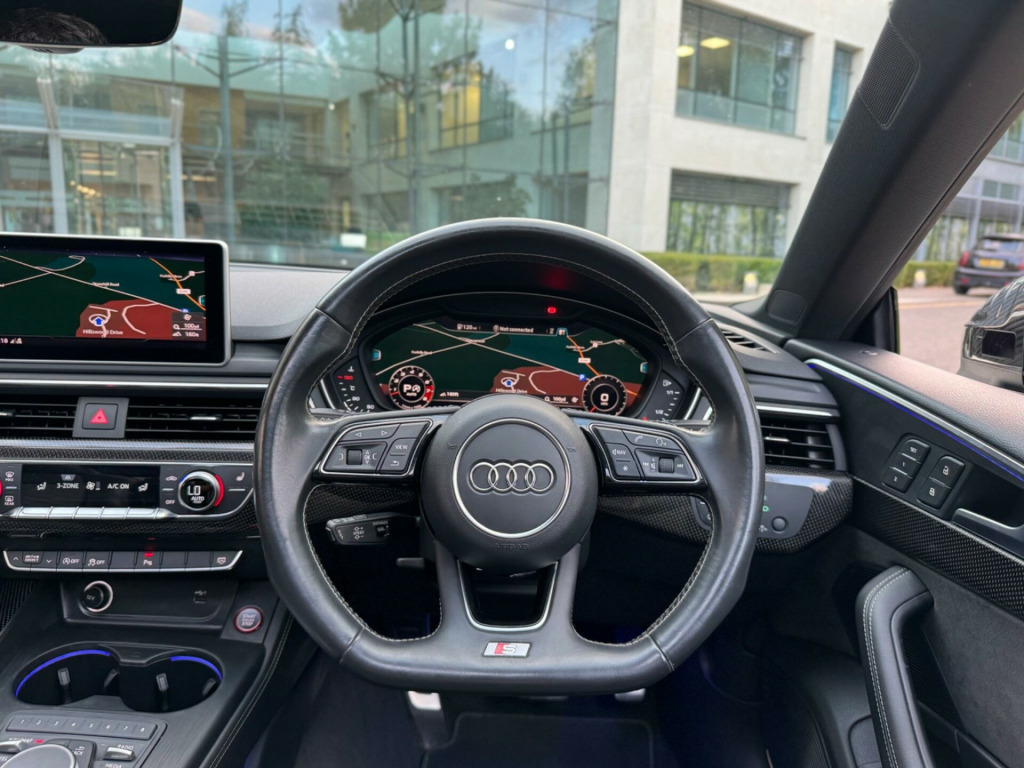 2018 (18) Audi S5 3.0 TFSI V6 Sportback Quattro - 57,500 miles - £26,389Finished in Black with S Super Sport Fine Nappa Leather seats in Black, this high-spec Audi S5 Sportback offers the perfect balance of luxury, technology, and performance. Backed by a full audi main dealer service history, with a fresh Audi main dealer service just completed and 12 months MOT, it's ready to drive away.This is not your average S5 , equipped with over £6,000 in optional extras, including the Comfort & Sound Pack, Driver Assistance Pack, Panoramic Glass Roof, Bang & Olufsen 3D Sound, and much more.___________Spec Highlights Include:•Driver Assistance Pack - Tour•Comfort & Sound Pack - incl. Bang & Olufsen 3D Sound + Keyless Entry•Vision Pack + Light & Vision Pack•Matrix LED Headlights with Dynamic Front & Rear Indicators • Apple CarPlay • Hill Hold Assist•Camera-Based Traffic Sign Recognition•Audi Side Assist + Rear Cross Traffic Assist (Pre-Sense Rear)•Rear-View Camera • Blind Spot Assist • Front and Rear Heated Seats •Flat-Bottomed Multi-Function Steering Wheel•Audi Virtual Cockpit•Extended LED Interior Lighting Pack (Multi-Coloured)•Electrically Adjustable Front Seats with Driver Memory • Carbon Door Mirrors •Massage Front Seats with Electric Lumbar Support••Heated Folding Door Mirrors - Auto-Dimming + Memory•Privacy Glass•Panoramic Glass Sunroof•Carbon Atlas Inlyas?Dealer Benefits Included:•ULEZ Compliant•Full Service History (just serviced at Audi Main Dealer)•12 Months MOT•6-Month Warranty Included (extendable up to 3 years)•AA Approved Dealer with 6 Months Roadside Cover•HPI Clear (report available)•£0 Deposit Finance Options Available•Competitive Part Exchange Welcome•Nationwide Delivery AvailableThis is a rare spec S5 that ticks all the boxes, luxury, looks, tech, and Quattro performance. Call us today to arrange a viewing, secure finance, or schedule delivery. We're here to help with a no-pressure. in alloy wheels - 5-spoke cavo design - contrasting grey - partly polished, 2 x sdxc card readers, 2 x usb charging ports and 1 x aux-in, 4-way electric lumbar support, 6-airbag system, aluminium-effect door mirror housings, anti theft locking wheel bolts, anti-theft alarm, audi connect infotainment services - 3 month trial, audi connect safety and service - e-call, audi drive select, audi smartphone interface, audi sound system, auto-dimming rear-view mirror, bluetooth interface, brake calipers painted in black with s5 logo at the front, cd drive, cloth headlining in black, cruise control with speed limiter, dab digital radio reception, deluxe 3-zone electronic climate control, door handles - chrome inserts, door mirrors - electrically adjustable and heated with built-in led indicators, driver information system - 7in colour display, driver and front passenger airbag with front passenger airbag deactivation, esc - electronic stabilisation control inc abs - asr and edl, electric windows - front, electrically adjustable front seats, electromechanical parking brake, electromechanical power steering, extended interior upholstery pack, first aid kit and warning triangle, fixed rear seat bench with storage tray in seat, front centre armrest, front and rear floor mats, gear-lever knob in black leather, gear-lever with diamond s badge, headlight washers, heat-insulating glass - side and rear windows, heated front seats, high gloss package, high multi-function 3-spoke leather steering wheel, high-beam assist, isofix child seat mounting and top tether, illuminated door sill trims with s logo, inlays - matt brushed aluminium, key with s5 logo, keyless go, led headlights with led rear lights and dynamic rear indicators, led interior light package, leather door armrests and knee pad, light and rain sensor, luggage compartment mat, lumbar support - pneumatically adjustable with massage function, mmi navigation plus, mmi radio plus with 7in colour mmi screen, mmi touch control panel, model and engine technology badges at rear, multi collision brake assist, non-smoking package, parking system plus, pedals and footrest - stainless steel, pop-up bonnet for pedestrian protection, power operated tailgate, pre-sense city, rear grille - black grained, rear spoiler, remote central locking, s instrument dials, s model enhanced braking system, s radiator grille in twilight grey - matt with dual struts in aluminium, s rear diffuser in twilight grey - matt with diffuser trim in matt aluminium and honeycomb grill in black, s specific air inlet horizontal inlay in matt aluminium, s specific air inlets in titan black - matt, s specific dual-branch chrome tailpipes with twin oval pipes each on left and right, s specific front and rear bumpers, s sport suspension, s5 badges on grille - front wing panels and rear, seat belt monitoring, space saver spare wheel, sun visors including vanity mirrors, tool kit and car jack, tyre pressure warning light, variable restraint system, voice control system, windscreen with acoustic glazing, audi side assist including pre-sense rear, rear-view camera, bang and olufsen 3d sound system, camera-based traffic sign recognition, door mirrors - folding, door mirrors - folding with auto-dimming and memory function, panoramic glass sunroof, privacy glass, 19in alloy wheels - 5-arm turbine design - magnesium look - gloss turned finish, door mirrors - heated-electrically adjustable-folding, light and vision pack, audi virtual cockpit, comfort and sound package, electrically adjustable front seats with memory function for drivers side, extended led interior lighting package - multi-coloured, flat-bottomed 3-spoke leather high multi-function steering wheel, heated front and outer rear seats, inlays - carbon atlas, fine nappa leather - s super sport seats - s embossed - black, vision pack, driver assistance pack - tour, hill hold assist, matrix led headlights with led rear lights and dynamic front and rear indicators, dynamic steering