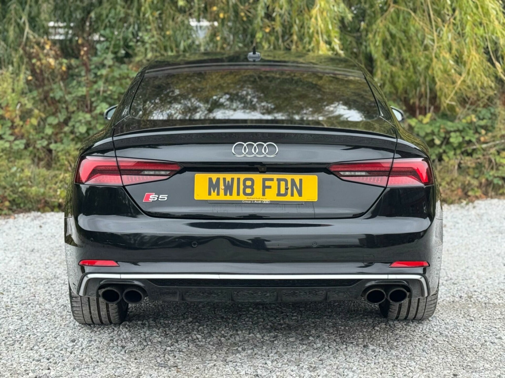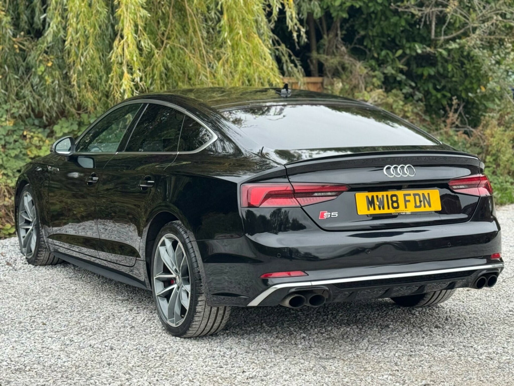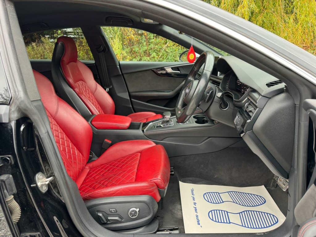 1 FORMER KEEPER2 KEYSSERVICE HISTORYLOGBOOK£3,045 WORTH OF EXTRASOptional Equipment when new£3,045inc. VATComfort and Sound Pack£1,295Privacy glass£375Door mirrors (folding with auto-dimming and memory function)£325Red brake calipers£300Audi Virtual Cockpit£250Electrically adjustable front seats with memory function for the driver's side£200Piano finish, black£200Flat-bottomed 3-spoke leather high multi-function steering wheel£100Brilliant black, solid-Total price when new£50,410inc. VATEquipment:Navigation SD CardParking Sensor(s)Climate ControlLeather Trim19'' Alloy WheelsPrivacy GlassThis 2018 Audi S5 TFSI V6 offers an exhilarating driving experience with its powerful 3.0 litre petrol engine and four wheel drive system. As a Euro 6 compliant vehicle, it meets stringent emission standards. This model comes equipped with the desirable Comfort and Sound Package, which includes keyless entry for effortless access, a luxury branded sound system to enhance your journeys, and parking assistance with a rear camera for added convenience. Further enhancing comfort are the heated front and outer rear seats, ensuring a pleasant atmosphere in all conditions. The door mirrors are both folding and feature auto dimming with a memory function, alongside the striking red brake callipers that add a sporty aesthetic.The Audi S5 TFSI V6 boasts impressive performance, achieving 0-60mph in a rapid 4.5 seconds, demonstrating its dynamic capabilities. This acceleration figure highlights its superior performance compared to many other vehicles in its class. Practicality is also a strong point, with generous boot space designed to accommodate your luggage and shopping with ease. The combination of its potent engine, advanced features, and thoughtful design makes this Audi S5 a compelling choice for those seeking a blend of performance, comfort, and everyday usability. in alloy wheels - 5-spoke cavo design - contrasting grey - partly polished, 2 x usb charging ports and 1 x aux-in, 4-way electric lumbar support, 6-airbag system, abs - anti-lock braking system, aluminium-effect door mirror housings, anti theft locking wheel bolts, anti-theft alarm, audi beam, audi connect infotainment services - 3 month trial, audi connect safety and service, audi drive select, audi smartphone interface, audi sound system, auto-dimming rear-view mirror, bluetooth interface, brake calipers painted in black with s5 logo at the front, cloth headlining in black, contrast stitching on seats - steering wheel and gear lever gaiter, cruise control with speed limiter, dab digital radio reception, deluxe 3-zone electronic climate control, door mirrors - electrically adjustable and heated with built-in led indicators, esc - electronic stabilisation control inc abs - asr and edl, electric boot lid release, electric windows - front and rear, electrically adjustable front seats, electromechanical parking brake, electromechanical power steering, email - calendar and text messages can be displayed on your vehicles mmi, first aid kit and warning triangle, front centre armrest, front and rear floor mats, gear-lever knob in black leather, gear-lever with diamond s badge, heated front seats, high gloss package, high multi-function 3-spoke leather steering wheel with s badging and gear-shift paddles, high-beam assist, isofix child seat mounting and top tether, illuminated door sill trims with s logo, inlays - matt brushed aluminium, key with s5 logo, keyless go, led headlights with led rear lights and dynamic rear indicators, led interior light package, leather door armrests and knee pad, light and rain sensor, lumbar support - pneumatically adjustable with massage function, mmi navigation plus, multi collision brake assist, non-smoking package, parking system plus, pedals and footrest - stainless steel, pop-up bonnet for pedestrian protection, power operated tailgate, pre-sense city, rear grille - black grained, rear spoiler, s instrument dials, s model enhanced braking system, s radiator grille in twilight grey - matt with twin inlays in matt aluminium, s rear diffuser in twilight grey - matt with diffuser trim in matt aluminium and honeycomb grill in black, s specific air inlet horizontal inlay in matt aluminium, s specific air inlets in titan black - matt, s specific dual-branch chrome tailpipes with twin oval pipes each on left and right, s specific front and rear bumpers, s sport suspension, s5 badges on grille - front wing panels and rear, seat belt monitoring, space saver spare wheel, split-folding 3-seater rear seat bench in 3 parts - 40-20-40, tool kit and car jack, tow bar preparation, tyre pressure warning light, variable restraint system, windscreen with acoustic glazing, audi exclusive, privacy glass, audi virtual cockpit, comfort and sound package, fine nappa leather - s super sport seats - s embossed - magma red, flat-bottomed 3-spoke leather high multi-function steering wheel, heated front and outer rear seats, brake calipers - red, brilliant black, door mirrors - folding, door mirrors - folding with auto-dimming and memory function, electrically adjustable front seats with memory function for drivers side, extended led interior lighting package - multi-coloured, mythos black, hill hold assist, audi side assist including pre-sense rear, rear-view camera, rear side airbags, driver assistance pack - tour, customised paint