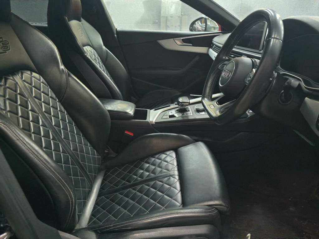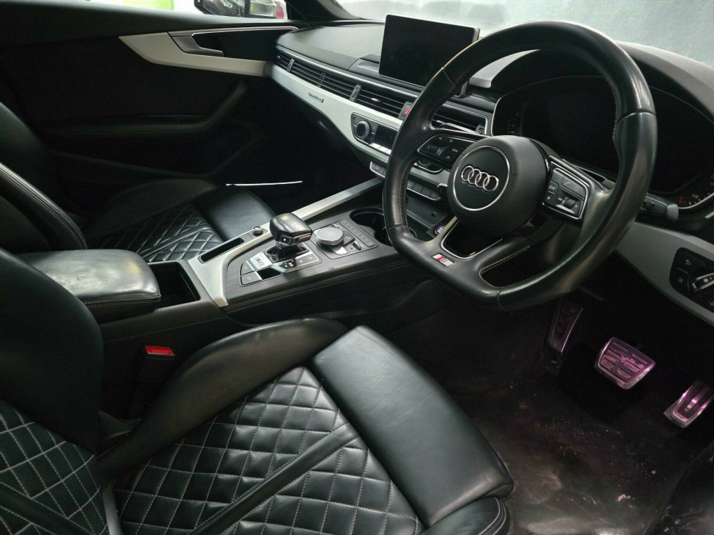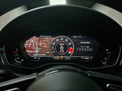 ***NEW SERVICE, MOT, MATURE COMPANY OWNER *** 2018 Audi S5 TFSI V6 boasts a clear vehicle history, offering peace of mind for its next owner. Under the bonnet, you'll find a powerful 3.0 litre petrol engine paired with a four wheel drive system, ensuring confident performance in all conditions. This Euro 6 compliant model also comes equipped with a suite of desirable features, including Deluxe 3-Zone Electronic Climate Control for personalised comfort, Keyless Go for effortless entry and starting, and a Bluetooth Interface for seamless connectivity.Experience exhilarating acceleration with a 0-60mph time of just 4.5 seconds, a testament to the S5's dynamic capabilities. The LED headlights and dynamic rear indicators not only enhance visibility but also contribute to the car's sophisticated appearance. Inside, the heated front seats provide extra comfort on colder days, while the generous boot space offers practicality for everyday use and longer journeys. These highlights demonstrate how this Audi S5 stands out from other vehicles in its class. in alloy wheels - 5-spoke cavo design - contrasting grey - partly polished, 2 x usb charging ports and 1 x aux-in, 4-way electric lumbar support, 6-airbag system, abs - anti-lock braking system, aluminium-effect door mirror housings, anti theft locking wheel bolts, anti-theft alarm, audi beam, audi connect infotainment services - 3 month trial, audi connect safety and service, audi drive select, audi smartphone interface, audi sound system, auto-dimming rear-view mirror, bluetooth interface, brake calipers painted in black with s5 logo at the front, cloth headlining in black, contrast stitching on seats - steering wheel and gear lever gaiter, cruise control with speed limiter, dab digital radio reception, deluxe 3-zone electronic climate control, door mirrors - electrically adjustable and heated with built-in led indicators, esc - electronic stabilisation control inc abs - asr and edl, electric boot lid release, electric windows - front and rear, electrically adjustable front seats, electromechanical parking brake, electromechanical power steering, email - calendar and text messages can be displayed on your vehicles mmi, first aid kit and warning triangle, front centre armrest, front and rear floor mats, gear-lever knob in black leather, gear-lever with diamond s badge, heated front seats, high gloss package, high multi-function 3-spoke leather steering wheel with s badging and gear-shift paddles, high-beam assist, isofix child seat mounting and top tether, illuminated door sill trims with s logo, inlays - matt brushed aluminium, key with s5 logo, keyless go, led headlights with led rear lights and dynamic rear indicators, led interior light package, leather door armrests and knee pad, light and rain sensor, lumbar support - pneumatically adjustable with massage function, mmi navigation plus, multi collision brake assist, non-smoking package, parking system plus, pedals and footrest - stainless steel, pop-up bonnet for pedestrian protection, power operated tailgate, pre-sense city, rear grille - black grained, rear spoiler, s instrument dials, s model enhanced braking system, s radiator grille in twilight grey - matt with twin inlays in matt aluminium, s rear diffuser in twilight grey - matt with diffuser trim in matt aluminium and honeycomb grill in black, s specific air inlet horizontal inlay in matt aluminium, s specific air inlets in titan black - matt, s specific dual-branch chrome tailpipes with twin oval pipes each on left and right, s specific front and rear bumpers, s sport suspension, s5 badges on grille - front wing panels and rear, seat belt monitoring, space saver spare wheel, split-folding 3-seater rear seat bench in 3 parts - 40-20-40, tool kit and car jack, tow bar preparation, tyre pressure warning light, variable restraint system, windscreen with acoustic glazing, rear-view camera, hill hold assist, rear side airbags, door mirrors - folding, door mirrors - folding with auto-dimming and memory function, privacy glass, audi virtual cockpit, comfort and sound package, electrically adjustable front seats with memory function for drivers side, fine nappa leather - s super sport seats - s embossed - black, flat-bottomed 3-spoke leather high multi-function steering wheel, storage package