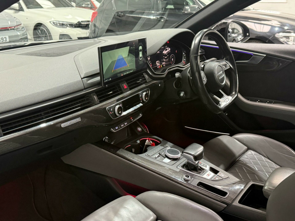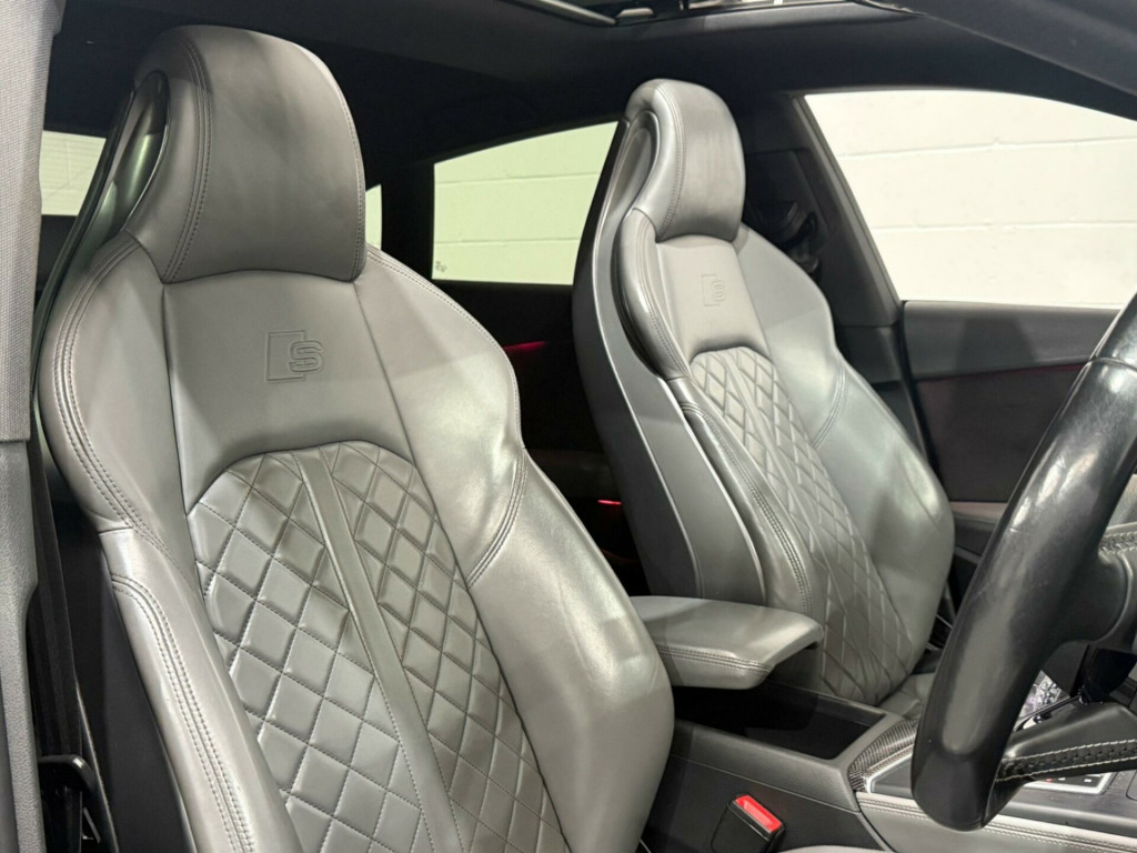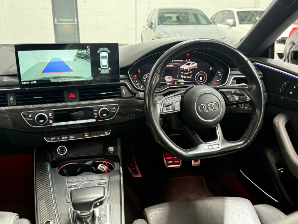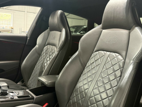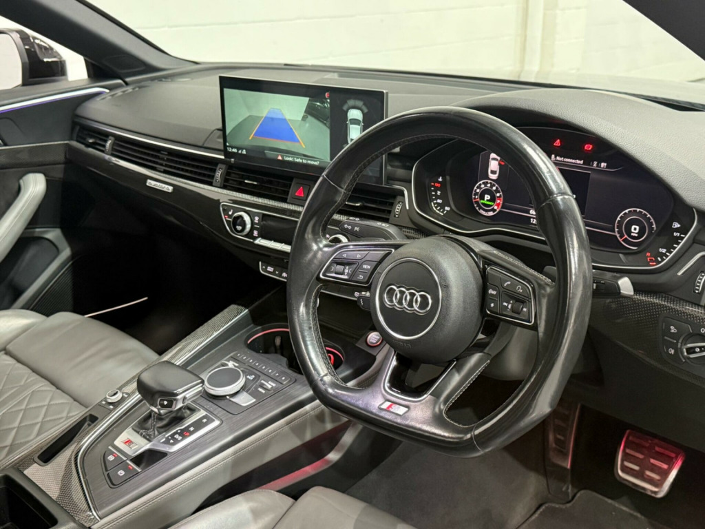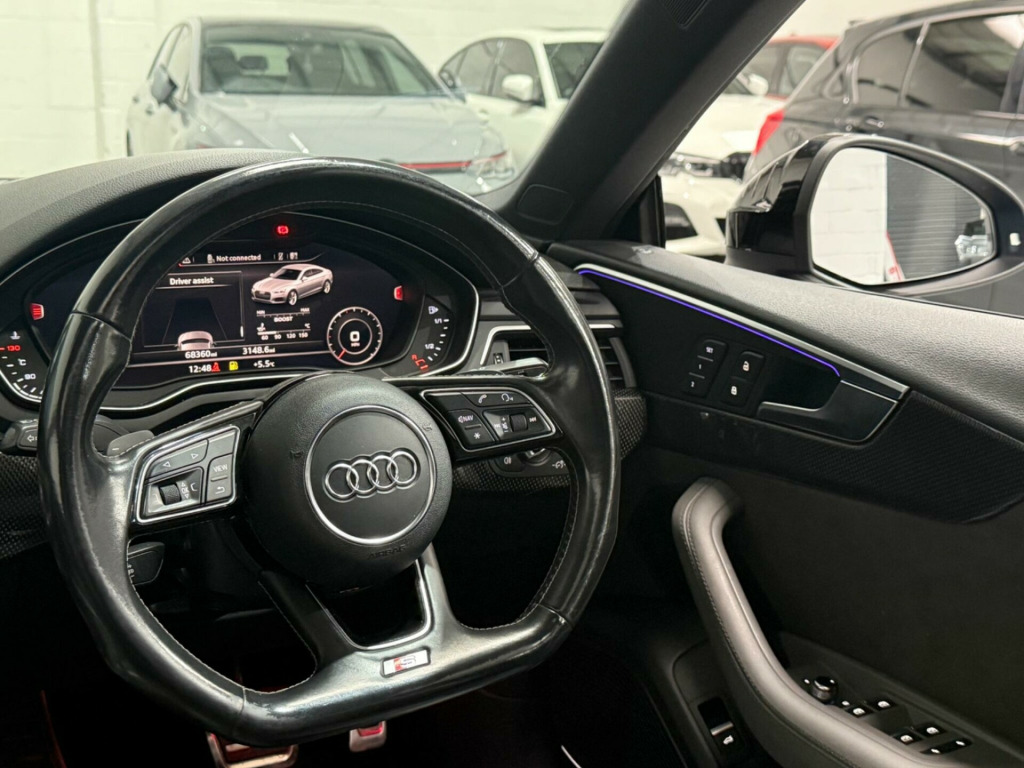 This 2017 Audi S5 TFSI V6 boasts a clear vehicle history and has had only two owners, offering peace of mind for its next custodian. Under the bonnet, a powerful 3.0 litre petrol engine paired with four wheel drive delivers exhilarating performance, all while meeting Euro 6 emissions standards. This sophisticated model comes equipped with a suite of advanced features, including a Head Up Display to keep your eyes on the road, a panoramic glass sunroof for an airy cabin feel, and the convenience of Audi Phone Box with wireless charging. Parking is made simpler with a rear view camera, and Audi Side Assist provides an extra layer of safety by monitoring blind spots.The Audi S5 TFSI V6 truly stands out with its impressive acceleration, reaching 0-60mph in a swift 4.5 seconds, a testament to its dynamic capabilities. This performance, combined with its large boot space, makes it a practical yet thrilling choice for everyday driving and longer journeys alike. These highlights demonstrate how this particular Audi S5 offers a superior driving experience compared to other vehicles in its class. in alloy wheels - 5-spoke cavo design - contrasting grey - partly polished, 2 x sdxc card readers, 2 x usb charging ports and 1 x aux-in, 4-way electric lumbar support, 6-airbag system, aluminium-effect door mirror housings, anti theft locking wheel bolts, anti-theft alarm, audi connect infotainment services - 3 month trial, audi connect safety and service - e-call, audi drive select, audi smartphone interface, audi sound system, auto-dimming rear-view mirror, bluetooth interface, brake calipers painted in black with s5 logo at the front, cd drive, cloth headlining in black, cruise control with speed limiter, dab digital radio reception, deluxe 3-zone electronic climate control, door handles - chrome inserts, door mirrors - electrically adjustable and heated with built-in led indicators, driver information system - 7in colour display, driver and front passenger airbag with front passenger airbag deactivation, esc - electronic stabilisation control inc abs - asr and edl, electric windows - front, electrically adjustable front seats, electromechanical parking brake, electromechanical power steering, extended interior upholstery pack, first aid kit and warning triangle, fixed rear seat bench with storage tray in seat, front centre armrest, front and rear floor mats, gear-lever knob in black leather, gear-lever with diamond s badge, headlight washers, heat-insulating glass - side and rear windows, heated front seats, high gloss package, high multi-function 3-spoke leather steering wheel, high-beam assist, isofix child seat mounting and top tether, illuminated door sill trims with s logo, inlays - matt brushed aluminium, key with s5 logo, keyless go, led headlights with led rear lights and dynamic rear indicators, led interior light package, leather door armrests and knee pad, light and rain sensor, luggage compartment mat, lumbar support - pneumatically adjustable with massage function, mmi navigation plus, mmi radio plus with 7in colour mmi screen, mmi touch control panel, model and engine technology badges at rear, multi collision brake assist, non-smoking package, parking system plus, pedals and footrest - stainless steel, pop-up bonnet for pedestrian protection, power operated tailgate, pre-sense city, rear grille - black grained, rear spoiler, remote central locking, s instrument dials, s model enhanced braking system, s radiator grille in twilight grey - matt with dual struts in aluminium, s rear diffuser in twilight grey - matt with diffuser trim in matt aluminium and honeycomb grill in black, s specific air inlet horizontal inlay in matt aluminium, s specific air inlets in titan black - matt, s specific dual-branch chrome tailpipes with twin oval pipes each on left and right, s specific front and rear bumpers, s sport suspension, s5 badges on grille - front wing panels and rear, seat belt monitoring, space saver spare wheel, sun visors including vanity mirrors, tool kit and car jack, tyre pressure warning light, variable restraint system, voice control system, windscreen with acoustic glazing, head-up display, audi phone box with wireless charging, audi side assist including pre-sense rear, rear-view camera, bang and olufsen 3d sound system, brake calipers - red, door mirrors - folding, panoramic glass sunroof, 19in alloy wheels - 5-parallel spoke design, audi virtual cockpit, comfort and sound package, electrically adjustable front seats with memory function for drivers side, extended led interior lighting package - multi-coloured, hill hold assist, fine nappa leather - s super sport seats - s embossed - rotor grey, flat-bottomed 3-spoke leather trimmed high multi-function steering wheel, inlays - carbon atlas, camera-based traffic sign recognition, matrix led headlights with led rear lights and dynamic front and rear indicators, 19in alloy wheels - 5-arm turbine design - magnesium look - gloss turned finish, 19in alloy wheels - multi-spoke design - contrasting grey - partly polished, privacy glass, storage package