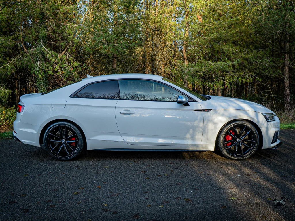 FREE DELIVERY WITHIN 200 MILES – Here we have a stunning Audi S5 finished in White. Being the S5 this car comes with fantastic spec from the factory, but this example is also equipped with a list of optional extras to set it apart from the rest such as: Fine Nappa Leather Super Sport Seats with S Embossed Logo in Black – Audi Virtual Cockpit Display – Folding Door Mirrors with Auto-Dimming and Memory Function – Brake Callipers Painted in Red – Privacy Glass – and more. , Some highlights from the factory spec include: 19in 5-Spoke Cavo Design Alloy Wheels – Audi Smartphone Interface – Keyless Go – LED Headlights with LED Rear Lights and Dynamic Rear Indicators – LED Interior Light Package – MMI Navigation Plus – Heated Front Seats – High Multi-function 3-Spoke Leather Steering Wheel with S Badging and Gear-Shift Paddles – Cruise Control with Speed Limiter – DAB Digital Radio Reception – Deluxe 3-Zone Electronic Climate Control – and much more. This car has had 5 services in total (2 Audi, 3 Independent) last carried out at 65,500 miles. The MOT expires November 2026. 3 Month £2000 Claim Limit Warranty is included with the sale but the option to upgrade to a 12M, 24M, & 36M £5000 Claim Limit Nation Wide Premium Autoguard Warranty with Breakdown Cover is available. Multiple Finance Options, Competitive Part Exchange Prices. All Cars Are HPI, MotorCheck & Experian Clear. Further Vehicle Delivery Options Also Available. All Rights Reserved - Whitethor cars exercise all reasonable care and skill in providing you with vehicle information and data. The specification is attained through HPI, Experian & Autotrader VRM. Options Sold as packs may be shown individually, spec check is a guide so please contact us or physically verify any info that is crucial.