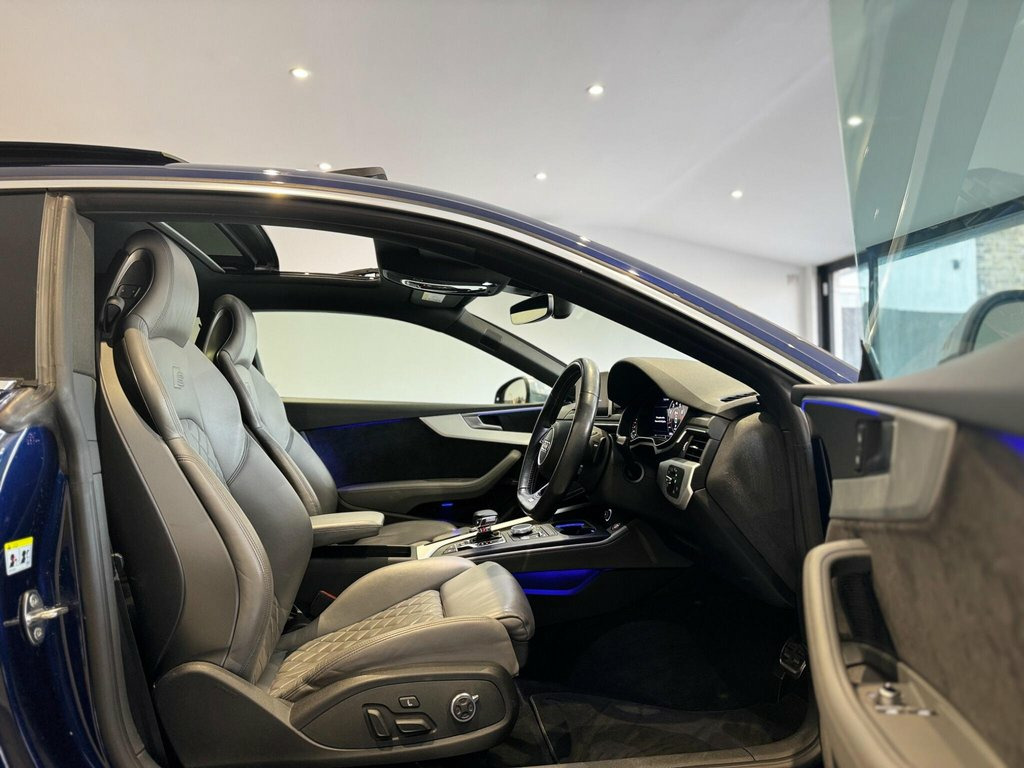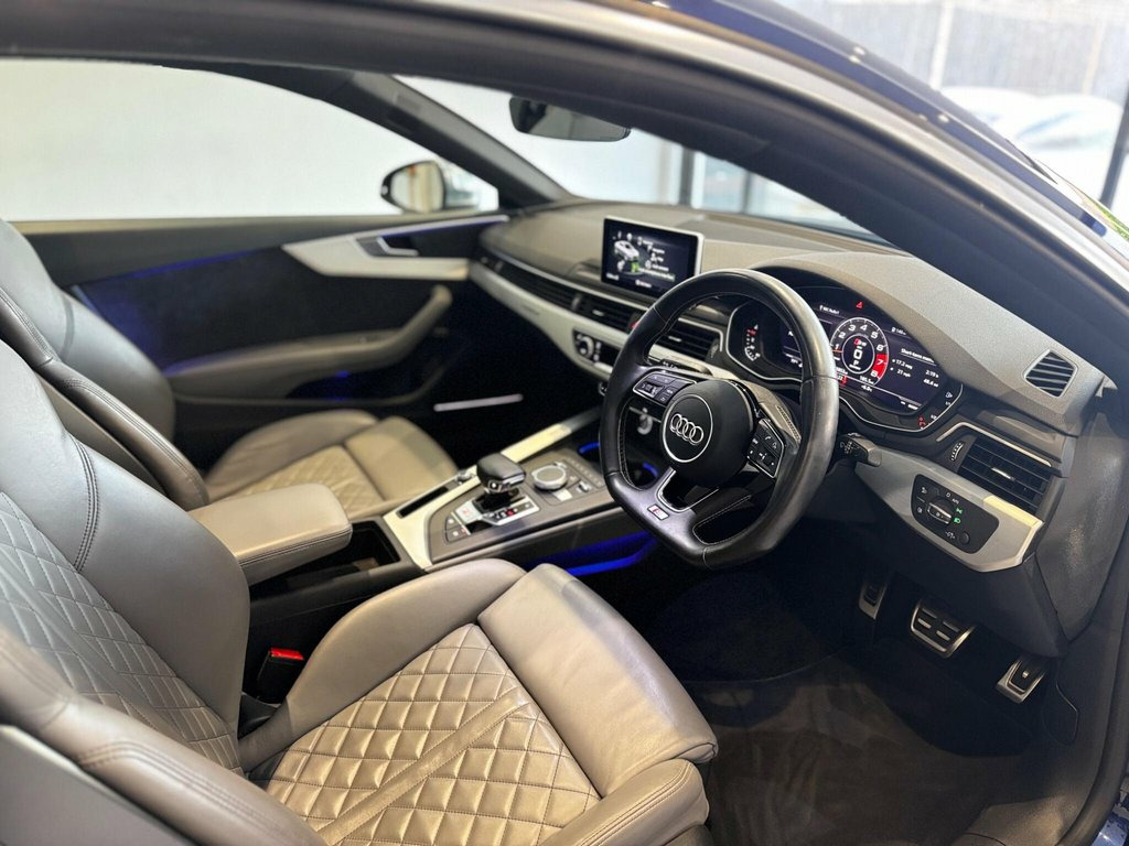 This 2018 Audi S5 TFSI V6 boasts exceptionally low mileage for its age, having covered just 24,000 miles with only two previous owners. This impressive example is powered by a 3.0 litre petrol engine, delivering a potent 0-60mph time of just 4.5 seconds, all managed through its sophisticated four wheel drive system. It meets Euro 6 emission standards and comes equipped with striking LED headlights and rear lights featuring dynamic rear indicators, a Bluetooth interface for seamless connectivity, and heated front seats for added comfort. Parking is made effortless with the Parking System Plus, offering front and rear sensors, while the Deluxe 3-zone electronic climate control ensures a pleasant cabin temperature for all occupants. Beyond its performance credentials, this Audi S5 offers a compelling package of benefits that set it apart. Its fuel economy of 37 mpg is noteworthy for an engine of this calibre, and its low CO2 emissions are also a significant advantage. The generous boot space provides ample practicality for everyday use and longer journeys. Furthermore, its position within a low insurance group makes it an even more attractive proposition, indicating that running costs are kept to a minimum compared to similar vehicles. 19in Alloy Wheels - 5-Arm Turbine Design, 19in Alloy Wheels - 5-Parallel Spoke Des, 19in Alloy Wheels - 5-Spoke Cavo Design , 2 x SDXC Card Readers, 2 x USB Charging Ports and 1 x AUX-IN, 4-Way Electric Lumbar Support, 6-Airbag System, Advanced Key with Electric Hands-Free Bo, Aluminium-Effect Door Mirror Housings, Anti Theft Locking Wheel Bolts, Anti-Theft Alarm, Audi Connect Infotainment Services - 3 M, Audi Connect Safety and Service - e-call, Audi Drive Select, Audi Smartphone Interface, Audi Sound System, Audi Virtual Cockpit, Auto-Dimming Rear-View Mirror, Bang and Olufsen 3D Sound System, Bluetooth Interface, Brake Calipers - Red, Brake Calipers Painted in Black with S5 , Camera-Based