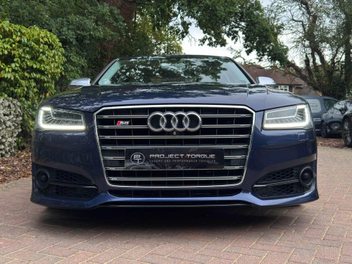 An exceptional example of this face-lifted Audi S8 D4 presented to you in arguably the best colour combination; Audi Exclusive Mugello Blue Paintwork (very rare) with contrasting Grey Merino Leather. This vehicle is accompanied by a Full Audi Service History with a full digital print out available - it comes with two keys and the original manuals. This is a stock vehicle with no modifications, and it has to be one of the highest specified examples currently available for sale in the country. Averaging just 7,500 miles per year this hand-picked example has been meticulously maintained and is in excellent condition throughout. Massive OPTIONAL EXTRAS Include; Adaptive Cruise Control, Audi Exclusive Paint, Audi Side Assist, Audi Lane Assist, Head Up Display, Soft Closure Doors, Digital TV Reception, 360 Cameras, Comfort Access, Carbon Fibre Inlays, 21 Alloys in Gloss Black, Perforated Volcona Leather in Grey & Privacy Glass. With the D4 Audi S8 now becoming extremely scarce, especially in the more desirable facelift version; with an extremely high spec and extensive service history - this is an opportunity not to be missed. This vehicle has been priced accordingly to what is available on the market today taking in to account the condition, spec, provenance and mileage respectively. For Golf R money you can now buy a super saloon that will keep up with most modern supercars whilst still retaining class leading levels of comfort and a cabin that oozes quality and refinement; when new, with the extensive options this stunning example boasts of, it would have easily exceeded a list price of £100k. MOT Until 26.02.26 - Serviced at 81k miles - Full Audi Digital Print Out Available - 2 Keys - Original Manuals - Excellent Continental 5P Tyres All Round - Original Audi Mats Included - 4 Previous Owners - Professionally Detailed - Stage 1 Machine Polish & Ceramic Infused Winter Wax Protection Applied. Whats App Enquiries; 07795 165 210. Visit our Website: www.projecttorqueltd.co.uk, ***Reserve Online with just a £100 deposit*** Free Delivery Available***