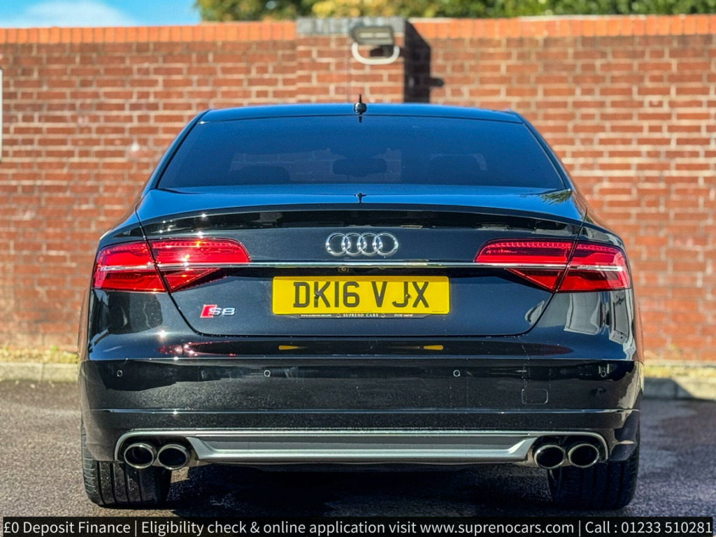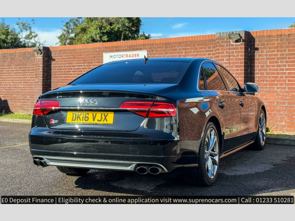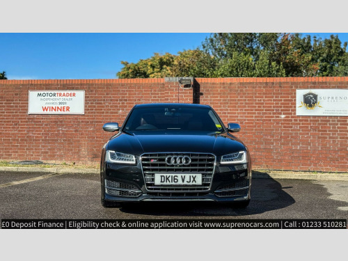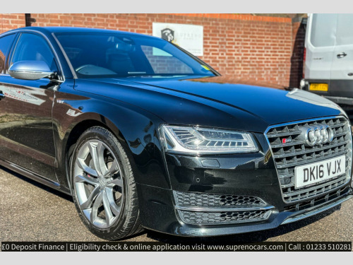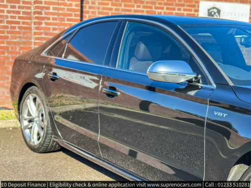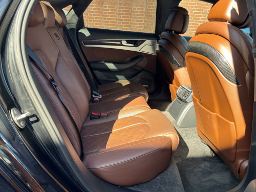 This vehicle has passed a 128 Point AA inspection & HPI Checked Complementary 12 Months Essential Warranty & 12 Months AA breakdown cover, Full Service history - 2 Owners - 2 Keys - Fresh MOT - Premium BOSE Surround Sound System - ECO Mode Active which Shuts 4 Cyl for better Fuel Economy - Dynamic Steering - Nougat Brown Premium Velcona Leather Package / Alcantara Roof lining - Extended Leather Package - Myth Black Metallic Exterior - Carbon Fiber Interior Trims - Quattro With Sport Differential - Comfort Sports Seats - Ambient lighting - Adaptive Air Suspension with Sport Mode Specific Tuning - Comfort Key - Double Glazed / Insulated Glass - High Gloss Styling Package - Apple Carplay & Android Auto - Matrix LED Adaptive Headlights - 360 Camera - Parking Sensors - Heated Seats & Steering - Sports Steering Wheel - Cruise Control & Speed Limiter - MMI Navigation Plus Package - Dynamic Indicator - Cornering & Poor Weather Lights - Delux Auto Air Con - Audi Tracker - 20'' Cast Aluminium S Design Alloy Wheels - Active Noise Cancellation - Hold Assist - and much more features, Full Spec List available, 14 Days Money Back Guarantee (T& C's apply) Reserve or buy Online now Express Home Delivery Available 7 Days a week, Drive away today with our complementary 5 Days driveaway comprehensive insurance (T& C's apply),For finance applications or eligibility check please visit www.suprenocars.com, save money & time with our state of the art online system and benefit from our low finance rates from 5.4% Flat rate and 9.9% APR Rep, instant decision and you could drive away the same day. Worried about poor credit score? Not a problem, we can help (Acceptance is subject to status (T& C's apply),Part Exchange Welcome We can buy your car and settle your existing finance All major Debit cards are accepted,Please satisfy yourself that a vehicle has a specific feature that is important to you before purchasing Please note that a £75 admin fee will apply, www.suprenocars.com or call on 07305152076 or 01233 510281 - We are based in Ashford, Surrey TW15 1RZ in alloy wheels - 5-double spoke design, privacy glass, audi design selection vermont brown - valcona leather - vermont brown, audi exclusive leather package 3 - valcona leather - cognac brown, perforated valcona leather - comfort sport seats - nougat brown, audi connect with audi phone box, steering wheel - 3-spoke leather multifunction heated shift paddles, 12v power socket, 12v power socket - luggage compartment, 12v power socket - rear, 20in alloy wheels - 5-parallel spoke s design, 360 degree camera including birds eye view, 3d and topographical mapping, 6-cd changer and dvd player, 7-digit postcode recognition, abs - anti-lock braking system, ami - audi music interface, asf - audi space frame, active noise cancellation system, advanced key - with hands-free boot opening system, advanced speech recognition, air humidity sensor, air quality sensor, air vent slats and thumbwheels in chrome trim, airbags - driver, airbags - front passenger, alarm - thatcham category 1, alcantara package, aluminium inlay on folding compartment in door armrest, aluminium-effect door mirror housings, ambient lighting in the centre console - led, amplifier - 12-channel dsp with 600 watts, analogue clock in lower inlay, anti theft locking wheel bolts, audi backguard head restraints, audi connect, audi drive select, audi hands-free boot opening system, audi matrix led headlights, audi parking system advanced with top view, audi parking system plus, auto-dimming rear-view mirror, automatic defrost function, automatic headlight range adjustment, automatic wipers with rain sensor, bose centerpoint 2 technology, bose surround sound system, body coloured bumpers, body styling - s design, brake calipers - painted with s8 logo, brushed aluminium silver switches in lower inlay - centre console and door, cd-dvd-mp3 player, climate control with sun sensor, colour drivers information system - dis, comfort front centre armrest, cruise control, cup holders - rear x2, dab digital radio, display screen colour tft - 8in high resolution, door handles - body coloured, door mirrors - automatic kerb view dipping function when reversing, door mirrors - heated-electrically adjustable-folding-auto-dimming, door mirrors - memory function, door sill trims - with s8 logo - illuminated, door storage pockets, door storage pockets with space for 1-litre bottle, double glazing, dynamic led indicators - front, dynamic led indicators - rear, dynamic steering, edl - electronic differential lock, esp - electronic stability programme, electric windows - front and rear, electrically adjustable seat belt height adjustment, electrically adjustable seat cushion height, electrically adjustable seat cushion tilt, electrically adjustable steering column, electromechanical parking brake, energy saving - gearshift indicator, enhanced braking system, exhaust tailpipe - twin, extended aluminium look in interior, extended leather package plus, fm-am radio, first aid kit, front camera, front footwell net, front passenger airbag deactivation switch, front passenger storage, front sun visors with illuminated vanity mirrors, front and rear floor mats, front and rear reading lights, gear selector lever in carbon atlas, glovebox - cooled, grab handles, hard drive - 60gb, head restraints - comfort and electrically adjustable, headlights - automatic activation, headlights - coming-leaving home function, headlights - high-beam assist, headlights - washer system, headlining - snow white alcantara, heated front seats, heated windscreen washer jets, isofix child seat mounting for rear seats, illuminated door pockets - 2-colour led, immobiliser, inlays lower - brushed aluminium, keyless go, led active door warning lights, led daytime running lights, led entry lights x4, led footwell lights - front and rear, led interior ambient lighting pack, led rear lights, light guide for front and rear doors - 3 colour led, light strip between grab ha