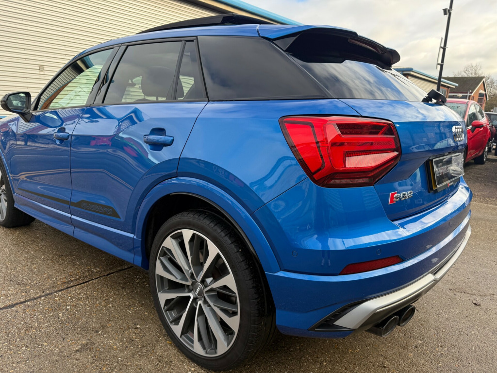 Please WhatsApp, text or call to arrange a viewing of the car on 07870553940. Full Audi dealer service history in superb condition. This 2020 Audi SQ2 TFSI Vorsprung is presented with a clear vehicle history check, offering you peace of mind. This striking model boasts a powerful 2.0 litre petrol engine, paired with a four wheel drive system for assured handling in all conditions. As a Euro 6 compliant vehicle, it meets modern emissions standards. The Vorsprung trim level ensures a premium experience, enhanced by a suite of advanced features., Viewing by appointment please. 6 months extendable warranty. Part exchange welcome. Finance available., , Experience the thrill of rapid acceleration, with the SQ2 TFSI Vorsprung reaching 0-62mph in just 4.8 seconds, a performance that sets it apart from many other vehicles. This impressive speed is complemented by a host of desirable features that elevate its appeal. Enjoy the expansive views through the panoramic glass sunroof, and stay connected and organised with the technology package, which includes convenient wireless phone charging. The head up display projects vital information directly into your line of sight, while the advanced key allows for effortless keyless entry. Furthermore, the light and rain sensor automatically manages headlights, ensuring optimal visibility and convenience., 5 seats, Metallic Blue, 19in Alloy Wheels - 5-V Twin-Spoke Design - Diamond Cut Finish, 2 x SDXC Card Readers, 4-Way Electric Lumbar Support, 6-Airbag System, AMI - Audi Music Interface, Adaptive Cruise Control, Adaptive Suspension with Damping Control, Advanced Key, Aluminium Interior Elements, Anti Theft Locking Wheel Bolts, Anti-Theft Alarm, Audi Active Lane Assist, Audi Connect Infotainment Services (36 Month Subscription From New), Audi Drive Select, Audi Phone Box with Wireless Charging, Audi Pre-Sense Front with Pedestrian Recognition, Audi Side Assist, Audi Smartphone Interface, Audi Virtual Cockpit, Auto-Dimming Rear-View Mirror, Black Styling Package, Black Window Trims, Bluetooth Interface, Body Coloured Bumpers, Brake Calipers - Black with S Logo, C-Pillar Blade in Brilliant Black, CD Drive, Camera-Based Traffic Sign Recognition, Cloth Headlining in Black, Comfort and Sound Package, Cross Traffic Assist - Rear, DAB Digital Radio, Door Mirrors - Electrically Adjustable and Heated with Integrated LED Side Indicators, Dual-Zone Electronic Climate Control, ESC - Electronic Stabilisation Control, Electric Windows - Front, Electromechanical Parking Brake, Enhanced Rear Spoiler, Exhaust Tailpipe - Black, Extended Interior Upholstery Pack, Exterior Mirror Caps in Brilliant Black, First Aid Kit and Warning Triangle, Flat-Bottomed 3-Spoke Leather-Trimmed Multi-Function Sport Steering Wheel with Gear-Shift Paddles, Floor Mats with Contrast Stitching, Front Centre Armrest, Front Windscreen with Grey Tinted Sunband, 6 MONTHS NATIONAL WARRANTY INCLUDED, PART EXCHANGE & FINANCE AVAILABLE, HPI CLEAR in alloy wheels - 5-v twin-spoke design - diamond cut finish, anti theft locking wheel bolts, black styling package, black window trims, body coloured bumpers, brake calipers - black with s logo, c-pillar blade in brilliant black, door mirrors - electrically adjustable and heated with integrated led side indicators, electric windows - front, enhanced rear spoiler, exhaust tailpipe - black, exterior mirror caps in brilliant black, front windscreen with grey tinted sunband, panoramic glass sunroof, privacy glass, s design body styling, s specific dual-branch chrome tailpipes with twin oval pipes each on left and right, s-design radiator grille with horizontal struts and sq2 logo, tyre repair kit, 2 x sdxc card readers, ami - audi music interface, audi connect infotainment services (36 month subscription from new), audi phone box with wireless charging, audi smartphone interface, bluetooth interface, cd drive, dab digital radio, mmi radio plus with 7in colour fixed mmi screen and mmi controller, technology package, 4-way electric lumbar support, aluminium interior elements, audi virtual cockpit, auto-dimming rear-view mirror, cloth headlining in black, comfort and sound package, dual-zone electronic climate control, extended interior upholstery pack, flat-bottomed 3-spoke leather-trimmed multi-function sport steering wheel with gear-shift paddles, floor mats with contrast stitching, front centre armrest, illuminated door sill trims with s logo, illuminated inlays - format design, instrument dials with s logo, led interior lighting pack advanced, manual seat adjustment, pedals in stainless steel, power operated tailgate, seats - split folding rear - 40-20-40, storage compartments, tool kit, traffic jam assist and emergency assist, 6-airbag system, advanced key, anti-theft alarm, audi active lane assist, audi pre-sense front with pedestrian recognition, cross traffic assist - rear, esc - electronic stabilisation control, electromechanical parking brake, first aid kit and warning triangle, hill hold assist, isofix child seat mounting for front passenger with airbag deactivation and outer rear seats, multi collision brake assist, seat belt monitoring, adaptive cruise control, adaptive suspension with damping control, audi drive select, audi side assist, camera-based traffic sign recognition, head-up display, park assist, progressive steering, rear parking sensors, rear-view camera, s model enhanced braking system, tyre pressure warning light, headlights washers, led headlights with led rear lights and dynamic rear indicators, light and rain sensor