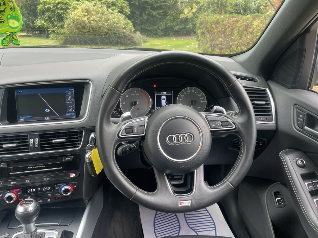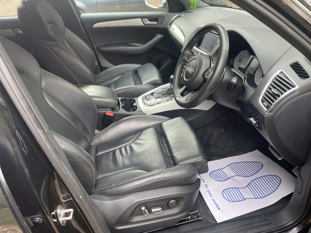 THIS LOVELY EXAMPLE AUDI SQ5 3.0 BITDI V6 TIPTRONIC QUATTRO COMES IN Panther black, crystal effect PAINT WITH HEATED Black/Black Fine Nappa Leather SEATS. IT COMES WITH £4000 OF FACTORY EXTRAS INCLUDING THE Technology pack. IT HAS SERVICE HISTORY, JUST FULLY SERVICED BY OUR GARAGE, SERVICED 6 TIMES IN TOTAL INCLUDING 5 TIMES BY AUDI. Black Full leather interior, Four wheel-drive, 5 seats, Panther black, crystal effect, Upgrades - Technology Package, Power Operated Tailgate, Heated Front Seats, Privacy Glass, Door Mirrors - Heated-Electrically Adjustable-Folding, Crystal effect paint £865, Standard Features - 12V Power Socket, 20in Alloy Wheels - 5-Parallel Spoke Design, 6.5in Display Screen, ABS - Anti-Lock Braking System, AUX-IN Socket, Acoustic Windscreen, Active Door Reflectors, Air Conditioning - Deluxe Automatic at the Rear, Airbags - Driver, Airbags - Front Passenger, Airbags - Front Side, Airbags - Head System, Alarm - Thatcham Category 1, Aluminium Roof Rails, Aluminium-Effect Door Mirror Housings, Amplifier - 6 Channel, Anti Theft Locking Wheel Bolts, Audi Sound System, Audio Sound System, Auto-Dimming Rear-View Mirror, Automatic Headlight Range Adjustment, Automatic Wipers with Rain Sensor, Body Coloured Bumpers, Brake Calipers - Black with S Logo, Car Jack, Cloth Headlining in Black, Collapsible Spare Wheel, Colour Drivers Information System - DIS, Concert Radio, Cruise Control, Cup Holders - Centre Console, DAB Digital Radio, Deluxe 3-Zone Climate Control, Door Mirrors - Electrically Adjustable and Heated, Door Sill Trims - Aluminium with SQ5 Embossing, EBD - Electronic Brakeforce Distribution, ESP - Electronic Stability Programme, Electric Windows - Front and Rear, Electrically Adjustable 4-Way Lumbar Support, Electromechanical Parking Brake, Electromechanical Power Steering, Entrance Lights, First Aid Kit, Front Centre Armrest, Front Fog Lights, Front Footwell Lighting, Front Passenger Airbag Deactivation Switch, Front and Rear Floor Mats, Glovebox - Illuminated, Headlight Washers, Headlights - Bi-Xenon Plus, Headlights - Coming-Leaving Home Function, Headlights - Light Sensor, Hill Descent Control, ISOFIX Child Seat Preparation Front and Rear, Illuminated Vanity Mirrors, Inlays - Matt Brushed Aluminium, Interior Light Package, Interior Lighting - Vents and Internal Door Controls, LED Daytime Running Lights, LED Interior Light Package, LED Rear Lights, Leather Package - Door Armrests, Misfuelling Inhibition, Mobile Telephone Preparation - Bluetooth Interface, Pollen Filter, Radiator Grille - S Design, Rear Parking Sensors, Rear Reading Lights, Remote Boot Release, Remote Central Locking, Rest Recommendation System, Roof Bars and Storage Bag, S Design Body Styling, S Instrument Dials, SDHC Card Reader, Seats - Front Electric Adjustment, Seats - Front Height Adjustment, Seats - Split Folding Rear - 60-40, Spoiler, Steering Column - Rake and Reach Adjustment, Steering Wheel - 3-Spoke Leather - Multi-function - Sports - Shift Paddles, Steering Wheel - Gear Shift Paddles, Steering Wheel - Multi-function, Suspension - S Sports, TP Memo - Automatically Saves Traffic News, Tool Kit, Traction Control, Tyre Mobility System, Warning Triangle, ALL CARS COME WITH WARRANTY, FINANCE AND PART EXCHANGES WELCOME, ALL VIEWINGS BY APPOINTMENT, £14,495