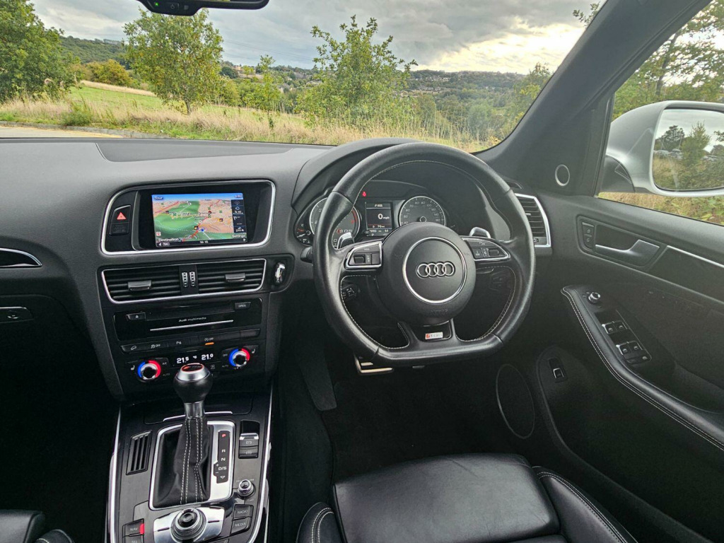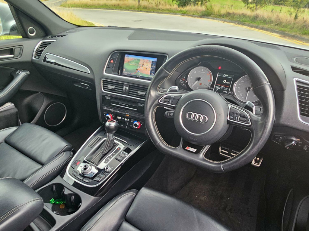 * AUDI SQ5, * 3.0 BiTDI V6 Quattro, * Automatic 308bhp, * Full heated leather electric seats, * Sat Nav, * Bluetooth phone, * Bang & olufsen speakers, * Dual digital climate control, * Memory seats, * DAB Radio, * Cruise control, * Flat bottom multifunction steering wheel, * 4 x electric windows & mirrors, * Lubar support, * Front & rear parking sensors, * Electric folding mirrors, * Cupholders, * isofix seats, * 21 alloy wheels, * DRL lights