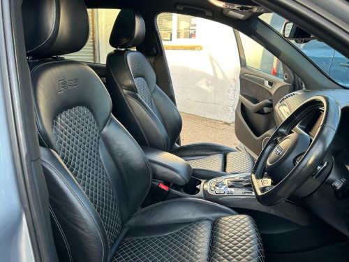 AUTOTRADER award winners 2025 for customer experience,check out over 600 5 star reviews from our customers, flexible low deposit finance terms available from 9.9% APR ,includes six months parts and labour nationwide warranty This 2017 Audi SQ5 BiTDI V6 Plus Special Edition finished in Moondust Silver is in exceptional condition with service history please view all the images to appreciate just how clean the Audi is . This impressive four wheel drive model is equipped with a powerful 3.0 litre diesel engine and meets Euro 6 emissions standards. Its Plus Special Edition trim level ensures a premium experience, complemented by notable features such as a Bluetooth interface for seamless connectivity, and deluxe three zone climate control for personalised comfort, full length panorama sunroof For effortless parking, it includes the Audi Parking System Advanced, featuring front and rear sensors along with a rear camera. Enjoy an immersive audio experience with the Bang and Olufsen sound system, and benefit from the convenience of automatic headlights thanks to the light and rain sensor. This SQ5 also has a towing weight of 2400 kg. The performance of this Audi SQ5 is truly exceptional, highlighted by its rapid 0-60mph acceleration in just 4.9 seconds. This remarkable speed indicates how this vehicle offers a more dynamic driving experience compared to many other similar models. The combination of its potent engine, advanced drivetrain, and refined features makes this SQ5 a stan 21in Alloy Wheels - 5-Twin-Spoke Star De, ABS - Anti-Lock Braking System, AMI - Audi Music Interface, Active Sound Exhaust System, Advanced Key, Airbags - Driver, Airbags - Front Passenger, Airbags - Front Side, Alarm - Thatcham Category 1, Aluminium Scuff Plates with SQ5 Logo, Audi Concert Radio, Audi Drive Select, Audi Parking System Advanced, Auto-Dimming Rear-View Mirror, Bang and Olufsen Sound System, Black Roof Rails, Black Styling Package, Bluetooth Interface, Body Coloured Bumpers, Cloth Headlining in Black, Colour Drivers Information System - DIS, Cruise Control, DAB Digital Radio, Deluxe 3-Zone Climate Control, Door Handles Partially Finished in High-, Door Mirrors - Black Housing,