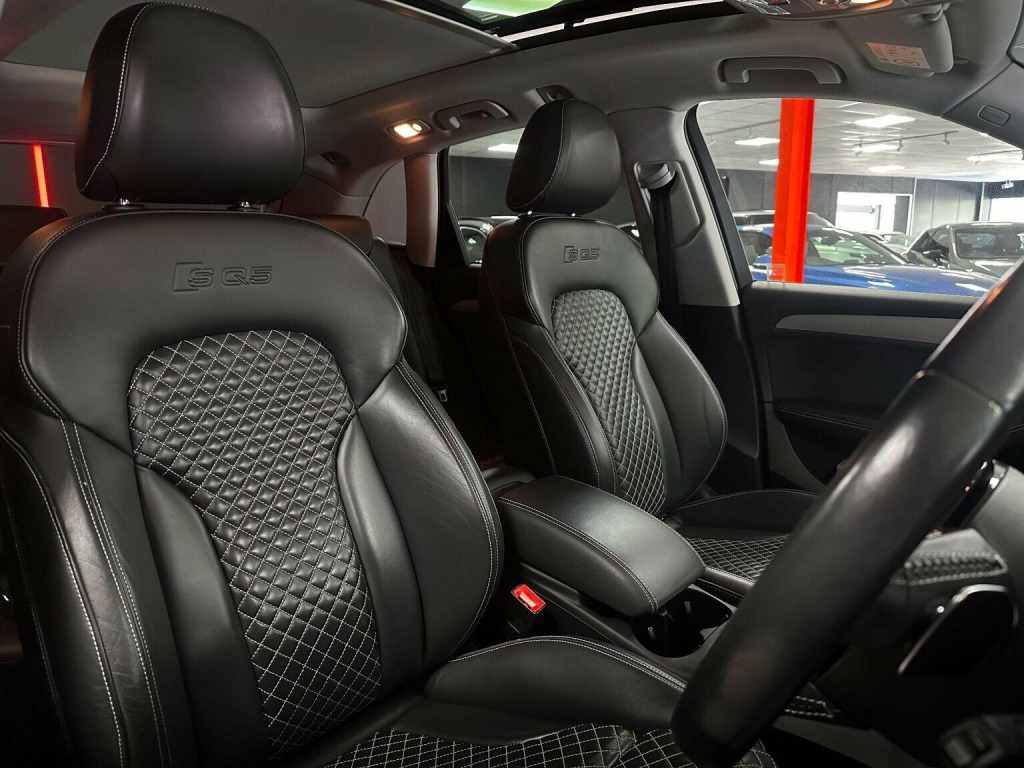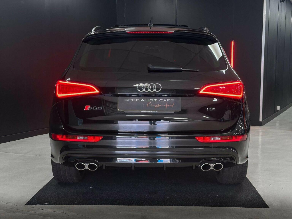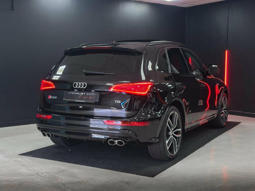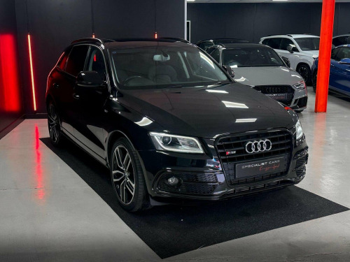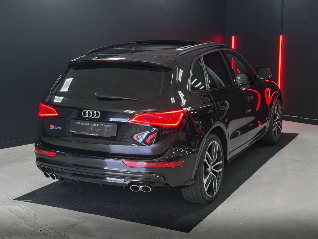 This sought-after Special Edition SQ5 combines performance, exclusivity and everyday usability, powered by the 3.0-litre BiTDI V6 producing 335 PS with quattro all-wheel drive and an 8-speed Tiptronic gearbox, delivering 0–62 mph in 5.1 seconds and a top speed of 155 mph. With just 29,750 miles and a full specialist service history including a recent service at the current mileage, it offers both reassurance and rarity. The Plus Special Edition features unique styling and equipment upgrades over the standard SQ5, including quattro with Sports Differential, Black Styling Package, exclusive fine Nappa leather interior, Active Sound exhaust system, Bang & Olufsen sound system, Technology Pack, MMI Navigation Plus, Audi Parking System Advanced, Panoramic Open Sky sunroof, and S Sport Suspension for sharper handling. Optional extras on this example include 21in 5-Twin-Spoke Star Design alloy wheels in Gloss Black, red brake calipers, Audi Exclusive Jet Grey fine Nappa leather package with sports seats, and Adaptive Lights for enhanced night driving. Standard highlights include Audi Drive Select, Deluxe 3-Zone Climate Control, Cruise Control, Privacy Glass, Advanced Key, Power Operated Tailgate, Heated Front Seats, flat-bottomed multifunction steering wheel with paddles, LED rear lights, Xenon headlights, ABS, traction control, Electromechanical Parking Brake, and comprehensive safety systems including multiple airbags and ISOFIX mounting points. A rare, high-specification performance SUV that blends pace, practicality and premium finish, ideal for daily driving or long-distance journeys, offering Euro 6 diesel efficiency alongside exhilarating performance, with all the premium touches expected from a Special Edition SQ5. Nationwide delivery available – message for details. Please note: Although every effort is made to ensure the accuracy of every advert and vehicle specification, system and human errors can occur from time to time and it is advised to check for confirmation.