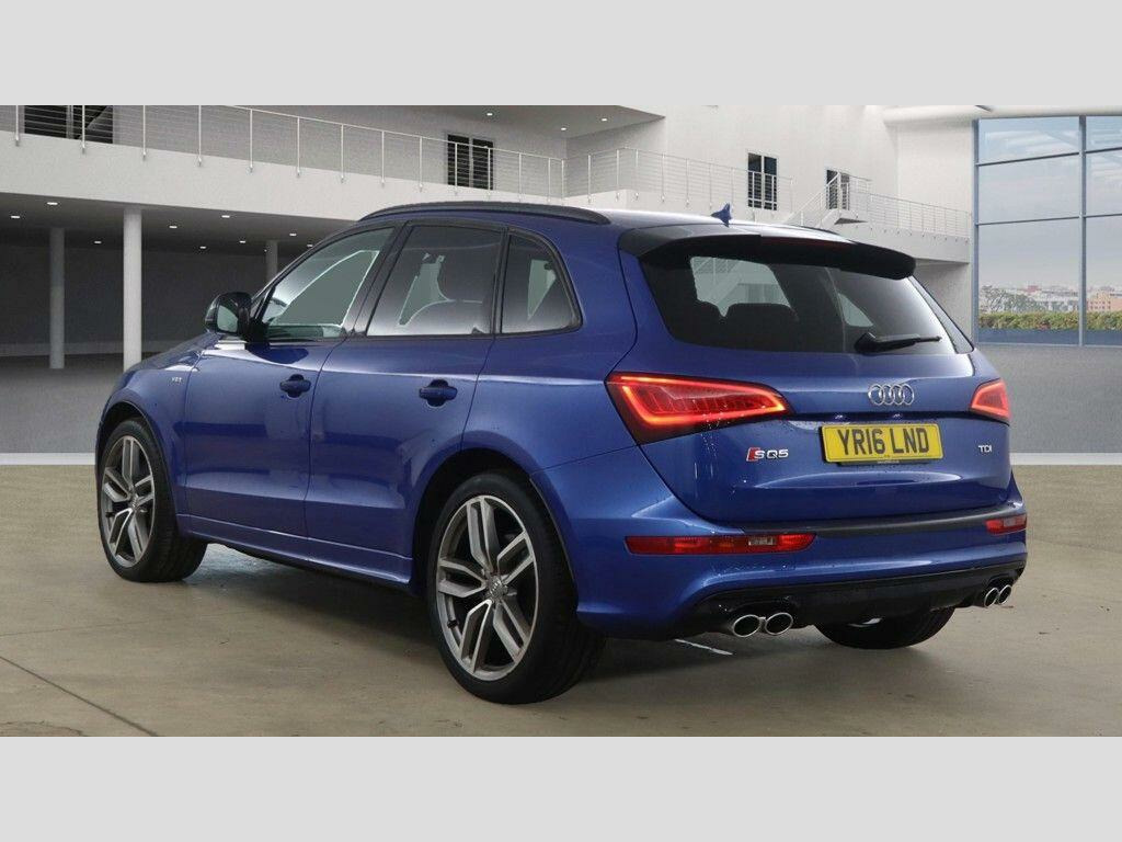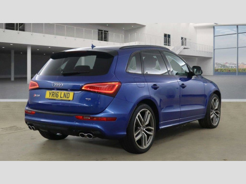 1 FORMER KEEPER2 KEYSSERVICE HITORY - 7 SERVICES - 1 MAIN DEALER SERVICE - INTERVALS 13K, 21K, 30K, 39K, 48K, 60K, 81KEURO 6ULEZ COMPLIANTLOGBOOKEquipment:Navigation HDDClimate ControlLeather Trim21'' Alloy WheelsPrivacy GlassThis Audi SQ5 BiTDI V6 Plus from 2016 boasts a clear vehicle history and has had only two owners, offering peace of mind. It features a powerful 3.0L Diesel engine paired with Four Wheel Drive for confident handling, and meets Euro 6 emission standards. This Plus trim model comes equipped with Audi Parking System Plus, including front and rear sensors, Deluxe 3-Zone Climate Control, Xenon headlights, and Bluetooth connectivity for mobile telephone preparation.The SQ5 stands out with its impressive acceleration, reaching 0-60mph in just 4.9 seconds, demonstrating its performance capabilities. Its large boot space makes it a practical choice for families or those needing ample storage. Furthermore, its low insurance group rating indicates that running costs are more economical compared to similar vehicles. With a towing weight of 2400 kg, it is also well suited for towing. bile telephone preparation - high with audi connect, mobile telephone preparation - low with bluetooth and voice control, tv reception - digital, heated front seats, seats - heated front and rear, 12v power socket, 20gb jukebox for storing and managing music files - wma and mp3 format, 21in alloy wheels - 5-twin-spoke star design in titanium look with high gloss finish, abs - anti-lock braking system, ami - audi music interface, aux-in socket, acoustic windscreen, active door reflectors, air conditioning - deluxe automatic at the rear, airbags - driver, airbags - front passenger, airbags - front side, alarm - thatcham category 1, aluminium scuff plates with sq5 logo, amplifier - 180 watt, amplifier - 6 channel, anti theft locking wheel bolts, audi parking system plus, audi sound system, auto-dimming rear-view mirror, automatic headlight range adjustment, automatic wipers with rain sensor, black roof rails, black styling package, body coloured bumpers, brake calipers - black with s logo, car jack, cloth headlining in black, colour drivers information system - dis, concert radio - mp3-cd player, cruise control, cup holders - centre console, dab digital radio, deluxe 3-zone climate control, display screen colour - 7in tft high resolution and split screen mode for route information, door handles - chrome with black elements, door mirrors - black housing, door mirrors - electrically adjustable and heated, door or boot open warning, double-glazed side and rear windows, double-glazed windscreen, dynamic route guidance - tmc, ebd - electronic brakeforce distribution, esp - electronic stability programme, electric windows - front and rear, electrically adjustable 4-way lumbar support, electromechanical parking brake, electromechanical power steering, entrance lights, european navigation data, exhaust tailpipe - two oval on left and right side in chrome rolled finish, first aid kit, fog lights - high gloss black surrounds, front centre armrest, front fog lights, front footwell lighting, front passenger airbag deactivation switch, front and rear floor mats, glovebox - illuminated, hard drive - 40gb, headlight washers, headlights - coming-leaving home function, headlights - light sensor, headlights - xenon, hill descent control, isofix child seat mounting for front passenger, isofix child seat preparation for rear seats with top tether, illuminated vanity mirrors, inlays - matt brushed aluminium, interior light package, interior lighting - vents and internal door controls, led daytime running lights, led rear lights, leather package - door armrests, mmi navigation plus, misfuelling inhibition, mobile telephone preparation - bluetooth interface, number plate - high gloss black surrounds, outside temperature display, pollen filter, power operated tailgate, privacy glass, quattro sports differential, radiator grille - matt black, radiator grille frame - high gloss black, rear bench seat plus, rear parking sensors, rear reading lights, rear spoiler - black, remote boot release, remote central locking, rest recommendation system, roof bars and storage bag, s design body styling, s instrument dials, sd card reader x2, seats - front electric adjustment, seats - front with sq5 embossing, seats - rear split - independent adjustment, seats - split folding rear - 60-40, seats - sports, single cd-dvd player, speakers x10, steering column - rake and reach adjustment, steering wheel - 3-spoke s sports leather with contrast stitching, steering wheel - contrast stitching, steering wheel - gear shift paddles, steering wheel - multi-function, steering wheel - sports, suspension - s sports, tp memo - automatically saves traffic news, tailgate - lid closing assistance unit, tailgate - programmable angle for the luggage compartment lid, technology package, through-load facility, tool kit and car jack, towing equipment - preparation, traction control, tyre pressure loss indicator, tyre repair kit, warning triangle, window surrounds - black