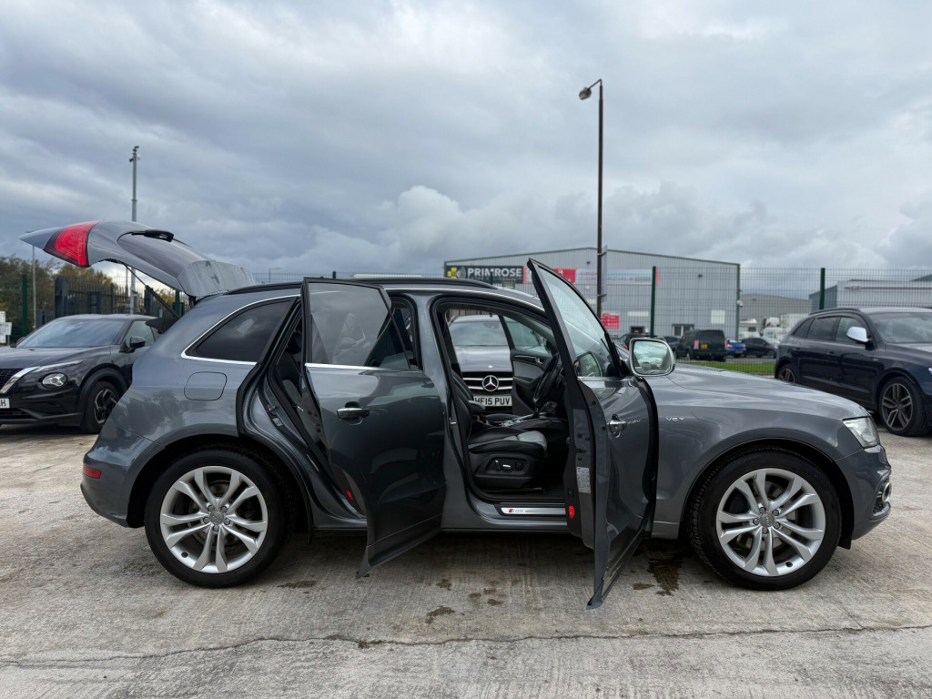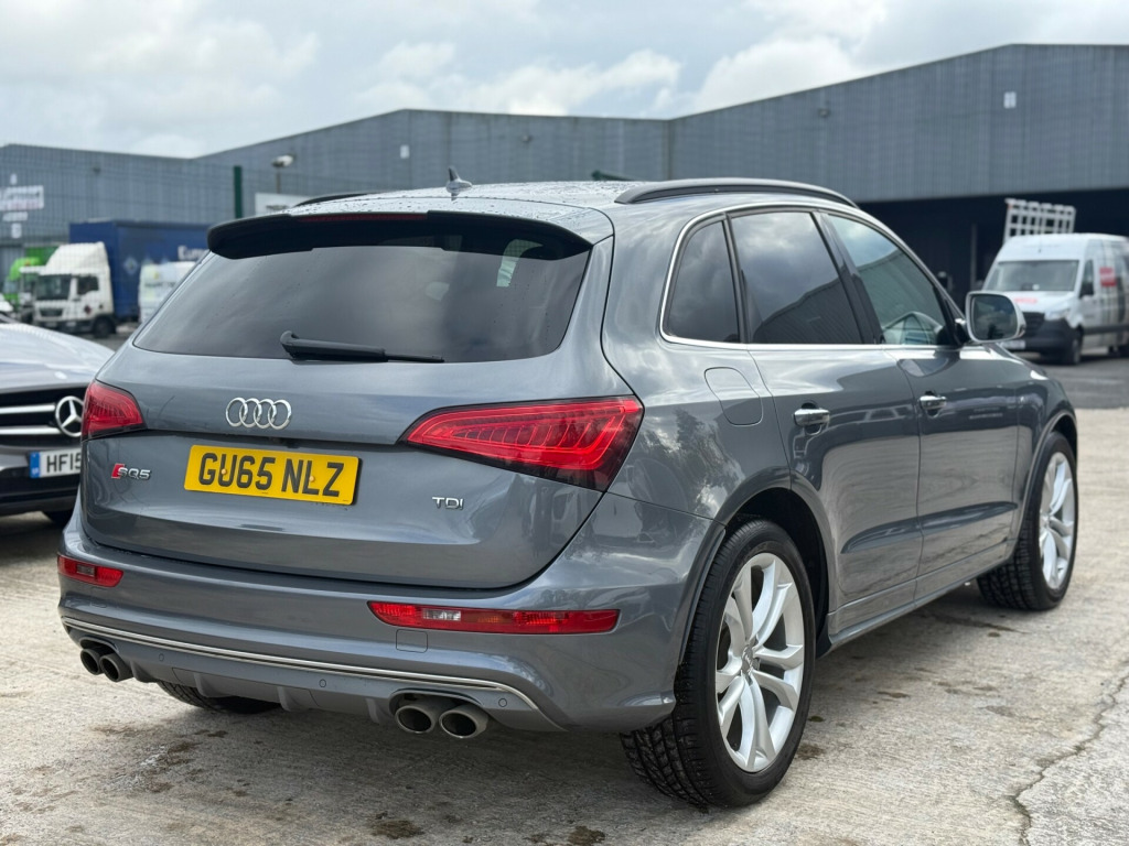 -Reg: GU65NLZ-2 Keys!!-3 Owners from new!!-Comprehensive Service history with proof of 6 Services!!-Fresh Service undertaken on the 12/08/2025!!-Long MOT EXPIRES 13/09/2026!!-20 Inch Rims!!-Two tone leather interior!!-Electric Tail Gate!!-Folding Side mirrors!!-Reversing Camera!!-Front and rear parking sensors!!-Electric Seats!!-Heated seats!!-Cruise control!!-Bluetooth!!-Sat Nav!!-Dual Zone climate control!!-A/C!!-3 Months Comprehensive nationwide warranty provided complementary!!-Free brake down cover for the life of the warranty!!-Competitively priced nationwide delivery available!!-Part exchange considered!!-Rear Tinted windows!! v power socket, 6.5in colour display screen, aux-in socket, amplifier - 180 watt, amplifier - 6 channel, audi sound system, concert radio - mp3-cd player, dab digital radio, mobile telephone preparation - bluetooth interface, sdhc card reader, speakers x10, towing equipment - preparation, 20in alloy wheels - 5-parallel spoke design, acoustic windscreen, aluminium roof rails, aluminium scuff plates with sq5 logo, aluminium-effect door mirror housings, anti theft locking wheel bolts, body coloured bumpers, brake calipers - black with s logo, door handles - chrome, door mirrors - electrically adjustable and heated, double-glazed side and rear windows, double-glazed windscreen, electric windows - front and rear, exhaust tailpipe - two oval on left and right side in chrome rolled finish, radiator grille - s design with sq5 logo finished in platinum grey, rear spoiler - body coloured, roof bars and storage bag, s design body styling, tyre repair kit, wheel arch extensions, window surrounds - aluminium, abs - anti-lock braking system, airbags - driver, airbags - front passenger, airbags - front side, alarm - thatcham category 1, ebd - electronic brakeforce distribution, esp - electronic stability programme, electromechanical parking brake, first aid kit, front passenger airbag deactivation switch, hill descent control, isofix child seat mounting for front passenger, isofix child seat preparation for rear seats with top tether, misfuelling inhibition, remote central locking, traction control, warning triangle, active door reflectors, air conditioning - deluxe automatic at the rear, auto-dimming rear-view mirror, automatic wipers with rain sensor, car jack, cloth headlining in black, cup holders - centre console, deluxe 3-zone climate control, electrically adjustable 4-way lumbar support, entrance lights, front centre armrest, front footwell lighting, front and rear floor mats, glovebox - illuminated, illuminated vanity mirrors, inlays - matt brushed aluminium, interior light package, interior lighting - vents and internal door controls, leather package - door armrests, pollen filter, rear reading lights, remote boot release, s instrument dials, seats - front electric adjustment, seats - front with sq5 embossing, seats - split folding rear - 60-40, seats - sports, steering column - rake and reach adjustment, steering wheel - 3-spoke s sports leather with contrast stitching, steering wheel - contrast stitching, steering wheel - gear shift paddles, steering wheel - multi-function, steering wheel - sports, tp memo - automatically saves traffic news, tool kit and car jack, automatic headlight range adjustment, front fog lights, headlight washers, headlights - coming-leaving home function, headlights - light sensor, headlights - xenon, led daytime running lights, led rear lights, colour drivers information system - dis, cruise control, door or boot open warning, electromechanical power steering, outside temperature display, rear parking sensors, rest recommendation system, suspension - s sports, tyre pressure loss indicator