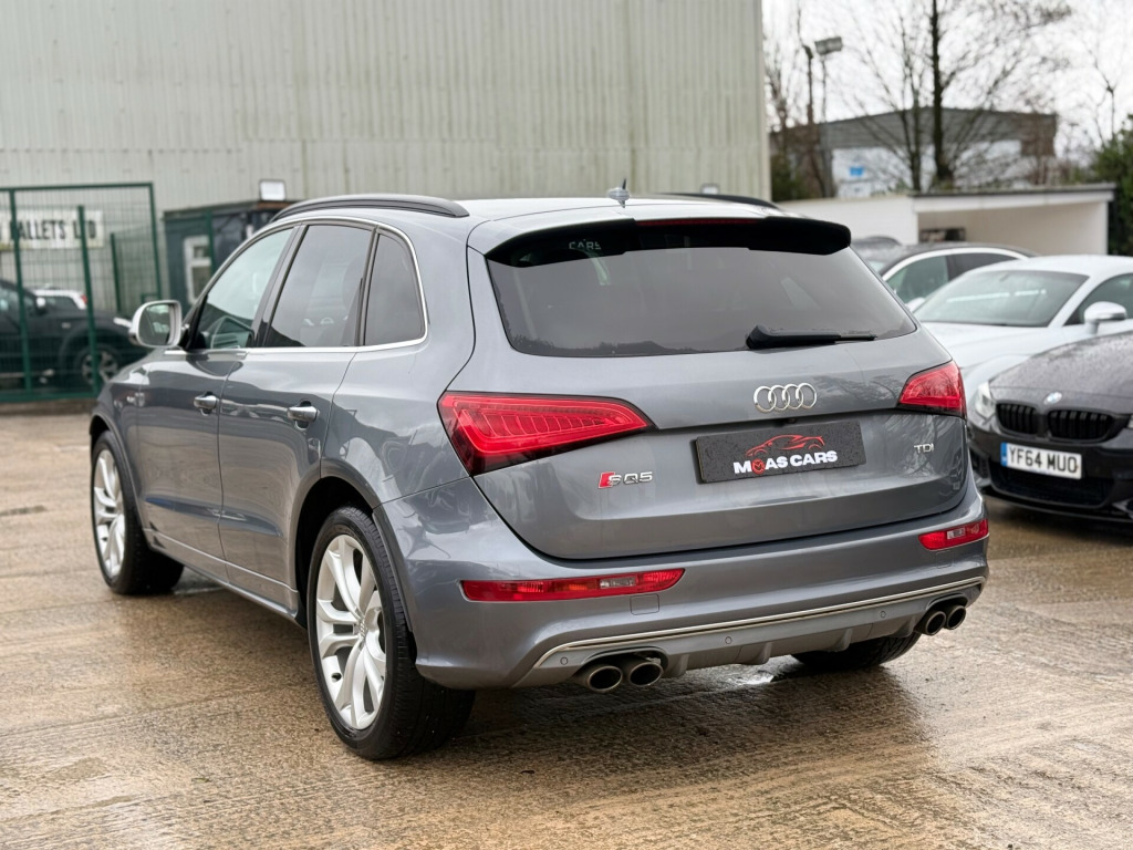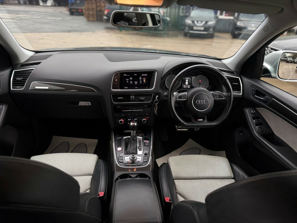 -Reg: GU65NLZ-2 Keys!!-3 Owners from new!!-Comprehensive Service history with proof of 6 Services!!-Fresh Service undertaken on the 12/08/2025!!-Long MOT EXPIRES 13/09/2026!!-Top Spec loaded with over £5000 worth of extras including :--20 Inch Rims!!-Two tone leather interior!!-Technology Package!!-Electric Tail Gate!!-Folding Side mirrors!!-Reversing Camera!!-Front and rear parking sensors!!-Electric Seats!!-Heated seats!!-Cruise control!!-Bluetooth!!-Sat Nav!!-Dual Zone climate control!!-A/C!!-3 Months Comprehensive nationwide warranty provided complementary!!-Free brake down cover for the life of the warranty!!-Competitively priced nationwide delivery available!!-Part exchange considered!!-Rear Tinted windows!! v power socket, 6.5in colour display screen, aux-in socket, amplifier - 180 watt, amplifier - 6 channel, audi sound system, concert radio - mp3-cd player, dab digital radio, mobile telephone preparation - bluetooth interface, sdhc card reader, speakers x10, towing equipment - preparation, 20in alloy wheels - 5-parallel spoke design, acoustic windscreen, aluminium roof rails, aluminium scuff plates with sq5 logo, aluminium-effect door mirror housings, anti theft locking wheel bolts, body coloured bumpers, brake calipers - black with s logo, door handles - chrome, door mirrors - electrically adjustable and heated, double-glazed side and rear windows, double-glazed windscreen, electric windows - front and rear, exhaust tailpipe - two oval on left and right side in chrome rolled finish, radiator grille - s design with sq5 logo finished in platinum grey, rear spoiler - body coloured, roof bars and storage bag, s design body styling, tyre repair kit, wheel arch extensions, window surrounds - aluminium, abs - anti-lock braking system, airbags - driver, airbags - front passenger, airbags - front side, alarm - thatcham category 1, ebd - electronic brakeforce distribution, esp - electronic stability programme, electromechanical parking brake, first aid kit, front passenger airbag deactivation switch, hill descent control, isofix child seat mounting for front passenger, isofix child seat preparation for rear seats with top tether, misfuelling inhibition, remote central locking, traction control, warning triangle, active door reflectors, air conditioning - deluxe automatic at the rear, auto-dimming rear-view mirror, automatic wipers with rain sensor, car jack, cloth headlining in black, cup holders - centre console, deluxe 3-zone climate control, electrically adjustable 4-way lumbar support, entrance lights, front centre armrest, front footwell lighting, front and rear floor mats, glovebox - illuminated, illuminated vanity mirrors, inlays - matt brushed aluminium, interior light package, interior lighting - vents and internal door controls, leather package - door armrests, pollen filter, rear reading lights, remote boot release, s instrument dials, seats - front electric adjustment, seats - front with sq5 embossing, seats - split folding rear - 60-40, seats - sports, steering column - rake and reach adjustment, steering wheel - 3-spoke s sports leather with contrast stitching, steering wheel - contrast stitching, steering wheel - gear shift paddles, steering wheel - multi-function, steering wheel - sports, tp memo - automatically saves traffic news, tool kit and car jack, automatic headlight range adjustment, front fog lights, headlight washers, headlights - coming-leaving home function, headlights - light sensor, headlights - xenon, led daytime running lights, led rear lights, colour drivers information system - dis, cruise control, door or boot open warning, electromechanical power steering, outside temperature display, rear parking sensors, rest recommendation system, suspension - s sports, tyre pressure loss indicator