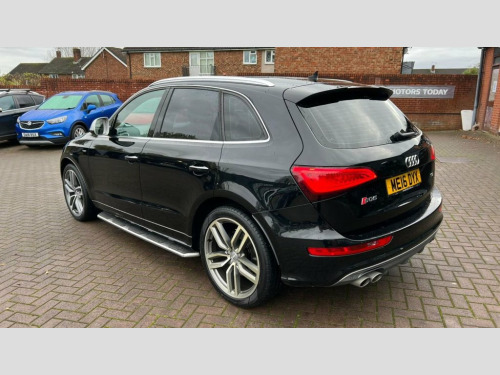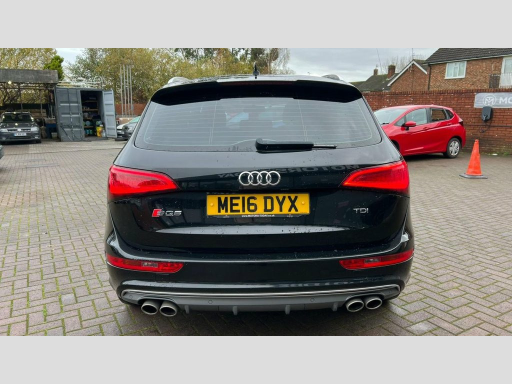 This stunning 2016 Audi SQ5 BiTDI V6 presents a rare find with only two previous owners and comes with a huge spec , £4700 worth of optional extras which include Technology pack, 21" gloss finish alloy wheels, Bang & Olufsen sound system, Audi Drive Select PLUS MORE. . This Audi is finished in the best colour, Metallic Mythos black and comes with full luxury fine Nappa leather. This impressive vehicle boasts a powerful 3.0L Diesel Engine paired with a Four Wheel Drive drivetrain, ensuring excellent performance and control in all conditions. Inside, you'll appreciate the convenience of a Bluetooth Interface, Electrically Adjustable Front Seats, and the advanced Light and Rain Sensor system which includes automatic headlights. The cabin is further enhanced by a Double-glazed Windscreen and Front Side Windows for a quieter drive, and the distinctive Active Sound Exhaust System adds to the driving experience. The Audi SQ5 is designed for those who demand both performance and practicality. Its remarkable acceleration, reaching 0-60mph in just 4.9 seconds, places it ahead of many comparable vehicles. This capability is complemented by a substantial towing weight of 2400 kg, making it a versatile choice for various needs. Furthermore, the generous boot space offers ample room for luggage or shopping, while its position in a low insurance group makes it an economical option to own and run. 21in Alloy Wheels - 5-Twin-Spoke Star De, Audi Drive Select, Technology Package, Bang and Olufsen Sound System, Mythos Black, 20in Alloy Wheels - 5-Parallel Spoke Des, ABS - Anti-Lock Braking System, Active Sound Exhaust System, Airbags - Driver, Airbags - Front Passenger, Airbags - Front Side, Alarm - Thatcham Category 1, Aluminium Roof Rails, Aluminium Scuff Plates with SQ5 Logo, Aluminium Window Trims, Aluminium-Effect Door Mirror Housings, Audi Concert Radio, Audi Sound System, Auto-Dimming Rear-View Mirror, Bluetooth Interface, Body Coloured Bumpers, Cloth Headlining in Black, Colour Drivers Information System - DIS, Cruise Control, DAB Digital Radio, Deluxe 3-Zone Climate Control, Door