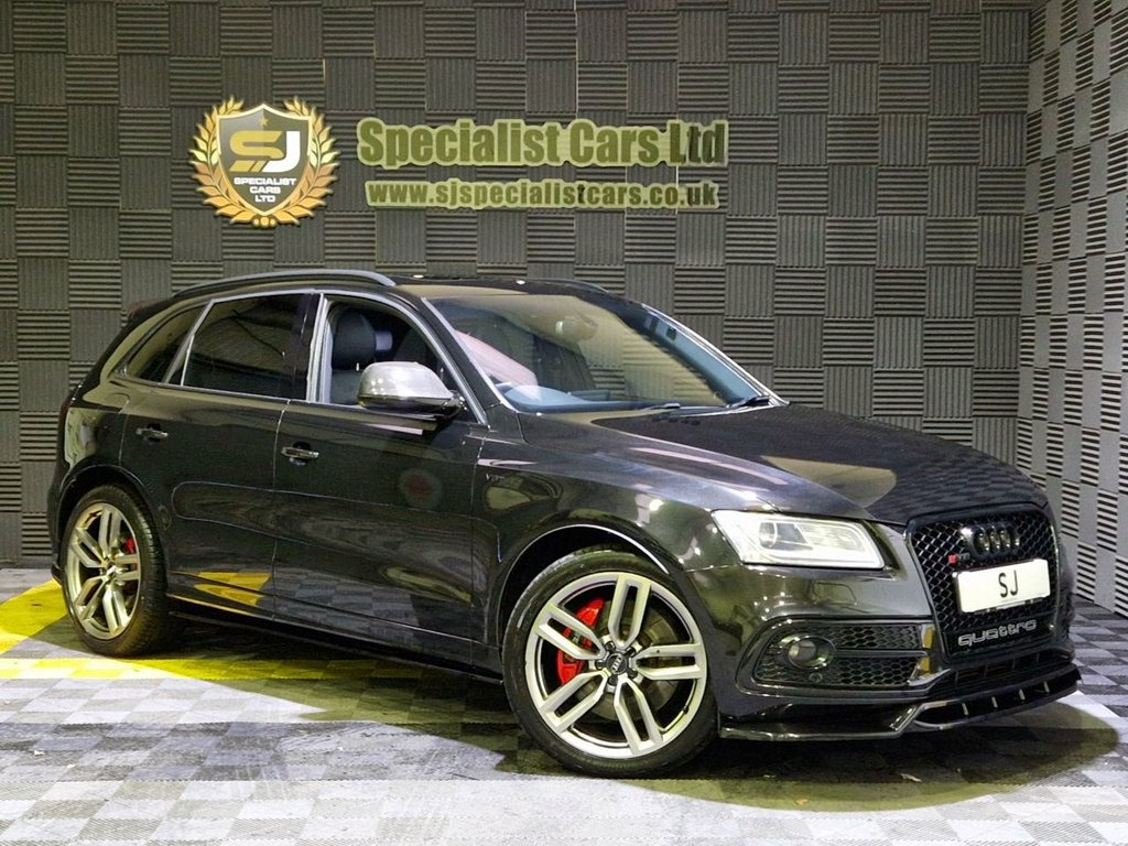 2015 / 15 Audi SQ5 3.0 TDI Bi Turbo. Finished in Metallic Black, with Full Black Leather, 83000 Miles FSH, Great Spec Inc : High Quality Upgraded Media Screen, 21" Alloys, Sliding Panoramic Sunroof, Electric Seats, Privacy Glass, Technology Pack, Heated Front and Rear Seats, Powered Tailgate, Black Exterior Pack. Very Well Cared for, with Excellent History and Records of Upgrades, Warranties and Part Exchange Available.. Power Operated Tailgate, Steering Wheel - 3-Spoke Leather-Multifu, Audi Drive Select, Audi Hill Hold Assist, Panther Black, Technology Package, Advanced Key, Inlays - Carbon Atlas, Heated Front and Outer Rear Seats, Privacy Glass, Door Mirrors - Heated-Electrically Adjus, Tow Bar, Panoramic Glass Sunroof, Black Styling Package, 21in Alloy Wheels - 5-Twin-Spoke Star De, 12V Power Socket, 20in Alloy Wheels - 5-Parallel Spoke Des, 6.5in Display Screen, ABS - Anti-Lock Braking System, AUX-IN Socket, Acoustic Windscreen, Active Door Reflectors, Air Conditioning - Deluxe Automatic at t, Airbags - Driver, Airbags - Front Passenger, Airbags - Front Side, Airbags - Head System, Alarm - Thatcham Categ