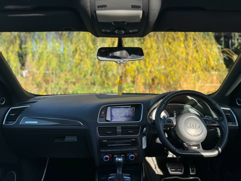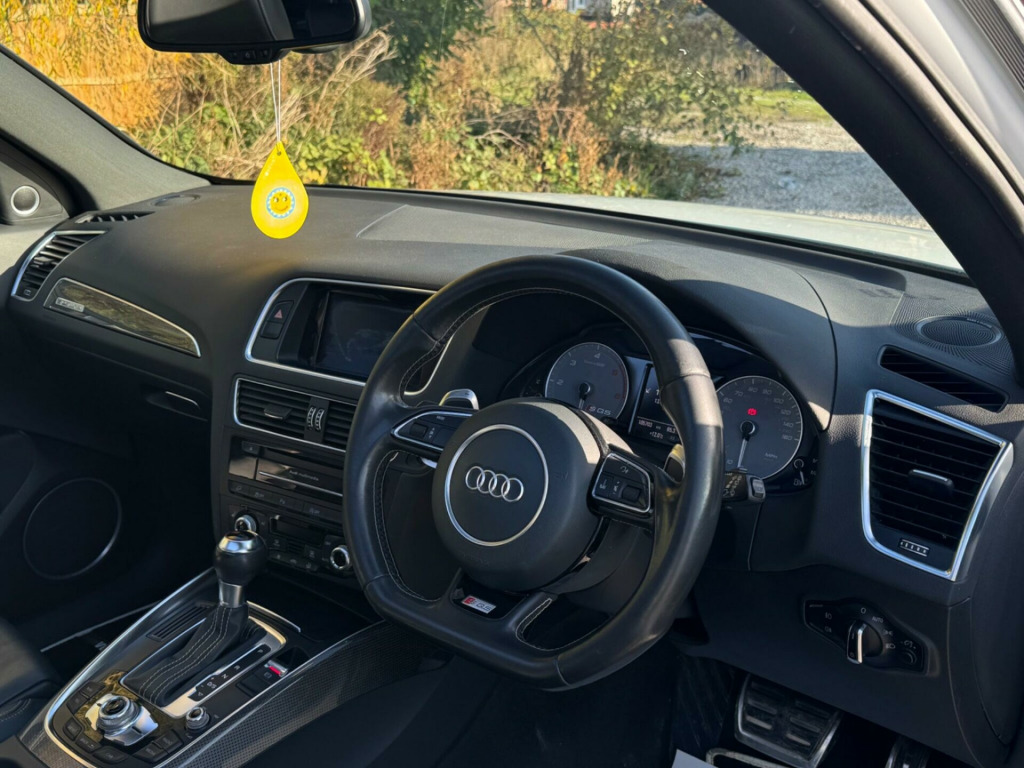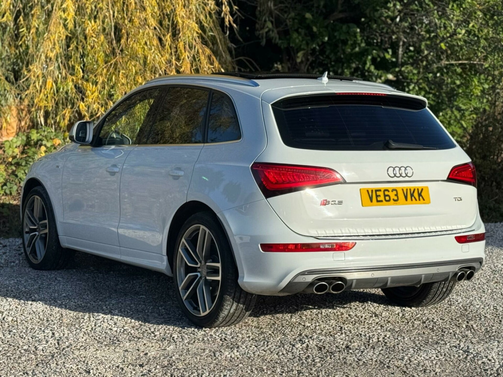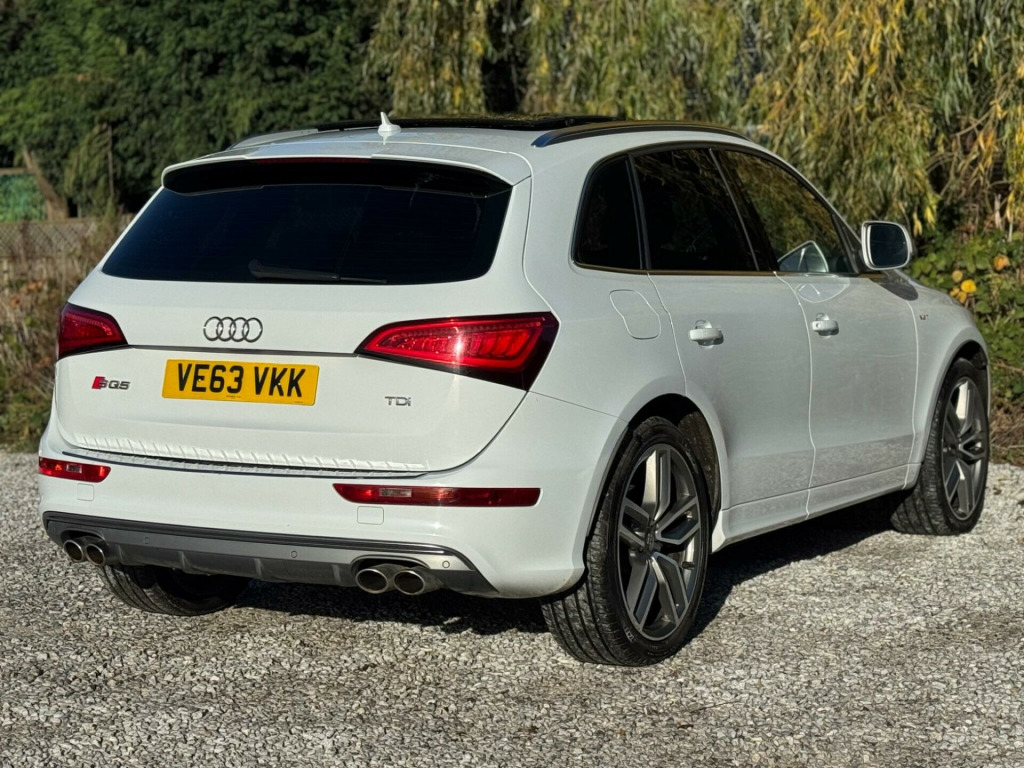 1 FORMER KEEPER2 KEYSSERVICE HISTORY - MOST RECENT SERVICE DONE 96,778LOGBOOK£6,560 WORTH OF EXTRASOptional Equipment when new£6,560inc. VATTechnology pack£1,69521 x 8.5J '5-twin-spoke-star' design alloy wheels in Titanium look with a high gloss finish 255/40 R21 tyres£1,250Open sky panoramic sunroof£1,125Metallic paint£615Bang & Olufsen Sound System£535Power operated tailgate£385Heated front seats£300Carbon atlas inlay£255Door mirrors, electrically adjustable, heated and folding£190High-beam assist£1103-spoke leather Sports multi-function flat bottomed steering wheel with gear change paddles£100Black/Black Fine Nappa Leather-Glacier white, metallic-Total price when new£49,635inc. VATEquipment:Navigation HDDParking Sensor(s)Climate ControlLeather TrimSpace Saver Spare Wheel21'' Alloy WheelsPanoramic RoofPrivacy GlassThis 2014 Audi SQ5 BiTDI V6 boasts a clear vehicle history and has been owned by only two careful owners, offering you peace of mind. Under the bonnet, you'll find a powerful 3.0L Diesel engine paired with Audi's renowned Four Wheel Drive system, ensuring excellent performance and grip in all conditions. This impressive SQ5 also comes equipped with Bi-Xenon Plus headlights, a light sensor for automatic headlight activation, and rear parking sensors to aid manoeuvrability. Stay comfortable on every journey with Deluxe 3-Zone Climate Control, and stay connected on the go thanks to the integrated Bluetooth mobile telephone preparation.The SQ5 truly stands out with its remarkable acceleration, achieving 0-62mph in a swift 5.1 seconds, a performance that surpasses many vehicles in its class. This capability, combined with its substantial 2400 kg towing weight and generous boot space, makes it an exceptionally versatile choice for both daily driving and more demanding tasks. Furthermore, its placement in a low insurance group adds to its appeal, offering a more economical ownership experience compared to similar performance SUVs. v power socket, 20in alloy wheels - 5-parallel spoke design, 6.5in display screen, abs - anti-lock braking system, aux-in socket, acoustic windscreen, air conditioning - deluxe automatic at the rear, airbags - driver, airbags - front passenger, airbags - front side, airbags - head system, alarm - thatcham category 1, aluminium roof rails, aluminium-effect door mirror housings, amplifier - 6 channel, anti theft locking wheel bolts, armrest doors - leather, audi sound system, audio sound system, auto-dimming rear-view mirror, automatic headlight range adjustment, automatic wipers with rain sensor, body coloured bumpers, brake calipers - black with s logo, car jack, cloth headlining in black, colour drivers information system - dis, concert radio, cruise control, cup holders - centre console, deluxe 3-zone climate control, door mirrors - electrically adjustable and heated, door sill trims - aluminium with sq5 embossing, ebd - electronic brakeforce distribution, esp - electronic stability programme, electric windows - front and rear, electrically adjustable 4-way lumbar support, electromechanical parking brake, electromechanical power steering, exhaust tailpipe - chrome rolled finish x4, exhaust tailpipe - twin chrome rolled finish - both sides, first aid kit, front centre armrest, front fog lights, front passenger airbag deactivation switch, front and rear floor mats, headlight washers, headlights - bi-xenon plus, headlights - coming-leaving home function, headlights - light sensor, hill descent control, isofix child seat preparation front and rear, inlays - matt brushed aluminium, interior light package, led daytime running lights, led interior light package, led rear lights, leather door armrests, leather package - door armrests, misfuelling inhibition, mobile telephone preparation - bluetooth interface, pollen filter, radiator grille - s design with s5 logo, rear parking sensors, remote boot release, remote central locking, rest recommendation system, roof bars and storage bag, roof bar detection, s design body styling, s instrument dials, s sport suspension, sdhc card reader, seats - front electric adjustment, seats - front electric height adjustment, split-folding rear seats, spoiler, steering column - rake and reach adjustment, steering wheel - 3-spoke s line multi-function leather, steering wheel - gear shift paddles, steering wheel - multi-function, tp memo - automatically saves traffic news, tool kit, traction control, tyre mobility system, warning triangle, window surrounds - aluminium, technology package - advanced, electric panoramic sunroof - open sky slide and tilt, inlays - carbon atlas, inlays - audi exclusive carbon, 21in alloy wheels - 5-twin-spoke star design in titanium look with high gloss finish, bang and olufsen sound system, power operated tailgate, headlights - high-beam assist, steering wheel - 3-spoke leather-multifunction-flat bottomed-shift paddles, door mirrors - heated-electrically adjustable-folding, heated front seats