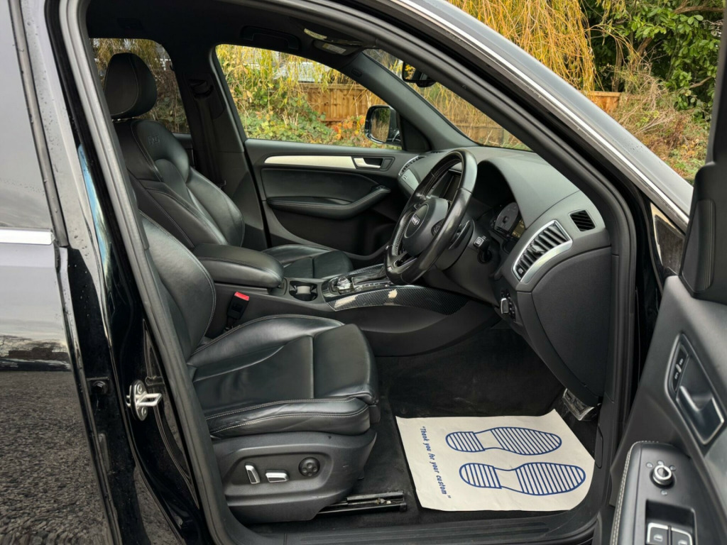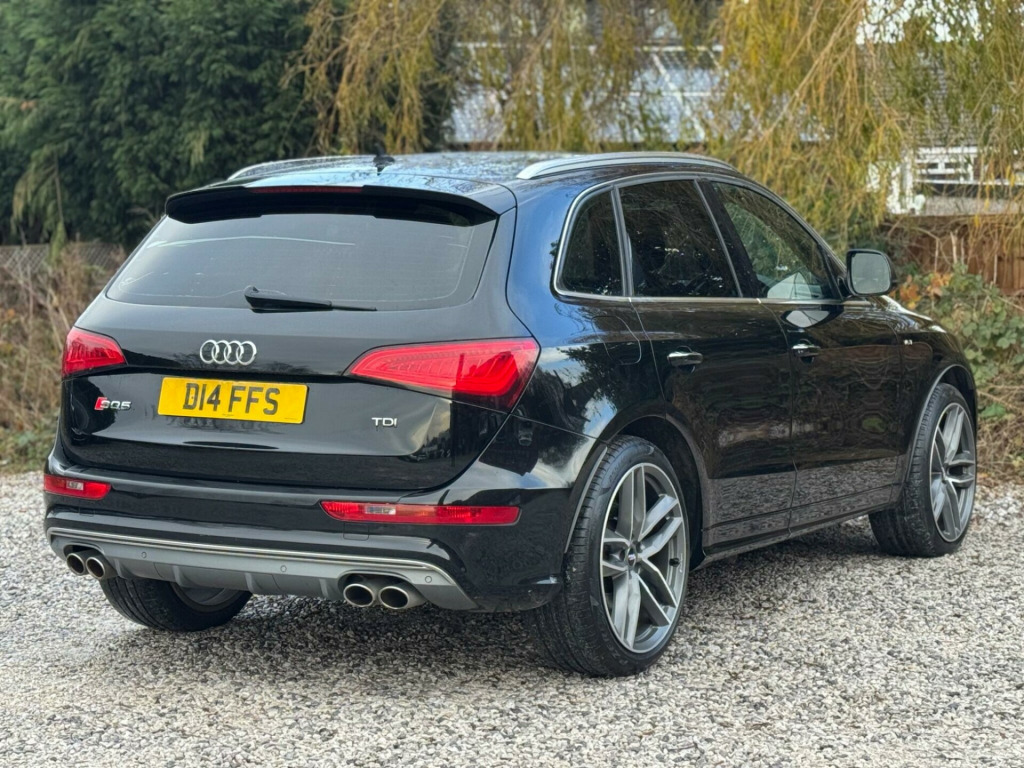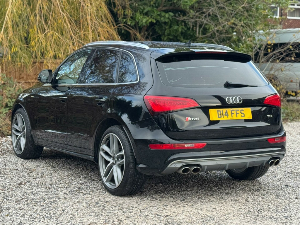 2 KEYSSERVICE HISTORY - 6 SERVICES - MOST RECENT SERVICE DONE 110,67821in Alloy Wheels - 5-Twin-Spoke Star Design in Titanium Look ValuableSeats - Front Electric Lumbar Support with MemoryVery rareMobile Telephone Preparation - High with Audi ConnectVery rare6-CD Changer and DVD PlayerRarePower Operated TailgateRarePrivacy GlassDoor Mirrors - Heated-Electrically Adjustable-FoldingHeated Front SeatsFine Nappa Leather - Sports Seats - Black-BlackEquipment:Navigation HDDNavigation SystemParking Sensor(s)Climate ControlLeather Trim21'' Alloy WheelsPrivacy GlassThis 2014 Audi SQ5 BiTDI V6 offers a compelling blend of performance and practicality, boasting a powerful 3.0L Diesel engine and Audi's renowned Four Wheel Drive system for confident handling in all conditions. This particular model comes equipped with a range of desirable features, including Mobile Telephone Preparation with a Bluetooth Interface, Deluxe 3-Zone Climate Control for passenger comfort, and Bi-Xenon Plus Headlights with an automatic light sensor for enhanced visibility. For added convenience, it includes Rear Parking Sensors to assist with manoeuvring.The SQ5 stands out with its impressive acceleration, reaching 0-62mph in just 5.1 seconds, demonstrating its sporty capabilities. This performance is complemented by a large boot space, making it a versatile choice for families and those needing ample storage. Furthermore, its position within a low insurance group makes it an economical option to own and run, offering a superior ownership experience compared to many similar vehicles. With a substantial towing weight of 2400 kg, this Audi SQ5 is also well suited for towing needs. in alloy wheels - 5-twin-spoke star design in titanium look with high gloss finish, seats - front electric lumbar support with memory, mobile telephone preparation - high with audi connect, 6-cd changer and dvd player, power operated tailgate, privacy glass, door mirrors - heated-electrically adjustable-folding, heated front seats, fine nappa leather - sports seats - black-black, 12v power socket, 20in alloy wheels - 5-parallel spoke design, 6.5in display screen, abs - anti-lock braking system, aux-in socket, acoustic windscreen, active door reflectors, air conditioning - deluxe automatic at the rear, airbags - driver, airbags - front passenger, airbags - front side, airbags - head system, alarm - thatcham category 1, aluminium roof rails, aluminium-effect door mirror housings, amplifier - 6 channel, anti theft locking wheel bolts, audi sound system, audio sound system, auto-dimming rear-view mirror, automatic headlight range adjustment, automatic wipers with rain sensor, body coloured bumpers, brake calipers - black with s logo, car jack, cloth headlining in black, collapsible spare wheel, colour drivers information system - dis, concert radio, cruise control, cup holders - centre console, dab digital radio, deluxe 3-zone climate control, door mirrors - electrically adjustable and heated, door sill trims - aluminium with sq5 embossing, ebd - electronic brakeforce distribution, esp - electronic stability programme, electric windows - front and rear, electrically adjustable 4-way lumbar support, electromechanical parking brake, electromechanical power steering, entrance lights, first aid kit, front centre armrest, front fog lights, front footwell lighting, front passenger airbag deactivation switch, front and rear floor mats, glovebox - illuminated, headlight washers, headlights - bi-xenon plus, headlights - coming-leaving home function, headlights - light sensor, hill descent control, isofix child seat preparation front and rear, illuminated vanity mirrors, inlays - matt brushed aluminium, interior light package, interior lighting - vents and internal door controls, led daytime running lights, led interior light package, led rear lights, leather package - door armrests, misfuelling inhibition, mobile telephone preparation - bluetooth interface, pollen filter, radiator grille - s design, rear parking sensors, rear reading lights, remote boot release, remote central locking, rest recommendation system, roof bars and storage bag, s design body styling, s instrument dials, sdhc card reader, seats - front electric adjustment, seats - front height adjustment, seats - split folding rear - 60-40, spoiler, steering column - rake and reach adjustment, steering wheel - 3-spoke leather - multi-function - sports - shift paddles, steering wheel - gear shift paddles, steering wheel - multi-function, suspension - s sports, tp memo - automatically saves traffic news, tool kit, traction control, tyre mobility system, warning triangle