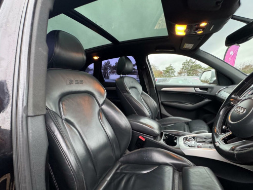 Vincent Cars are pleased to offer our AUDI SQ5 BITDI V6 in Metallic BLACK. This fantastic, well-equipped and popular SPORTS PERFORMANCE SUV also comes with standard features such as SERVICE HISTORY (SERVICED CURRENT MILES), LONG MOT 06/2026, PANROOF, SIDE STEPS, MEMORY FUNCTION SEATS, ELECTRIC SEATS, SATNAV, 20 ALLOY RIMS, SQ5 SPORTS STEERING WHEEL, METALLIC FINISH TIP TRONIC, PRIVACY GLASS Air Conditioning,, Bluetooth Phone Connectivity, and so much more! Our helpful and attentive team at Vincent Cars are available 7 days a week to help you find the perfect car to suit your needs. Our dedicated team remain on hand to provide you with a CLICK & COLLECT service, simply call, message or Live Chat and our team will answer any questions that you may have before you simply secure this vehicle and arrange collection or delivery – we can now offer LIVE VIRTUAL APPOINTMENTS at the click of a button, just ask! All Vincent Cars undergo a comprehensive series of stringent tests and inspections. These checks include history, service, hpi, previous Mots. Our enhanced warranty gives 3 months standard on all our vehicles, with the option to opt for more if desired giving you full peace of mind and taking control. We are proud to be part of the motoring industry established over many years and since have grown into one of the UKs valuable motor groups. All major credit debit cards accepted, indoor showroom, Nationwide Delivery available.