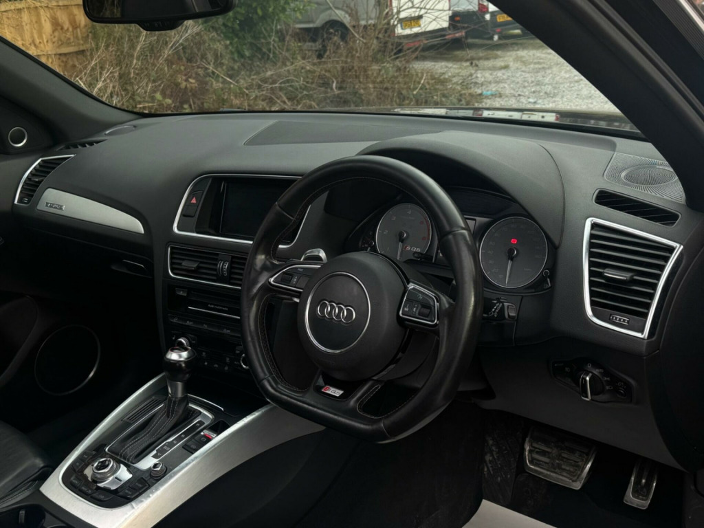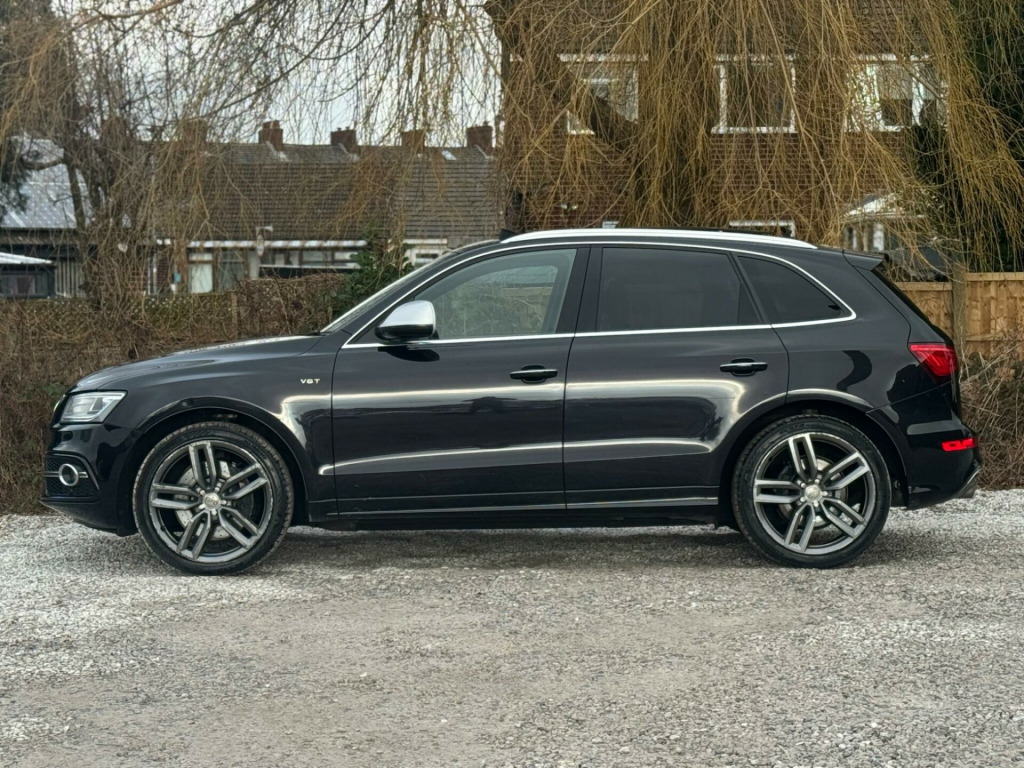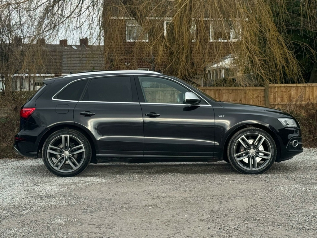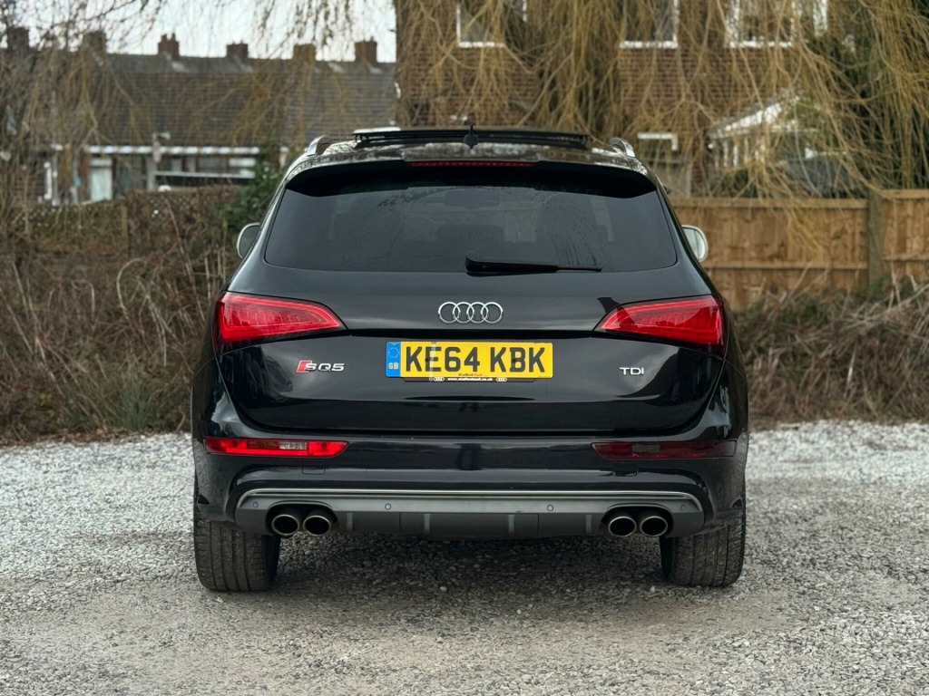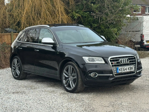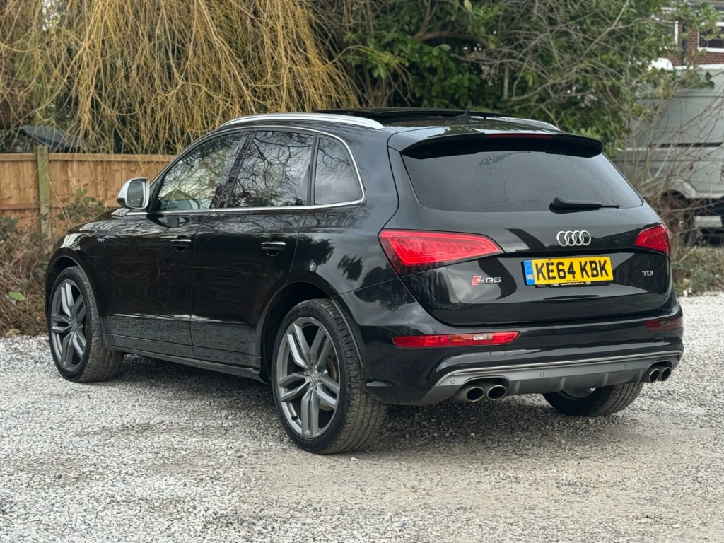 2 FORMER KEEPERSSERVICE HISTORY - 7 MAIN DEALER SERVICESLOGBOOKK2Panoramic Glass SunroofRareValuable21in Alloy Wheels - 5-Twin-Spoke Star Design in Titanium Look with High Gloss FinishValuableMobile Telephone Preparation - Low with Bluetooth and Voice ControlVery rareSeats - Front Electric Lumbar Support with MemoryVery rareBang and Olufsen Sound SystemValuableTV Reception - DigitalVery rareSteering Wheel - 3-Spoke Leather-Multifunction-Flat Bottomed-Shift PaddlesRare6-CD Changer and DVD PlayerRarePower Operated TailgateRareDoor Mirrors - Heated-Electrically Adjustable-FoldingPrivacy GlassHeated Front SeatsFine Nappa Leather - Sports Seats - Black-BlackEquipment:Air ConditioningAuto Climate ControlAutomatic LightsBluetoothDABDual Zone ClimateElectric Sun RoofFront Parking SensorsFull Leather TrimThis 2014 Audi SQ5 BiTDI V6 offers a compelling blend of performance and practicality, boasting a powerful 3.0L Diesel engine and Four Wheel Drive for confident handling. Its Bi-Xenon Plus headlights with automatic activation and a light sensor ensure excellent visibility, while the deluxe 3 zone climate control provides comfort for all occupants. Stay connected on the go with the integrated Bluetooth mobile telephone preparation, and manoeuvre with ease thanks to the rear parking sensors.The SQ5 stands out with its impressive acceleration, reaching 0-62mph in just 5.1 seconds, demonstrating its dynamic capabilities. This performance is matched by a substantial towing weight of 2400 kg, making it a versatile choice for various needs. Furthermore, its low insurance group rating and generous boot space offer excellent value and everyday usability, setting it apart from other vehicles in its class. noramic glass sunroof, 21in alloy wheels - 5-twin-spoke star design in titanium look with high gloss finish, mobile telephone preparation - low with bluetooth and voice control, seats - front electric lumbar support with memory, bang and olufsen sound system, tv reception - digital, steering wheel - 3-spoke leather-multifunction-flat bottomed-shift paddles, 6-cd changer and dvd player, power operated tailgate, door mirrors - heated-electrically adjustable-folding, privacy glass, heated front seats, fine nappa leather - sports seats - black-black, 12v power socket, 20in alloy wheels - 5-parallel spoke design, 6.5in display screen, abs - anti-lock braking system, aux-in socket, acoustic windscreen, active door reflectors, air conditioning - deluxe automatic at the rear, airbags - driver, airbags - front passenger, airbags - front side, airbags - head system, alarm - thatcham category 1, aluminium roof rails, aluminium-effect door mirror housings, amplifier - 6 channel, anti theft locking wheel bolts, audi sound system, audio sound system, auto-dimming rear-view mirror, automatic headlight range adjustment, automatic wipers with rain sensor, body coloured bumpers, brake calipers - black with s logo, car jack, cloth headlining in black, collapsible spare wheel, colour drivers information system - dis, concert radio, cruise control, cup holders - centre console, dab digital radio, deluxe 3-zone climate control, door mirrors - electrically adjustable and heated, door sill trims - aluminium with sq5 embossing, ebd - electronic brakeforce distribution, esp - electronic stability programme, electric windows - front and rear, electrically adjustable 4-way lumbar support, electromechanical parking brake, electromechanical power steering, entrance lights, first aid kit, front centre armrest, front fog lights, front footwell lighting, front passenger airbag deactivation switch, front and rear floor mats, glovebox - illuminated, headlight washers, headlights - bi-xenon plus, headlights - coming-leaving home function, headlights - light sensor, hill descent control, isofix child seat preparation front and rear, illuminated vanity mirrors, inlays - matt brushed aluminium, interior light package, interior lighting - vents and internal door controls, led daytime running lights, led interior light package, led rear lights, leather package - door armrests, misfuelling inhibition, mobile telephone preparation - bluetooth interface, pollen filter, radiator grille - s design, rear parking sensors, rear reading lights, remote boot release, remote central locking, rest recommendation system, roof bars and storage bag, s design body styling, s instrument dials, sdhc card reader, seats - front electric adjustment, seats - front height adjustment, seats - split folding rear - 60-40, spoiler, steering column - rake and reach adjustment, steering wheel - 3-spoke leather - multi-function - sports - shift paddles, steering wheel - gear shift paddles, steering wheel - multi-function, suspension - s sports, tp memo - automatically saves traffic news, tool kit, traction control, tyre mobility system, warning triangle