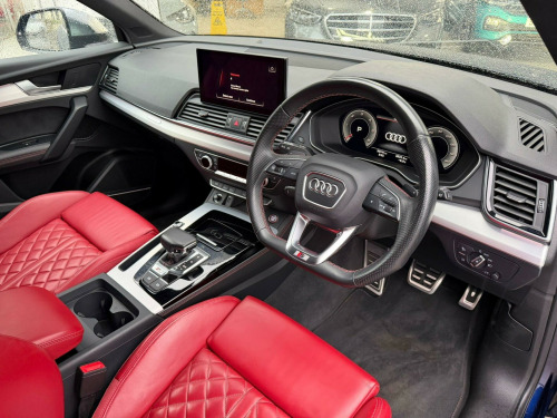 This 2023 Audi SQ5 TDI V6 boasts an exceptionally low mileage of just 30,200 miles, a significant advantage for a vehicle of its age. This Euro 6 compliant model features a powerful 3.0L Diesel engine paired with Four Wheel Drive, offering a towing weight of 2400 kg. It comes with a clear vehicle history check and a full service history, ensuring peace of mind. The SQ5 is equipped with the Comfort and Sound Package, which includes Keyless Entry, a Luxury Branded Sound System, and 360 Degree Parking Assistance. Further enhancing convenience are heated front seats, Deluxe 3-Zone Electronic Climate Control, and a Reversing Camera with front and rear parking sensors providing acoustic warnings. A 12-month MOT will be provided on purchase.The performance of this Audi SQ5 is truly impressive, with an acceleration of 0-62mph achieved in a swift 5.1 seconds, demonstrating its dynamic capabilities. This quick acceleration sets it apart from many other vehicles in its class. The large boot space offers excellent practicality for everyday use and longer journeys. The combination of its advanced features, robust engine, and refined interior makes this SQ5 a compelling choice for those seeking a blend of performance, comfort, and utility.. 2 USB Charging Ports -1 x USB-A and 1 x USB-C Port, 20in Alloy Wheels - 8.0J 5-Twin-Spoke - Star Design Contrasting Grey - Diamond Cut, 24-litre AdBlue Tank and 70-litre Fuel Tank, 4-Way Electric Lumbar Support, 6-Airbag System, Aluminium Roof Rails, Anti Theft Locking Wheel Bolts, Anti-Theft Alarm, Artificial Leather Pack, Audi Beam, Audi Connect Navigation and Infotainment Services Plus - 3 Year Trial, Audi Connect with Amazon Alexa Integration, Audi Drive Select, Audi Pre-Sense City, Audi Sound System, Audi Virtual Cockpit Plus - 12.3in Screen and Three Different Layout Designs, Audi Wireless Smartphone Interface, Auto-Dimming Rear-View Mirror, Automatic Headlight Adjustment, Automatic Headlight and Windscreen Wiper Activation, Automatic Start-Stop with Coasting Functionality and Efficiency Programme, Bluetooth Interface, Chrome-Plated Exhaust Trim, Cloth Headlining in Black, Comfort Front Centre Armrest - Height Adjustability and Slide Function, Contrast Stitching on Seats - Steering Wheel and Gear Lever Gaiter, Cruise Control System with Speed Limiter, DAB Digital Radio, Deluxe 3-Zone Electronic Climate Control, Door Mirror Housings - Aluminium, Door Mirrors - Electrically Folding and Heated and Auto Dimming, Door Sills in Selenite Silver, ESC - Electronic Stabilisation Control inc ABS - ASR and EDL, Electric Child Locks for Rear Doors, Electric Windows - Front, Electromechanical Parking Brake, Electromechanical Power Steering, First Aid Kit and Warning Triangle, Flat-Bottomed 3-Spoke Leather High Multi-Function Steering Wheel, Front Radiator Grille in Honeycomb Design, Front and Rear Floor Mats, Front and Rear Parking Sensor with Acoustic Warning, Full Electrically Adjustable Front Seats, Gear Lever in Black Leather, Headlight Washers, Heated Front Seats, High Gloss Package, Hill Descent Control, Hill Hold Assist, ISOFIX Child Seat Mounting and Top Tether, Illuminated Door Sill Trims with S Logo, Inlays - Matt Brushed Aluminium, Keyless Go, LED Interior Lighting Pack, Lower Bumper Painted in Contrast Manhattan Grey, MMI Navigation Plus with 10.1in Touchscreen, Massage Function For Front Seats, Matrix LED Headlights with Dynamic Front and Rear Indicators, Multi Collision Brake Assist, Pedals in Stainless Steel, Pop-Up Bonnet for Pedestrian Protection, Power Operated Tailgate, Privacy Glass - Rear and Rear-Side Windows, Rear Bench Seat Plus, Rear Chrome Trim Strips Below Lights, Removable Luggage Compartment Floor, Reversing Camera, Roof Bars, S Air Inlet in Titanium Black, S Front and Rear Bumpers, S Line Side Skirts, S Specific Rear Diffuser in Body Colour, S Sport Suspension, S line Rear Spoiler, Seat Belt Monitoring, Split Folding 3 Seater - Rear Seat Bench in 3 Parts - 40-20-40 with Rear Centre Armrest, Steering Wheel - Gear Shift Paddles, Sun Visors - with Vanity Mirror, Tool Kit, Trunk Roller Cover, Tyre Pressure Warning Light, Tyre Repair Kit, Underbody Protection in Body Colour, Voice Control System with Audi Hotword Activation - Hey Audi, Windscreen with Acoustic Glass, quattro On Demand, Fine Nappa Leather - Magma Red with Red-Granite Grey, Comfort and Sound Package. Full service history