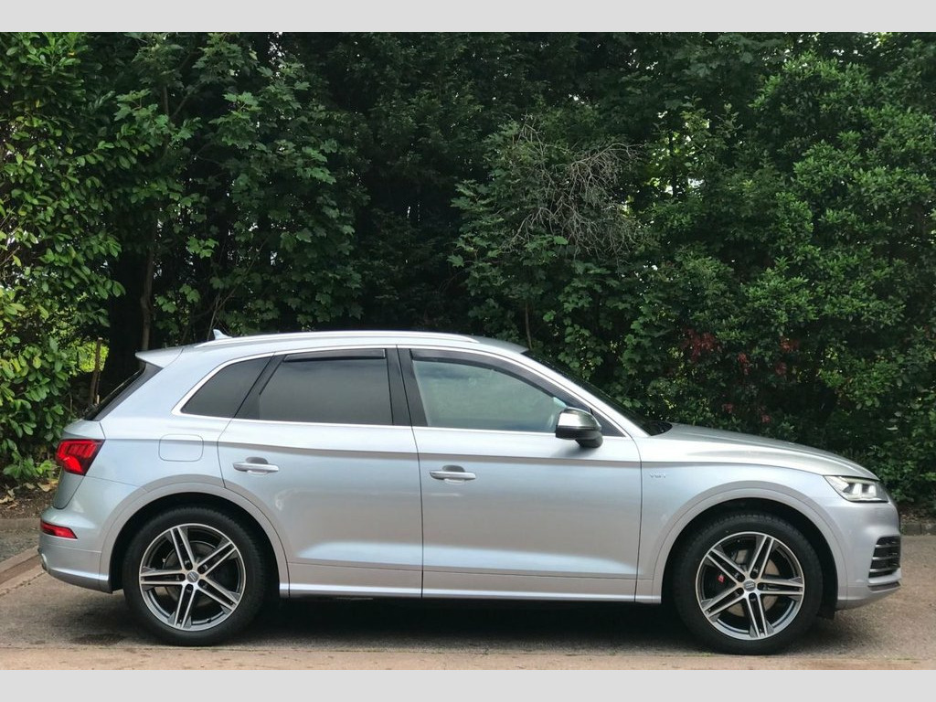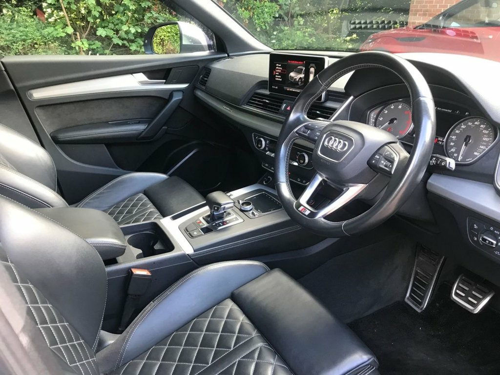 STUNNING AUDI 3.0 TFSI V6 PETROL TIPTRONIC QUATTRO OFFERED IN GLEAMING FLORET SILVER METALLIC/BLACK PREMIUM LEATHER WITH DIAMOND STITCHING/SATELLITE NAVIGATION/DAB RADIO/BLUETOOTH CONNECTIVITY/DUAL ZONE CLIMATE CONTROL/MULTI FUNCTION AUDI SPORT STEERING WHEEL/CRUISE CONTROL/HEATED DOOR MIRRORS/SUN PROTECTION GLASS/FRONT AND REAR PARKING SENSORS/20 INCH STAR SPOKE ALLOY WHEELS/SERVICE HISTORY/PX WELCOME. 2 x SDXC Card Readers, 2 x USB Charging Ports and 1 x AUX-IN, 20in Alloy Wheels - 5-Twin-Spoke Star De, 4-Way Electric Lumbar Support, 6-Airbag System, Aluminium Roof Rails, Aluminium-Effect Door Mirror Housings, Anti Theft Locking Wheel Bolts, Anti-Theft Alarm, Audi Beam, Audi Connect Infotainment Services - 3 M, Audi Connect Safety and Service - e-call, Audi Drive Select, Audi Parking System Plus, Audi Pre-Sense City, Audi Smartphone Interface, Audi Sound System, Auto-Dimming Rear-View Mirror, Automatic Headlight Adjustment, Bluetooth Interface, Brake Calipers Painted in Black with SQ5, CD Drive, Cloth Headlining in Black, Colour Drivers Information System with 7, Contrast Stitching on Sea