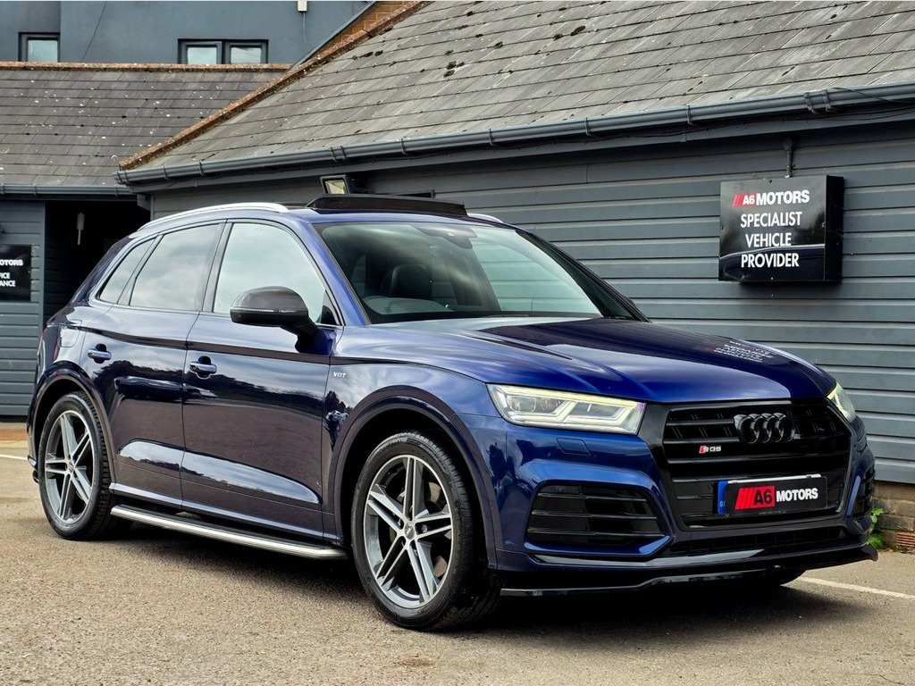 STUNNING AUDI SQ5 FINISHED IN NAVARA BLUE BOASTING HUGE SPEC FROM FACTORY. LOVELY CONDITION THROUGHOUT. S Adaptive Air Suspension, Parking Assistance Pack, Rear Side Airbags, 20in Alloy Wheels - 10-Y-Spoke Design - , Running Boards, Door Mirrors - Folding, Panoramic Glass Sunroof, Door Mirrors - Folding with Auto-Dimming, Flat-Bottomed 3-Spoke Leather High Multi, Pre-Sense Basic, Audi Matrix LED Headlights with LED Rear, Fine Nappa Leather - Black with Rock Gre, Navarra Blue, Audi Virtual Cockpit, 2 x SDXC Card Readers, 2 x USB Charging Ports and 1 x AUX-IN, 20in Alloy Wheels - 5-Twin-Spoke Star De, 4-Way Electric Lumbar Support, 6-Airbag System, Aluminium Roof Rails, Aluminium-Effect Door Mirror Housings, Anti Theft Locking Wheel Bolts, Anti-Theft Alarm, Audi Beam, Audi Connect Infotainment S