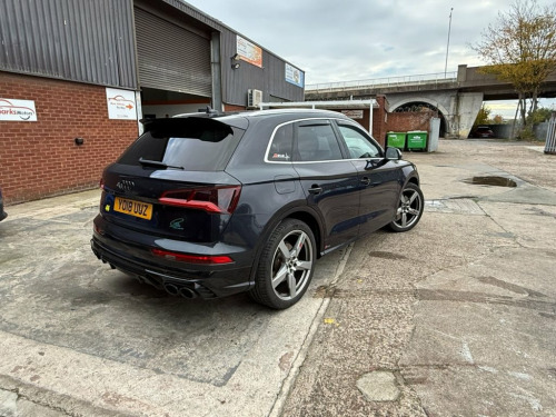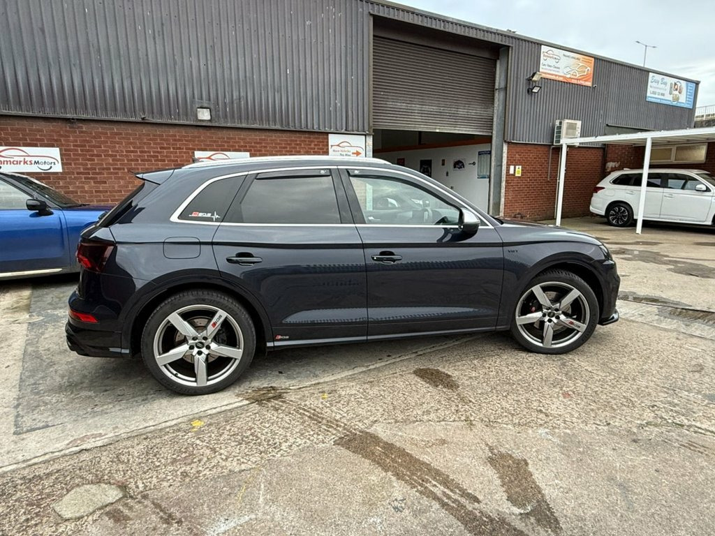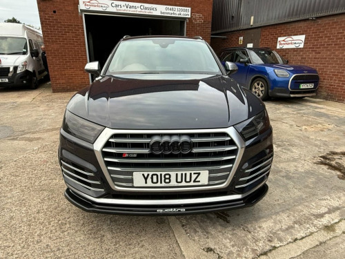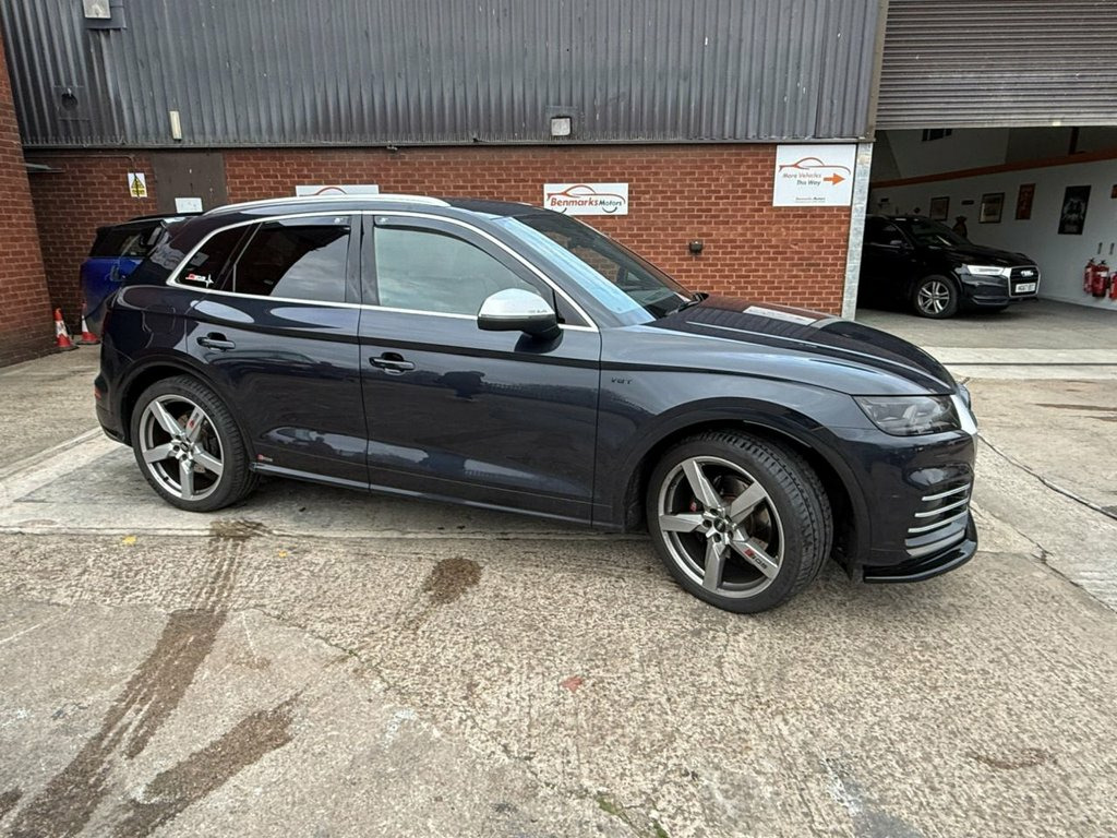This 2018 Audi SQ5 3.0 TFSI V6 quattro is a high-performance SUV that perfectly combines power, luxury, and everyday practicality. Finished in Navarra Blue, it has covered just 33,325 miles and is powered by Audi's 3.0-litre turbocharged V6 petrol engine producing 354 PS. Paired with a smooth Tiptronic automatic gearbox and quattro all-wheel drive, it delivers thrilling performance and refinement in equal measure. It comes with proof of 2 services, the most recent completed at 29,247 miles, and will also benefit from a new 12-month MOT at point of sale for added peace of mind. Road tax is £620 per year, reflecting its performance pedigree. This example also includes factory-fitted extras worth £3,145, featuring stunning 21in Audi Sport 5-Arm Polygon Alloy Wheels, Audi Virtual Cockpit, Audi Phone Box with Wireless Charging, Folding Door Mirrors, Black Piano Finish Inlays, and the premium Navarra Blue metallic paint. These upgrades enhance both its look and usability, making it an even more desirable specification. Inside, the SQ5 offers a luxurious and driver-focused cabin with leather and Alcantara upholstery, heated sport seats, a flat-bottom steering wheel, and cutting-edge infotainment technology. It's both practical and performance-oriented, capable of switching seamlessly from daily comfort to dynamic driving. Supplied with a 6-Months Warranty included free of charge, with upgrade options available, this SQ5 represents exceptional value for a ve Door Mirrors - Folding, Navarra Blue, 21in Alloy Wheels - 5-Arm Polygon Design, Audi Virtual Cockpit, Inlays - Piano Finish - Black, Audi Phone Box with Wireless Charging, 2 x SDXC Card Readers, 2 x USB Charging Ports and 1 x AUX-IN, 20in Alloy Wheels - 5-Twin-Spoke Star De, 4-Way Electric Lumbar Support, 6-Airbag System, Aluminium Roof Rails, Aluminium-Effect Door Mirror Housings, Anti Theft Locking Wheel Bolts, Anti-Theft Alarm, Audi Beam, Audi Connect Infotainment Services - 3 M, Audi Connect Safety and Service - e-call, Audi Drive Select, Audi Parking System Plus, Audi Pre-Sense City, Audi Smartphone Interface, Audi Sound System, Auto-Dimming Rear-View Mirror, Automatic Headlight Adjustm