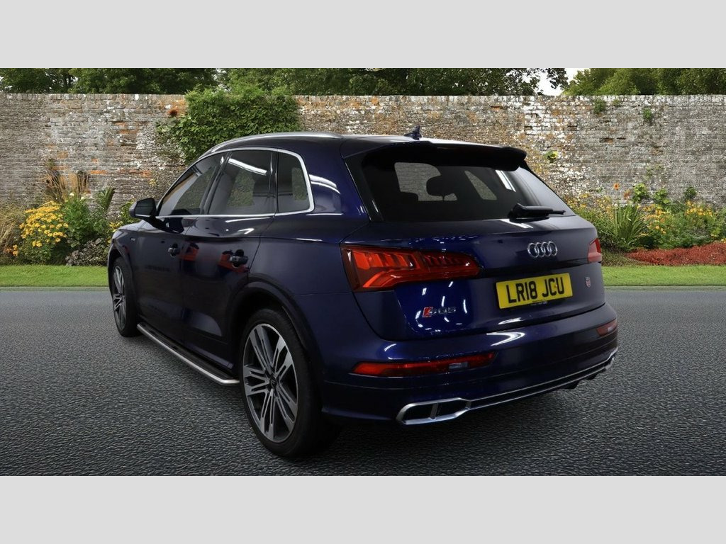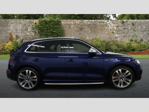 This 2018 Audi SQ5 TFSI V6 presents an exceptional opportunity with its remarkably low mileage of just 45,000 miles, a clear vehicle history check, and a Euro 6 emission class. Powered by a potent 3.0 litre petrol engine and featuring Audi's renowned Four Wheel Drive system, this SQ5 offers a dynamic driving experience. Notable features include a stunning Panoramic Glass Sunroof, practical Running Boards, stylish 21 inch V Design Diamond Cut Alloy Wheels, advanced LED Headlights with dynamic rear indicators, and cosy Heated Front Seats, all contributing to its premium appeal. The performance of this SQ5 is truly impressive, with a rapid 0-60mph acceleration time of just 5.4 seconds, demonstrating its capability. This acceleration figure indicates how this vehicle is better than other similar vehicles. Furthermore, its substantial towing weight of 2400 kg makes it a versatile choice for various needs, while the generous boot space ensures practicality for everyday life and longer journeys. The SQ5 also benefits from a low insurance group, offering an economical ownership proposition alongside its performance and luxury. 21in Alloy Wheels - 5-Twin V Design Cont, Fine Nappa Leather - Black with Rock Gre, Moonlight Blue, Running Boards, Brake Calipers - Red, Panoramic Glass Sunroof, 2 x SDXC Card Readers, 2 x USB Charging Ports and 1 x AUX-IN, 4-Way Electric Lumbar Support, 6-Airbag System, Aluminium Roof Rails, Aluminium-Effect Door Mirror Housings, Anti Theft Locking Wheel Bolts, Anti-Theft Alarm, Audi Beam, Audi Connect Infotainment Services - 3 M, Audi Connect Safety and Service - e-call, Audi Drive Select, Audi Parking System Plus, Audi Pre-Sense City, Audi Smartphone Interface, Audi Sound System, Auto-Dimming Rear-View Mirror, Automatic Headlight Adjustment, Bluetooth Interface, Brake Calipers Painted in