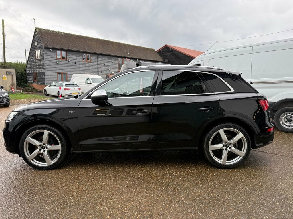 AUTOTRADER award winners for Customer experience 2025 please review over 600 5 star reviews from our customers we offer low deposit flexible finance plans from only 9.9% APR this SQ5 is supplied for six months parts and labour nationwide warranty PLEASE NOTE INCLUDES PERSONALISED NUMBER PLATE IF DESIRED This 2019 Audi SQ5 TFSI V6 finished in Mythos Black is in excellent condition with service history and just 2 owners from new This four wheel drive model is powered by a 3.0 litre petrol engine and meets Euro 6 emission standards. It comes with a 6 month parts and labour nationwide warranty. For convenience, it features heated front seats, Audi Parking System Plus with front and rear sensors, and a light and rain sensor that automatically activates the headlights. The vehicle is equipped with LED headlights and dynamic rear indicators, along with MMI Navigation Plus including MMI Touch and Bluetooth connectivity. The Audi SQ5 TFSI V6 stands out with its remarkable acceleration, reaching 0-60mph in just 5.4 seconds, a speed that indicates its superior performance compared to many similar vehicles. Its Euro 6 compliance and low insurance group further enhance its appeal. This model is also capable of towing up to 2400 kg, making it a versatile choice for various needs. Supplied with a comprehensive Audi dealer service history fully serviced prior to delivery by VW Audi specialists with 4 new tyres fitted with MOT until February 2027 with no advisories any independent inspecti 2 x SDXC Card Readers, 2 x USB Charging Ports and 1 x AUX-IN, 20in Alloy Wheels - 5-Twin-Spoke Star De, 4-Way Electric Lumbar Support, 6-Airbag System, Aluminium Roof Rails, Aluminium-Effect Door Mirror Housings, Anti Theft Locking Wheel Bolts, Anti-Theft Alarm, Audi Beam, Audi Connect Infotainment Services - 3 M, Audi Connect Safety and Service - e-call, Audi Drive Select, Audi Parking System Plus, Audi Pre-Sense City, Audi Smartphone Interface, Audi Sound System, Auto-Dimming Rear-View Mirror, Automatic Headlight Adjustment, Bluetooth Interface, Brake Calipers Painted in Black with SQ5, CD Drive, Cloth Headlining in Black, Colour Drivers Information System with 7, Contrast Stitching on Sea