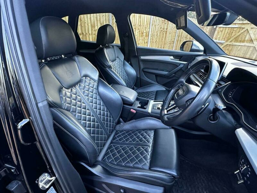 Audi SQ5, the best version of this car produced to date in our opinion, the 3.0 Turbo petrol engine is just incredible, the fuel economy is brilliant whilst having immense power! The exhaust sound from the 3.0 V6 is terrific also. The quilted heated leather seats are the ultimate in comfort! Large Apple Car Play Screen, just been fully serviced!Great service history, perfect body work and immaculate wheels! 12 months warranty available with finance on requestOffer on currently 18 months warranty for £499!! attro with sports differential, fine nappa leather - black with rock grey stitching, audi side assist including pre-sense rear, 2 x sdxc card readers, 2 x usb charging ports and 1 x aux-in, 20in alloy wheels - 5-twin-spoke star design contrasting grey - diamond cut, 4-way electric lumbar support, 6-airbag system, aluminium roof rails, aluminium-effect door mirror housings, anti theft locking wheel bolts, anti-theft alarm, audi beam, audi connect infotainment services - 3 month trial, audi connect safety and service - e-call, audi drive select, audi parking system plus, audi pre-sense city, audi smartphone interface, audi sound system, auto-dimming rear-view mirror, automatic headlight adjustment, bluetooth interface, brake calipers painted in black with sq5 logo at the front, cd drive, cloth headlining in black, colour drivers information system with 7in display, contrast stitching on seats - steering wheel and gear lever gaiter, cruise control with speed limiter, dab digital radio, deluxe 3-zone climate control, door inserts in matt selenite silver, door mirrors - electrically adjustable and heated with integrated led side indicators, esc - electronic stabilisation control inc abs - asr and edl, electric windows - front and rear, electrically adjustable front seats, electromechanical parking brake, electromechanical power steering, extended interior upholstery pack, first aid kit and warning triangle, front centre armrest, front and rear floor mats, gear lever with diamond s badge in black perforated leather, headlights - high-beam assist, heated front seats, high multi-function 3-spoke leather steering wheel with s badging and aluminium effect paddles, high-gloss package, isofix child seat mounting and top tether, illuminated door sill trims with s logo, inlays - matt brushed aluminium, key with sq5 logo, keyless go, led headlights featuring q signature design with led rear lights and dynamic rear indicators, led interior lighting pack, led rear lights, light and rain sensor, luggage compartment cover, luggage compartment mat, mmi navigation plus including mmi touch, mmi radio plus with 7in colour mmi screen and mmi controller, non-smoking package, pedals in stainless steel, pop-up bonnet for pedestrian protection, power operated tailgate, privacy glass with acoustic glazing for front windows, radiator grille in matt twilight grey with horizontal matt aluminium struts, rear bench seat plus, rear spoiler, remote central locking, removable luggage compartment floor, removable net partition, s dual-branch tailpipe design in matt aluminium, s instrument dials, s line badges on the front wing panels, s line front and rear bumpers, s line side skirts, s lower front air inlet, s rear diffuser in body colour with matt aluminium surrounds with honeycomb grille in black, s side air inlet grille in matt titanium black with horizontal inlays in matt aluminium, s suspension with damping control, seat belt monitoring, side and rear windows in heat-insulating glass, split folding rear seat bench, stainless steel loading sill protector, tool kit and car jack, towbar preparation, tyre pressure warning light, tyre repair kit, underbody protection in matt selenite silver, voice control system, windscreen with acoustic glass, quattro on demand