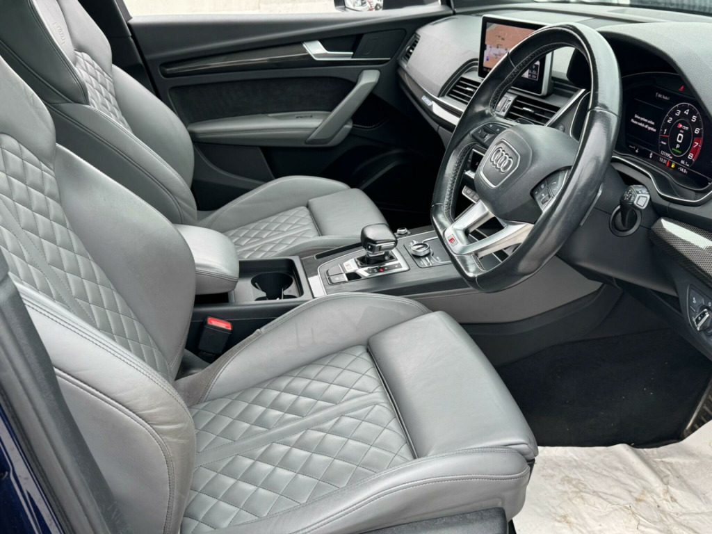 This 2018 Audi SQ5 TFSI V6 boasts a full service history, ensuring its excellent provenance. This impressive SUV is equipped with a powerful 3.0 litre petrol engine and Four Wheel Drive, making it a capable performer. It meets Euro 6 emission standards and offers a substantial towing weight of 2400 kg. For your peace of mind, a 12 month MOT will be provided upon purchase. Inside, you'll find Deluxe 3-Zone Climate Control for all occupants, along with heated front seats for added comfort. The striking LED headlights with their signature Q design, complemented by LED rear lights and dynamic rear indicators, enhance visibility and the vehicle's distinctive look. Connectivity is made easy with the Bluetooth interface, and parking is simplified thanks to the Audi Parking System Plus, which includes front and rear sensors.The Audi SQ5 stands out with its remarkable acceleration, reaching 0-62mph in just 5.4 seconds, demonstrating its dynamic capabilities. This performance, combined with its large boot space, indicates how this vehicle offers a superior driving and practical experience compared to similar models. Furthermore, its placement in a low insurance group makes it an economical choice for many drivers.. 2 x SDXC Card Readers, 2 x USB Charging Ports and 1 x AUX-IN, 20in Alloy Wheels - 5-Twin-Spoke Star Design Contrasting Grey - Diamond Cut, 4-Way Electric Lumbar Support, 6-Airbag System, Aluminium Roof Rails, Aluminium-Effect Door Mirror Housings, Anti Theft Locking Wheel Bolts, Anti-Theft Alarm, Audi Beam, Audi Connect Infotainment Services - 3 Month Trial, Audi Connect Safety and Service - e-call, Audi Drive Select, Audi Parking System Plus, Audi Pre-Sense City, Audi Smartphone Interface, Audi Sound System, Auto-Dimming Rear-View Mirror, Automatic Headlight Adjustment, Bluetooth Interface, Brake Calipers Painted in Black with SQ5 Logo at the Front, CD Drive, Cloth Headlining in Black, Colour Drivers Information System with 7in Display, Contrast Stitching on Seats - Steering Wheel and Gear Lever Gaiter, Cruise Control with Speed Limiter, DAB Digital Radio, Deluxe 3-Zone Climate Control, Door Inserts in Matt Selenite Silver, Door Mirrors - Electrically Adjustable and Heated with Integrated LED Side Indicators, ESC - Electronic Stabilisation Control inc ABS - ASR and EDL, Electric Windows - Front and Rear, Electrically Adjustable Front Seats, Electromechanical Parking Brake, Electromechanical Power Steering, Extended Interior Upholstery Pack, First Aid Kit and Warning Triangle, Front Centre Armrest, Front and Rear Floor Mats, Gear Lever with Diamond S Badge in Black Perforated Leather, Headlights - High-Beam Assist, Heated Front Seats, High Multi-function 3-Spoke Leather Steering Wheel with S Badging and Aluminium Effect Paddles, High-Gloss Package, ISOFIX Child Seat Mounting and Top Tether, Illuminated Door Sill Trims with S Logo, Inlays - Matt Brushed Aluminium, Key with SQ5 Logo, Keyless Go, LED Headlights featuring Q Signature Design with LED Rear Lights and Dynamic Rear Indicators, LED Interior Lighting Pack, LED Rear Lights, Light and Rain Sensor, Luggage Compartment Cover, Luggage Compartment Mat, MMI Navigation Plus including MMI Touch, MMI Radio Plus with 7in Colour MMI Screen and MMI Controller, Non-Smoking Package, Pedals in Stainless Steel, Pop-Up Bonnet for Pedestrian Protection, Power Operated Tailgate, Privacy Glass with Acoustic Glazing For Front Windows, Radiator Grille in Matt Twilight Grey with Horizontal Matt Aluminium Struts, Rear Bench Seat Plus, Rear Spoiler, Remote Central Locking, Removable Luggage Compartment Floor, Removable Net Partition, S Dual-Branch Tailpipe Design in Matt Aluminium, S Instrument Dials, S Line Badges on the Front Wing Panels, S Line Front and Rear Bumpers, S Line Side Skirts, S Lower Front Air Inlet, S Rear Diffuser in Body Colour with Matt Aluminium Surrounds with Honeycomb Grille in Black, S Side Air Inlet Grille in Matt Titanium Black with Horizontal Inlays in Matt Aluminium, S Suspension with Damping Control, Seat Belt Monitoring, Side and Rear Windows in Heat-Insulating Glass, Split Folding Rear Seat Bench, Stainless Steel Loading Sill Protector, Tool Kit and Car Jack, Towbar Preparation, Tyre Pressure Warning Light, Tyre Repair Kit, Underbody Protection in Matt Selenite Silver, Voice Control System, Windscreen with Acoustic Glass, quattro On Demand. Full service history