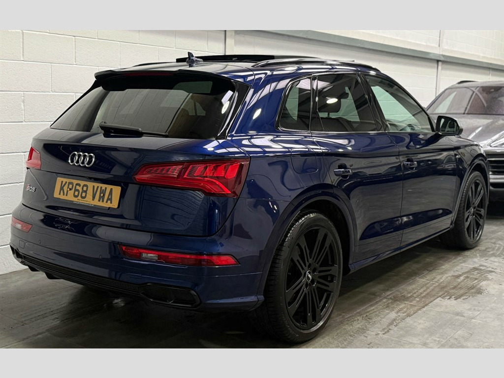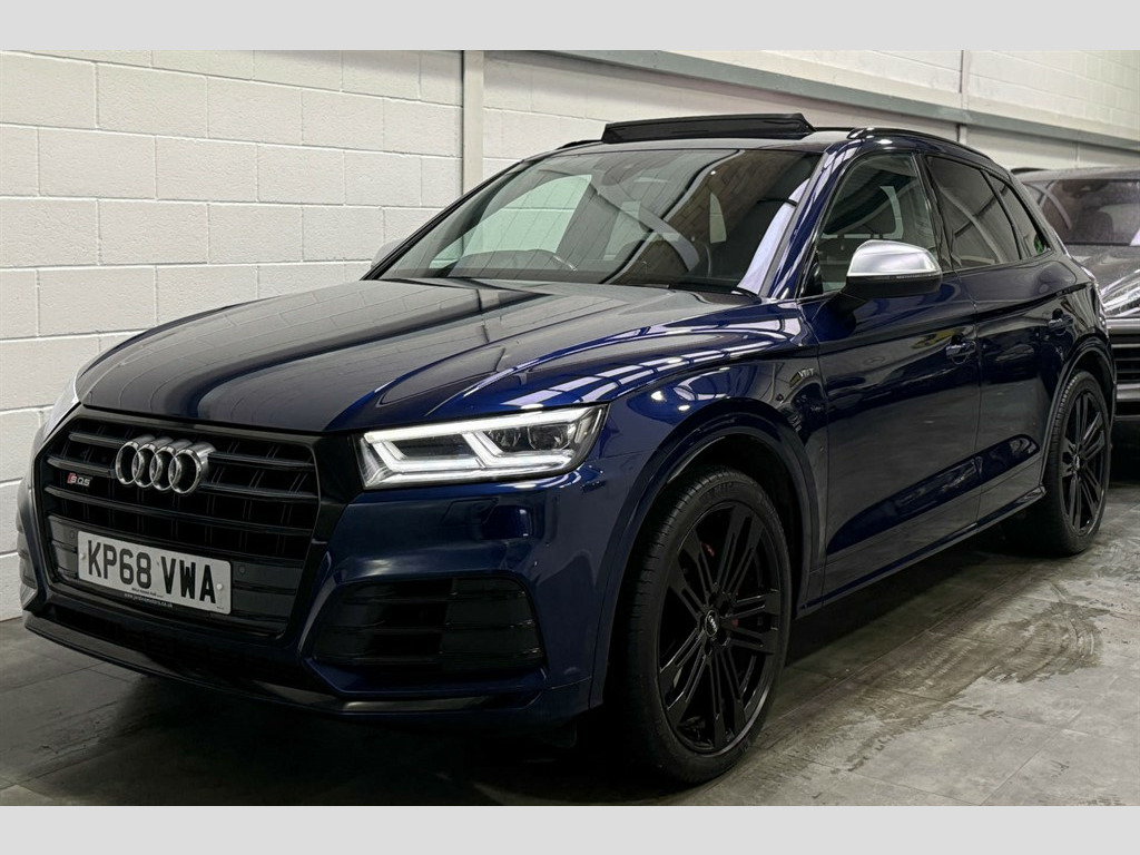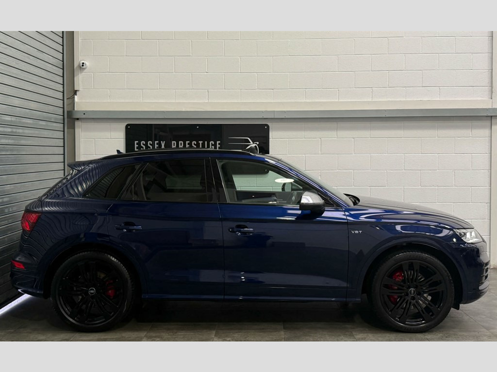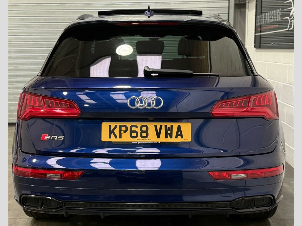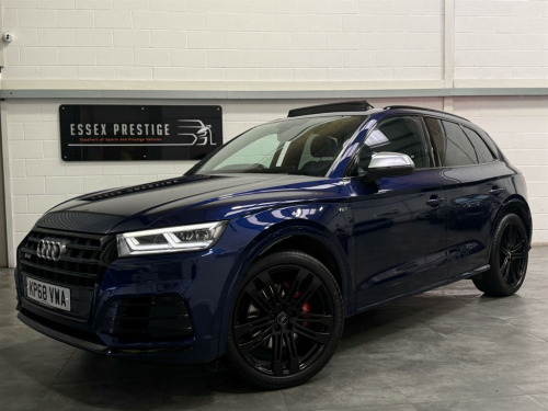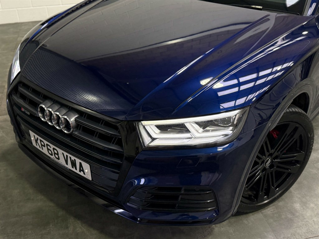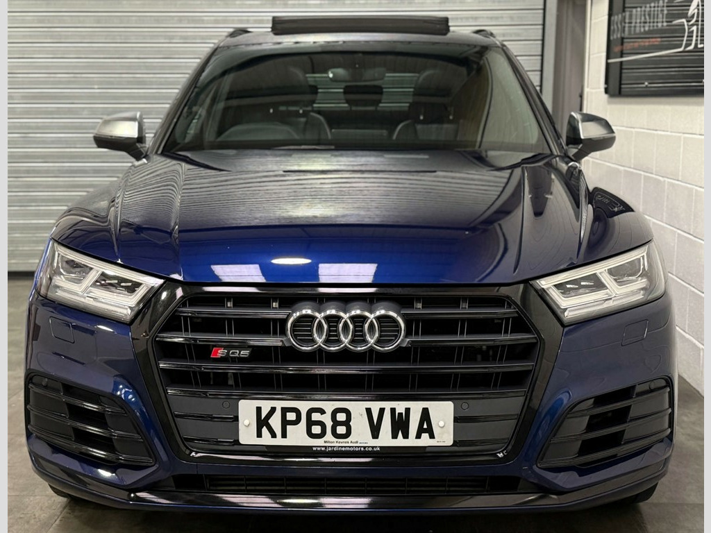 Full Service History, Sat Nav, Bang & Olufsen Sound System, Pan Roof, Ambient Lighting, Black Pack, 2 x SDXC Card Readers,2 x USB Charging Ports and 1 x AUX-IN,4-Way Electric Lumbar Support,6-Airbag System,Aluminium Roof Rails,Aluminium-Effect Door Mirror Housings,Anti Theft Locking Wheel Bolts,Anti-Theft Alarm,Audi Beam,Audi Connect Infotainment Services - 3 Month Trial,Audi Connect Safety and Service - e-call,Audi Drive Select,Audi Parking System Plus,Audi Pre-Sense City,Audi Smartphone Interface,Audi Sound System,Auto-Dimming Rear-View Mirror,Automatic Headlight Adjustment,Bluetooth Interface,Brake Calipers Painted in Black with SQ5 Logo at the Front,CD Drive,Cloth Headlining in Black,Colour Drivers Information System with 7in Display,Contrast Stitching on Seats - Steering Wheel and Gear Lever Gaiter,Cruise Control with Speed Limiter,DAB Digital Radio,Deluxe 3-Zone Climate Control,Door Mirrors - Electrically Adjustable and Heated with Integrated LED Side Indicators,Dynamic Suspension,ESC - Electronic Stabilisation Control inc ABS - ASR and EDL,Electric Boot Lid Release,Electric Windows - Front and Rear,Electrically Adjustable Front Seats,Electromechanical Parking Brake,Electromechanical Power Steering,Email - Calendar and Text Messages can be Displayed on your Vehicles MMI,Extended Interior Upholstery Pack,First Aid Kit and Warning Triangle,Front Centre Armrest,Front Sports Seats with S Embossed Logo,Front and Rear Floor Mats,Gear-lever with Diamond S Badge in Black Leather,Headlights - High-Beam Assist,Heated Front Seats,High Multi-function 3-Spoke Leather Steering Wheel with S Badging and Aluminium Effect Paddles,High-Gloss Package,Hill Descent Control,Hill Hold Assist,ISOFIX Child Seat Mounting and Top Tether,Illuminated Door Sill Trims with S Logo,Inlays - Matt Brushed Aluminium,Key with SQ5 Logo,Keyless Go,LED Headlights with LED Rear Lights and Dynamic Rear Indicators,LED Interior Lighting Pack,LED Rear Lights,Light and Rain Sensor,MMI Navigation Plus including MMI Touch,Pedals in Stainless Steel,Pop-Up Bonnet for Pedestrian Protection,Power Operated Tailgate,Privacy Glass with Acoustic Glazing For Front Windows,Quattro with Self-Locking Centre Differential,Rear Bench Seat Plus,Rear Spoiler,Remote Central Locking,Removable Luggage Compartment Floor,Removable Net Partition,S Dual-Branch Tailpipe Design in Matt Aluminium,S Instrument Dials,S Line Front and Rear Bumpers,S Line Side Skirts,S Lower Front Air Inlet,S Radiator Grille in Matt Twilight Grey with Horizontal Matt Aluminium Struts,S Rear Diffuser in Body Colour with Matt Aluminium Surrounds with Honeycomb Grille in Black,S Side Air Inlet Grille in Matt Titanium Black with Horizontal Inlays in Matt Aluminium,S Suspension - Damper Control,Seat Belt Monitoring,Side and Rear Windows in Heat-Insulating Glass,Split Folding Rear Seat Bench - 40-20-40 with Rear Seat Armrest,Stainless Steel Loading Sill Protector,Tool Kit and Car Jack,Tow Bar Preparation,Tyre Pressure Warning Light,Tyre Repair Kit,Underbody Protection in Body Colour,Voice Control System,Windscreen with Acoustic Glass,quattro On Demand,Panoramic Glass Sunroof,Audi Virtual Cockpit,Comfort and Sound Package,Flat-Bottomed 3-Spoke Leather High Multi-Function Steering Wheel,20" Black Alloy Wheels,Brake Calipers - Red,Audi Phone Box with Wireless Charging