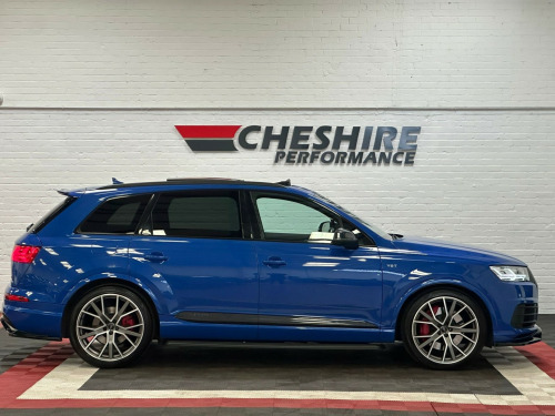 2017 67 AUDI SQ7 4.0 TDI V8 5DR. , This Vehicle Comes With Warranty As Standard, Please Call Us For More Details!, , Stunning Example Presented In Special Order Audi Nogaro Blue Paintwork With Contrasting Black Leather Seats Complete With 22 Inch Grey Alloy Wheels With A Diamond Cut Finish. , Covering 68,000 Miles From New, Backed Up With Full Service History Which Has Been Carried Out By A Mix Of Main Dealer And Independent Garages With Paperwork To Hand. Very Clean Throughout With Excellent Bodywork, Unmarked Interior And Outstanding Wheels, New Owner Wont Be Disappointed. This Vehicle Comes With Two Keys. , Its 4.0 Litre Turbo Diesel Engine Produces 429Bhp 900Nm Of Torque. This Is Matched With Its 8 Speed Automatic Gearbox With The Option Of Changing Gear With F1 Style Paddle Shifters Which Makes For A Superb Drive!, , Outstanding Spec Includes. *Audi Nogaro Blue Paintwork. *Drive Select With Air Suspension. (Lift/Off Road, All Road, Efficiency, Comfort, Auto, Dynamic, Individual), *Switchable Exhaust Notes Controlled From Drive Select. *22 Inch Gloss Black Y Spoke Alloy Wheels With A Diamond Finish. *Electronic Tilt And Slide Panoramic Sunroof. *Electronic Retractable Roof Blind. *Multi Function Steering Wheel. *Virtual Dash. *Cruise Control. *Advanced Key. (Keyless Entry/Keyless Start), *Heads Up Display. *Electronic Folding Wing Mirrors. *Heated Wing Mirrors. *Maxton Low Line Kit. *Lane Assist. *Driver Assist. *Audi Tech Pack. *Audi Black Pack. *Audi Sound Pack. *Audi Comfort Pack. *Audi Side Steps. *Audi Parking Pack Advance. (360 Camera), *Automatic Xenon LED Matrix Headlights. *Automatic Windscreen Wipers. *Bose Upgraded Sound System. *Audi Multi Media Interface. *Apple Car Play. *Wireless Charging. *Audi Jukebox. *CD/DVD Player. *Satellite Navigation. *Bluetooth Connectivity. *Electric Power Tailgate. *Rear Sun Protection Blinds. *Electric Parking Brake. *Auto Hold. *Hill Descent Assist. *Ambient Interior Lighting. *Split Folding Rear Seats. , Excellent Standard Spec Includes, Electric Adjustable Seats, Height Adjustable Steering Wheel, Electric Adjustable Wing Mirrors, Child Lock, Trip Computer, 12V, Arm Rest, Traction Control, Central Locking, Isofix And Much More, , All Our Vehicles Have Been Road Tested With Multi Point Checks And We Welcome RAC Or AA Inspections, For Your Added Peace Of Mind All Of Our Vehicles Are HPI Clear. , We Can Provide A Decision Within 30 Minutes Please Call Us To Discuss Your Requirements, Our Finance Partners Include Close Brothers | CF247 | Motonovo | Evolution And Others. , We Offer Full Dealer Facilities Including A Comfortable Customer Office An Indoor Viewing Area And We Accept All Methods Of Payment, We Are Open 7 Days A Week Please Call Ahead To Ensure The Vehicle Of Interest Is Still Available, Sales 0161 336 2007 Or General Enquiries 0161 335 0008. , Every effort has been made to ensure the vehicle has been described accurately in accordance with its age and mileage, The data above details the usual specification of the most recent model of this vehicle and may vary for the actual vehicle for sale. , Please always check the vehicle specification prior to purchase. If You Have Any Questions Please Get In Touch And We Will Be Happy To Help. , All Our Vehicles Come With Warranty Included, Extended Warranty Options Available, We Offer Finance With Competitive HP And PCP Deals Available, Visit Our Website To Use Our Online Calculator And Apply Online Today!