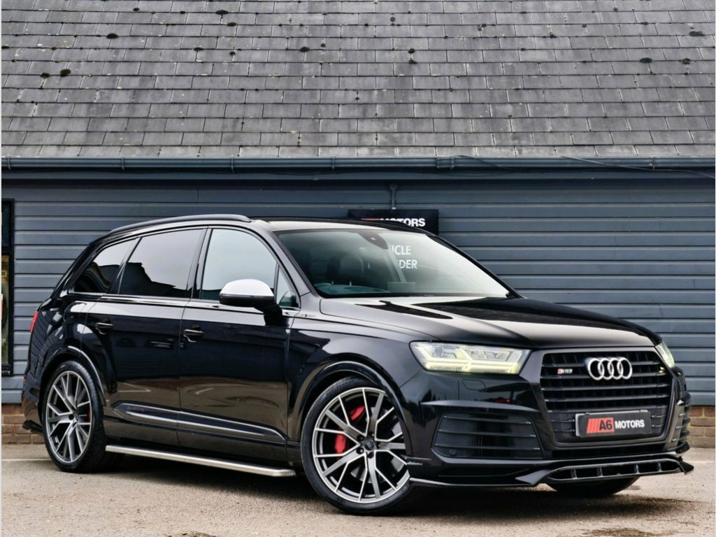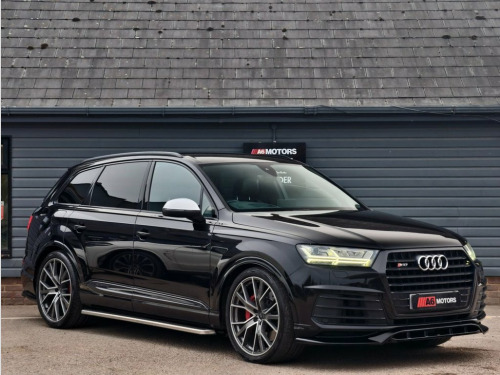 SAME DAY FINANCE AVAILABLE WITH £0 DEPOSIT. CALL OUR FINANCE TEAM FOR A QUOTATION TODAY. REQUEST A PERSONALISED VIDEO TODAY. STUNNING AUDI SQ7 WITH JUST 2 OWNERS FROM NEW BOASTING A FULL AUDI SERVICE HISTORY & COMPLIMENTED BY A GOOD FACTORY SPEC FURTHER BENEFITING FROM HAVING A MAXTON DESIGN BODYKIT FITTED. THIS LOVELY EXAMPLE IS SUPPLIED HPI CLEAR & WITH A NATIONWIDE WARRANTY. GOOD CONDITION THROUGH OUT. DRIVES WELL. Valcona Leather - S Sport Seats Plus - B, Audi Warranty - Extended to 60 Months or, Dynamic Pack, Comfort and Sound Package, Audi Exclusive Valcona Leather Upholster, 21in Alloy Wheels - 5-Twin-Spoke Design , 21in Alloy Wheels - 5-Arm-Turbine Design, Door Mirrors - Folding with Auto-Dimming, Technology Package, Orca Black, BOSE 3D Sound System, Extended LED Interior Lighting Package -, Leather Package, Full Leather Package, Red Painted Brake Calipers with S Logo, Titanium Black Styling Pack with Black R, 22in Alloy Wheels - 5-V-Spoke Aluminium , 20in Alloy Wheels - 5-Arm Off Road Desig, 6-Airbag System, 7 Seats, Active Sound Exhaust System, Adaptive S Air Suspension, Aluminium Roof Rails, Al