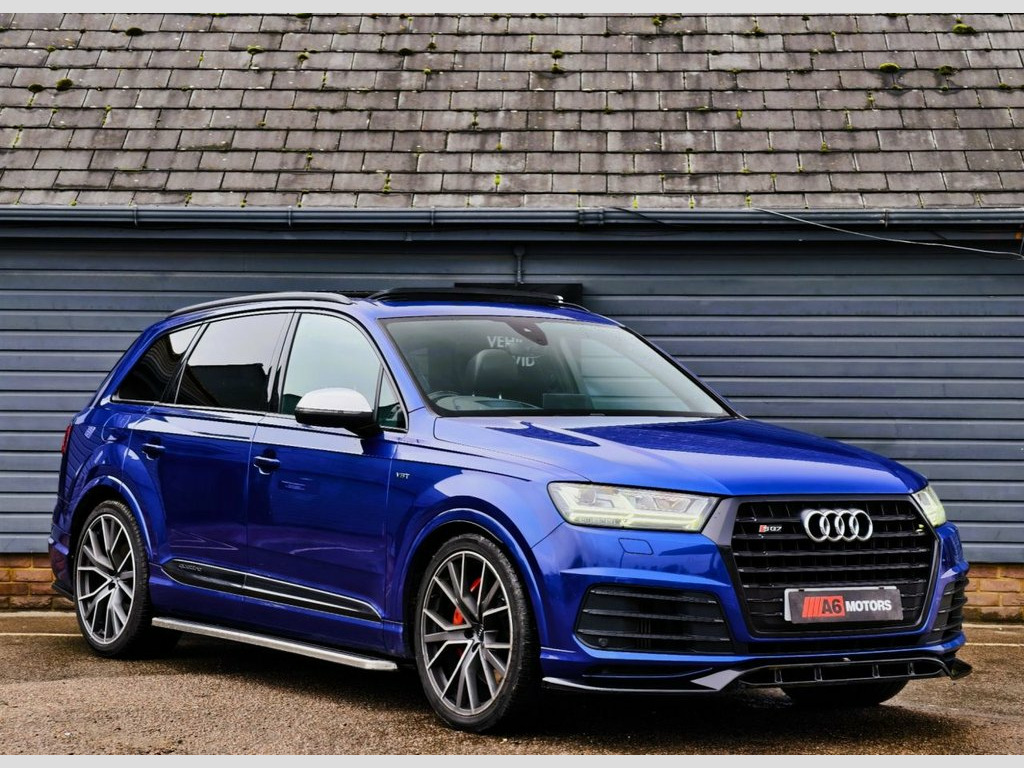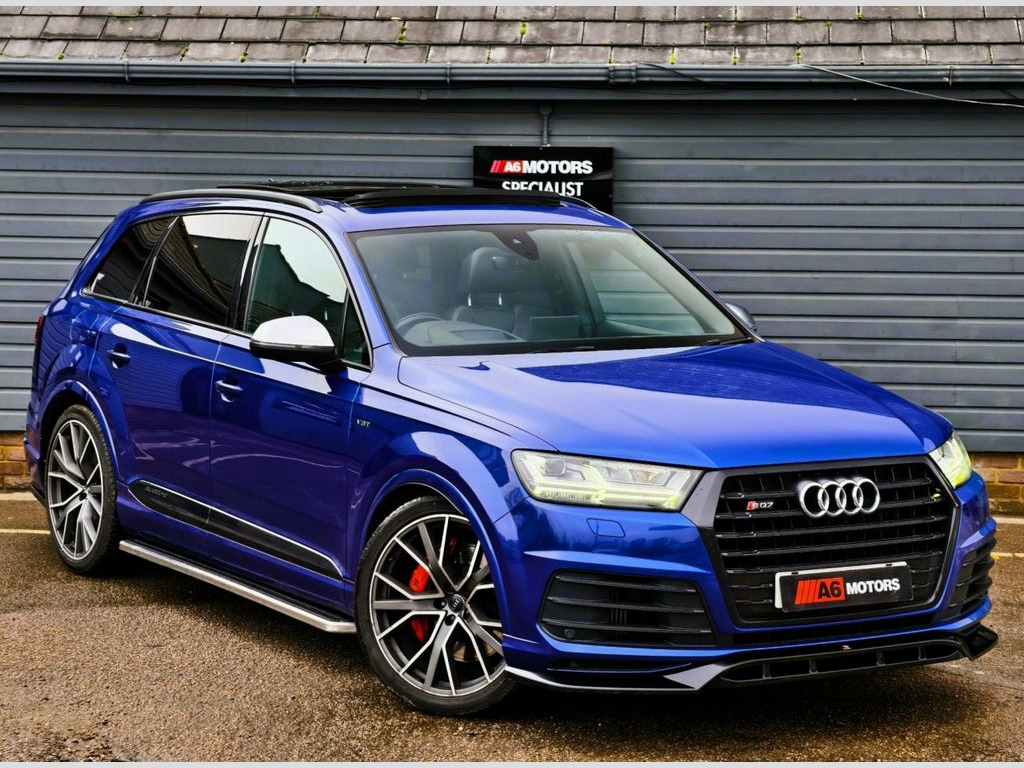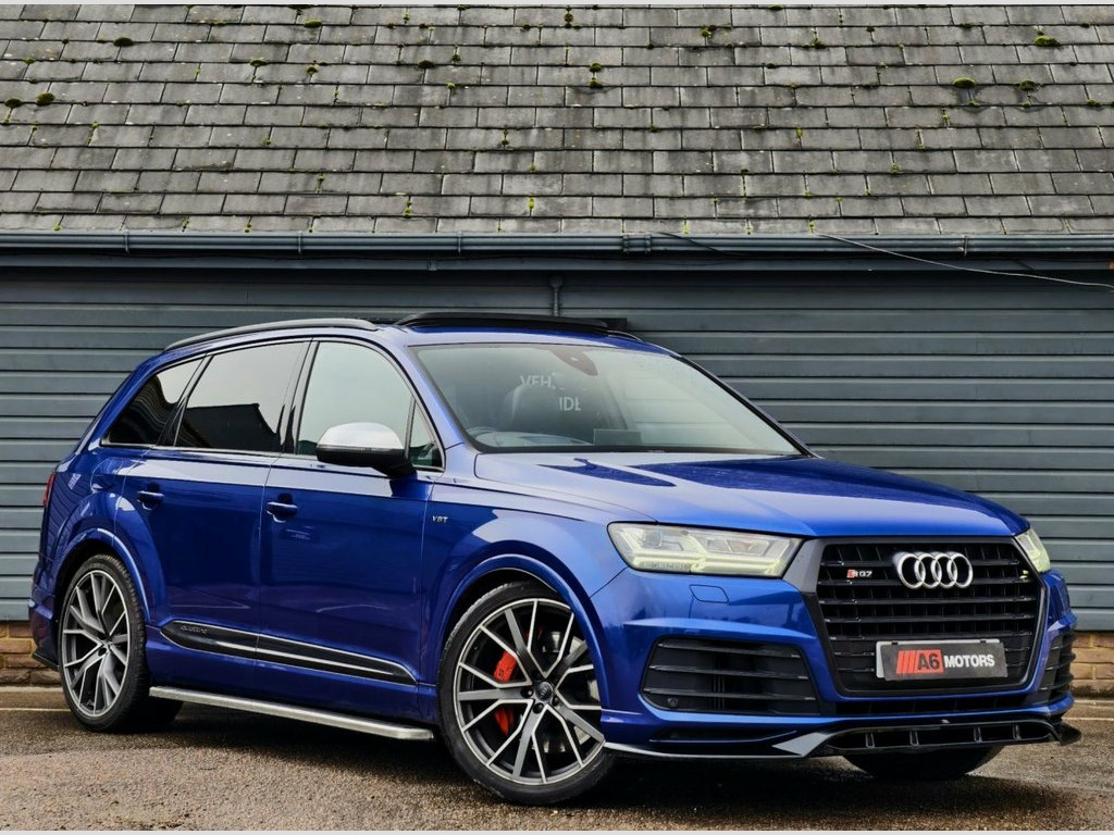 SAME DAY FINANCE AVAILABLE WITH £0 DEPOSIT. CALL OUR FINANCE TEAM FOR A QUOTATION TODAY. REQUEST A PERSONALISED VIDEO TODAY. STUNNING SEPANG BLUE AUDI SQ7 WITH JUST 2 OWNERS FROM BRAND NEW BOASTING A FULL SERVICE HISTORY & COMPLIMENTED BY A BIG FACTORY SPEC FURTHER BENEFITING FROM HAVING A MAXTON DESIGN BODYKIT. THIS LOVELY EXAMPLE IS SUPPLIED HPI CLEAR & WITH A NATIONWIDE WARRANTY. GOOD CONDITION THROUGH OUT. DRIVES WELL. SPECIFICATION INCLUDES PANORAMIC GLASS SUNROOF, RUNNING SIDE BOARDS, BLACK PACK, BLACK ROOF RAILS, FULL LEATHER INTERIOR WITH FRONT HEATED SEATS, FRONT ELECTRIC & MEMORY SEATS WIT LUMBAR SUPPORT, BOSE SOUND SYSTEM, HEATED ELECTRIC & POWER FOLDING WING MIRRORS, VIRTUAL COCKPIT, MULTI FUNCTION STEERING WHEEL, CRUISE CONTROL, AUTO LIGHTS, DUAL ZONE CLIMATE CONTROL, REVERSING CAMERA, SAT NAV, DAB, BLUETOOTH, ADAPTIVE AIR SUSPENSION, AMBIEBNT LIGHTING PACK, HEADS UP DISPLAY & MORE. Technology Package, BOSE 3D Sound System, Sepang Blue, Driver and Front Passenger Memory Functi, Drivers Side Memory Function for the Ele, Leather Package, Ambient Lighting, Extended Leather Package, Door Mirrors - Heated-Electrically Adjus, Red Painted Brake Calipers with S Logo, Panoramic Glass Sunroof, Black Styling Package, 22in Alloy Wheels - 5-V-Spoke Aluminium , 20in Alloy Wheels - 5-Arm Off Road Desig, 7 Seats, AMI - Audi Music Interface, Active Sound Exhaust System, Adaptive S Air Suspension, Airbags - Front Side with Curtain, All Weather LED Headlights, Aluminium Roof Rails, Aluminium Scuff Plates with SQ7 Logo, Anti Theft Locking Wheel Bolts, Anti-Theft Alarm, Audi Connect - 3 Mon