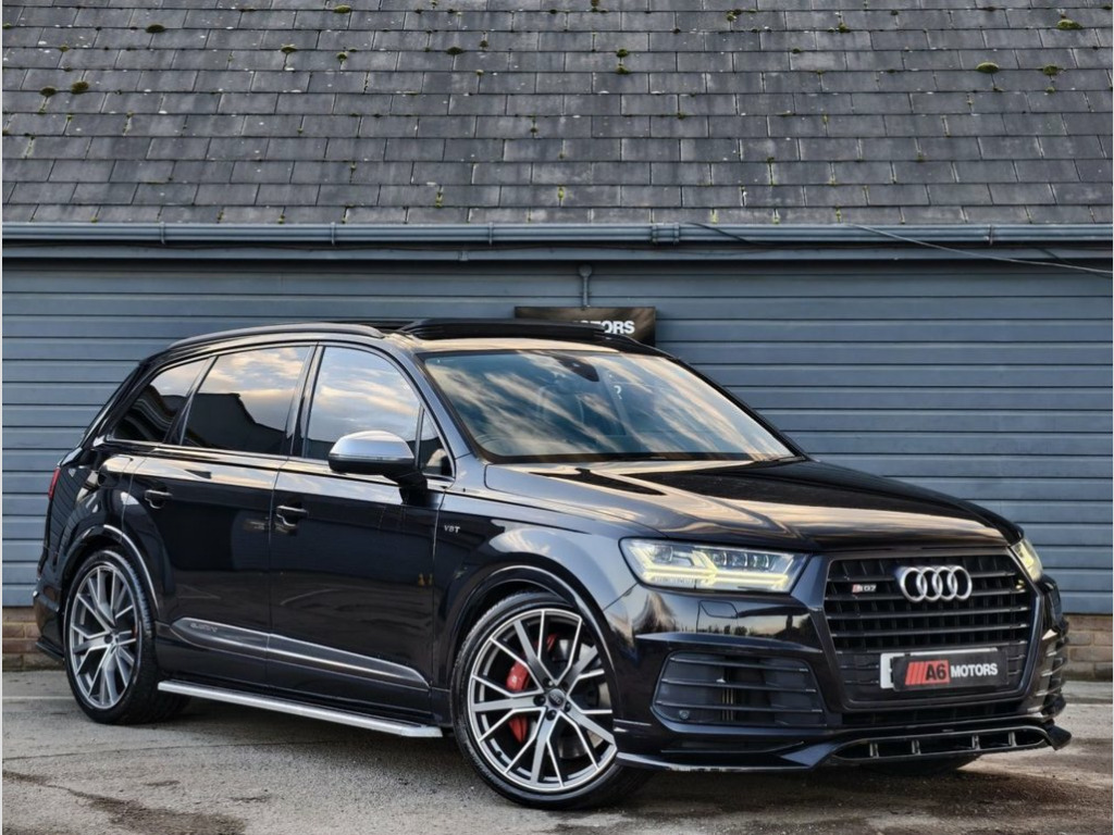 SAME DAY FINANCE AVAILABLE WITH £0 DEPOSIT. CALL OUR FINANCE TEAM FOR A QUOTATION TODAY. REQUEST A PERSONALISED VIDEO TODAY. STUNNING AUDI SQ7 BOASTING A FULL SERVICE HISTORY & COMPLIMENTED BY A HUGE FACTORY SPEC FURTHER BENEFITING FROM HAVING A MAXTON DESIGN BODYKIT FITTED. THIS LOVELY EXAMPLE IS SUPPLIED HPI CLEAR & WITH A NATIONWIDE WARRANTY. GOOD CONDITION THROUGH OUT. DRIVES WELL. Audi Warranty - Extended to 60 Months or, Valcona Leather - S Sport Seats Plus - B, Technology Package, BOSE 3D Sound System, Orca Black, Dynamic Pack, Inlays - Carbon Atlas Sono, Extended LED Interior Lighting Package -, Comfort and Sound Package, Electrically Adjustable Steering Column, Steering Wheel - 3-Spoke Leather-Multi-f, Leather Package, Full Leather Package, Titanium Black Styling Pack with Black R, Red Painted Brake Calipers with S Logo, Panoramic Glass Sunroof, Door Mirrors - Folding with Auto-Dimming, 22in Alloy Wheels - 5-V-Spoke Aluminium , 20in Alloy Wheels - 5-Arm Off Road Desig, 6-Airbag System, 7 Seats, Active Sound Exhaust System, Adaptive S Air Suspension, Aluminium Roof