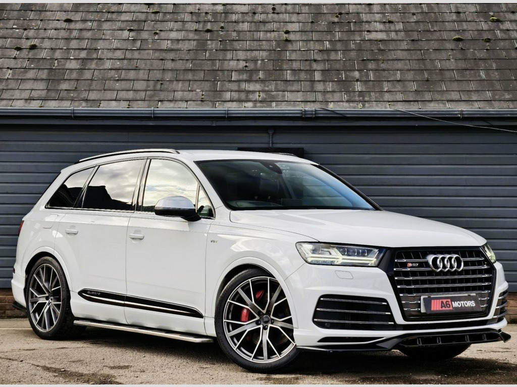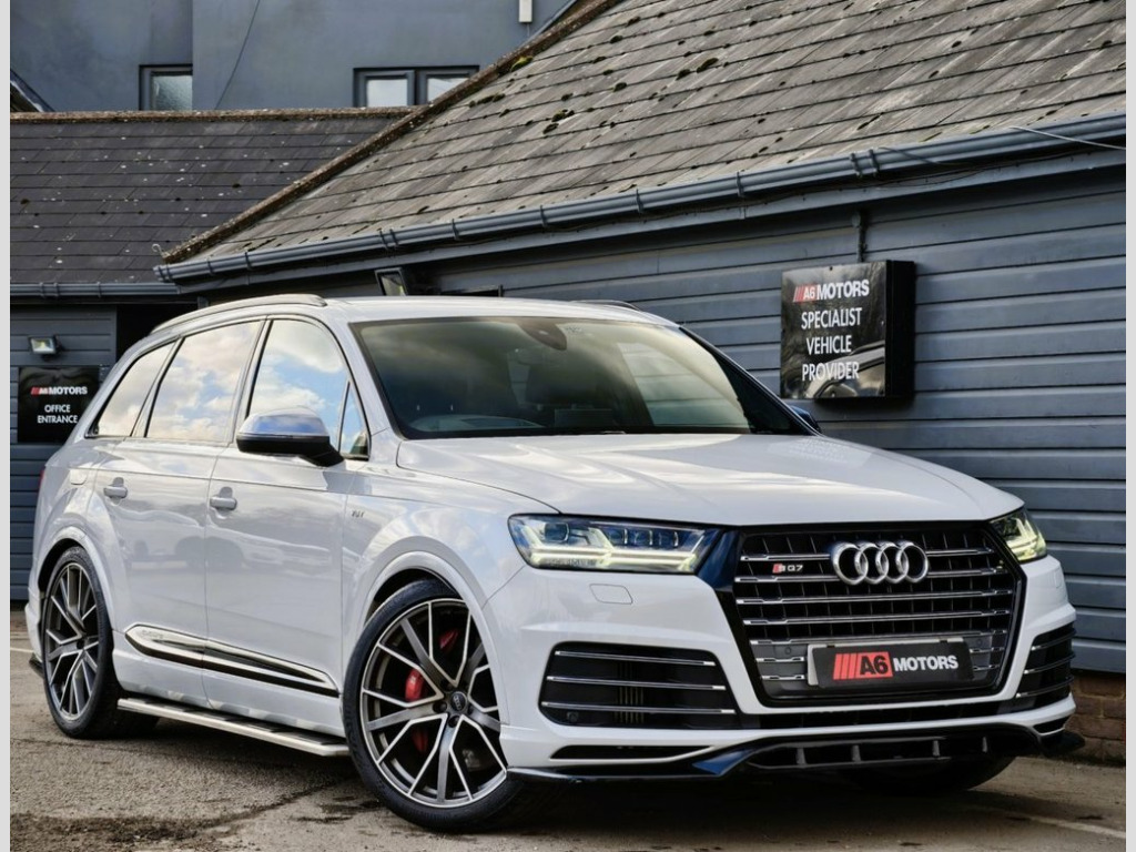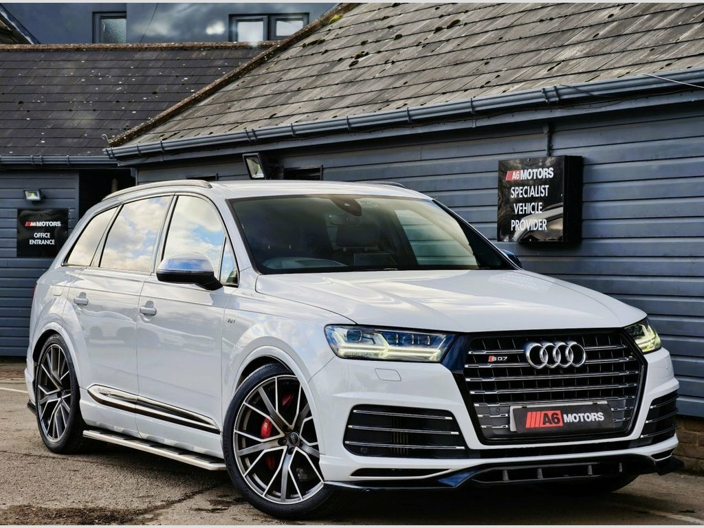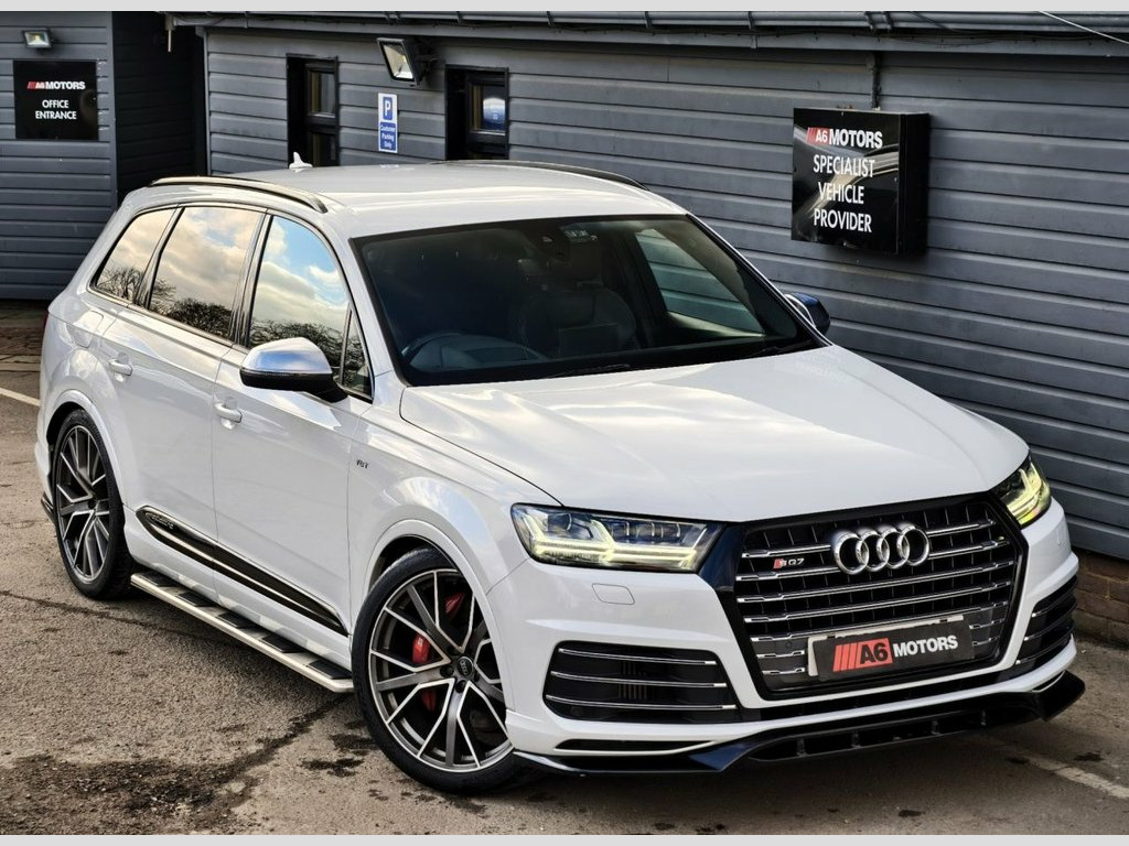 SAME DAY FINANCE AVAILABLE WITH £0 DEPOSIT. CALL OUR FINANCE TEAM FOR A QUOTATION TODAY. REQUEST A PERSONALISED VIDEO TODAY. STUNNING AUDI SQ7 BOASTING A FULL SERVICE HISTORY THAT INCLUDES A TOTAL OF 8 SERVICES BOASTING A HUGE FACTORY SPEC & COMPLIMENTED BY A MAXTON DESIGN BODYKIT FITTED. THIS LOVELY EXAMPLE IS SUPPLIED HPI CLEAR & WITH A NATIONWIDE WARRANTY. GOOD CONDITION THROUGH OUT. DRIVES LIKE NEW. FANTASTIC EXAMPLE THAT HAS BEEN WELL CARED FOR. Valcona Leather - S Sport Seats Plus - B, Matrix LED Headlights with LED Rear Ligh, BOSE 3D Sound System, Dynamic Pack, Technology Package, Glacier White, Heated Outer Rear Seats for the Second R, Driver and Front Passenger Memory Functi, Leather Package, Full Leather Package, Door Mirrors - Folding with Auto-Dimming, Red Painted Brake Calipers with S Logo, Titanium Black Styling Pack with Black R, 22in Alloy Wheels - 5-V-Spoke Aluminium , 20in Alloy Wheels - 5-Arm Off Road Desig, 6-Airbag System, 7 Seats, Active Sound Exhaust System, Adaptive S Air Suspension, Aluminium Roof Rails, Aluminium Window Trims, Aluminium-Effect Door Mirror Housings, Anti Theft Locking Wheel Bolts, Anti-Theft Alar
