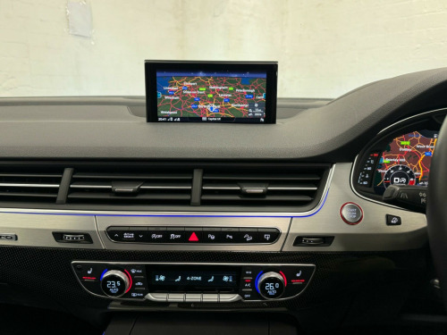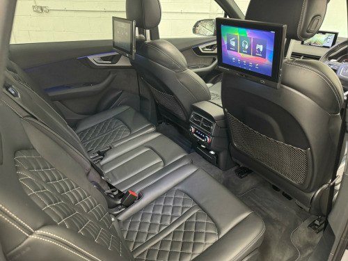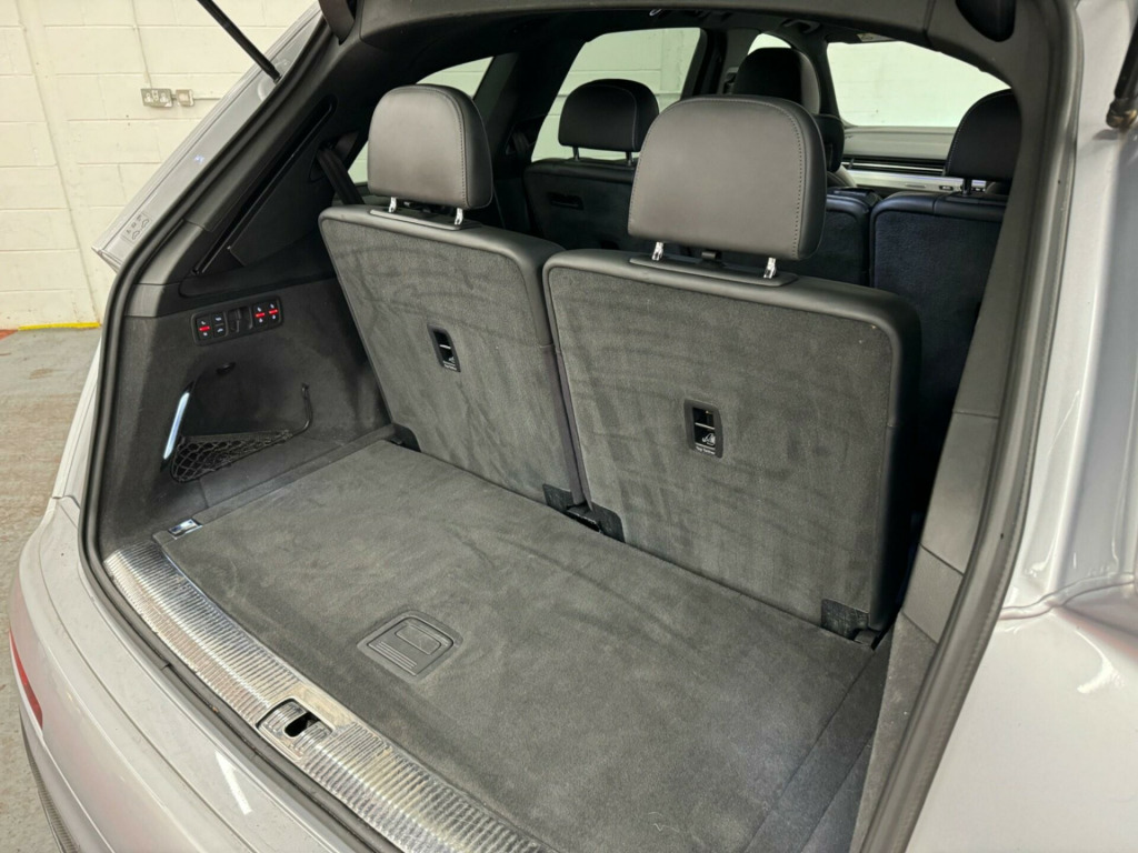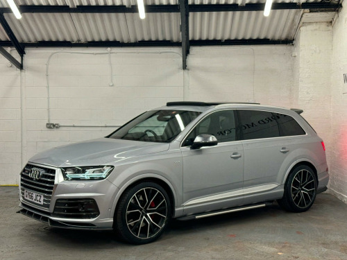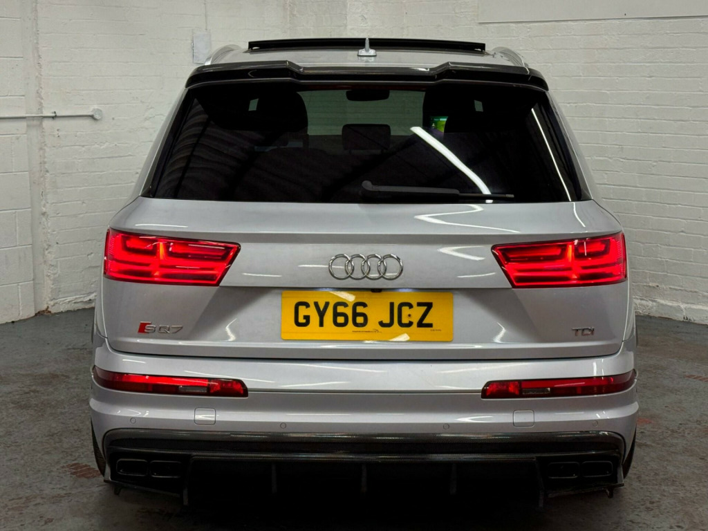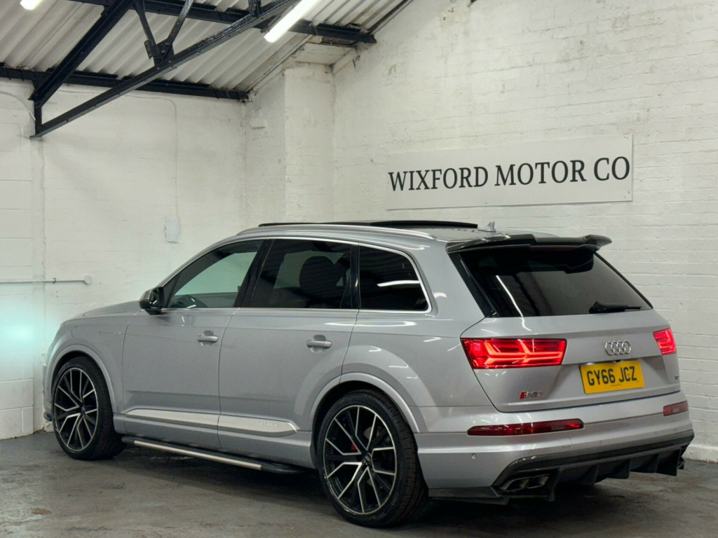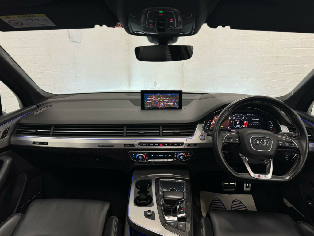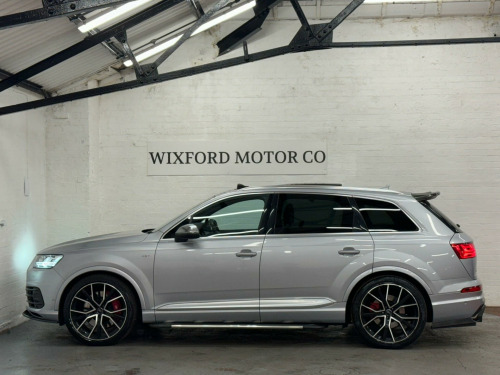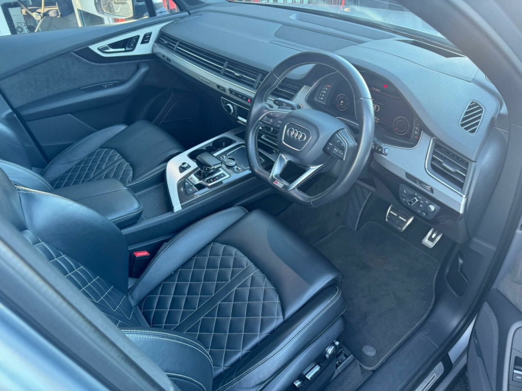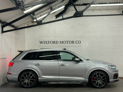 We believe this is one of, if not, the highest specification Audi SQ7 on the road today. Finished in metallic ice silver, excellent condition inside out, full service history all carried by Audi dealership and specialists, two previous owners, supplied with two keys. Specification includes; full super sport leather seats, adaptive cruise control, heads up display, panoramic glass sunroof, rear wheel steering, sports differential, lane assist, blind spot, carbon interior, ambient lighting, 22'' alloy wheels, full body styling, side steps, rear entertainment, bose surround sound system, 360 cameras, electric towbar, air suspension, apple car play di entertainment mobile, audi phone box, bose 3d sound system, head-up display, technology package, tv reception - digital, advanced key, audi matrix led headlights, city pack, parking assistance pack, tour pack, audi side assist including pre-sense rear and exit warning, 22in alloy wheels - 5-v-spoke aluminium star design - titanium diamond cut, black roof rails, door mirrors - heated-electrically adjustable-auto-dimming with memory function, heat and sound insulating glass, panoramic glass sunroof, trailer pack, dynamic pack, all-wheel steering, valcona leather - sports seats plus - black, ambient lighting, full leather package, inlays - carbon atlas sono, red painted brake calipers with s logo, 20in alloy wheels - 5-arm off road design - matt titanium look gloss turned, 7 seats, ami - audi music interface, adaptive s air suspension, all weather led headlights, aluminium roof rails, aluminium scuff plates with sq7 logo, anti-theft alarm, audi connect - 3 month trial, audi connect infotainment embedded sim, audi drive select, audi parking system plus, audi pre-sense city, audi smartphone interface, audi sound system, audi virtual cockpit, auto-dimming rear-view mirror, bluetooth interface, chrome package, cloth headlining in black, cruise control with speed limiter, dab digital radio reception, deluxe four-zone automatic climate control, door mirrors - heated-electrically adjustable-folding, driver information system with colour display, dynamic rear indicators, esc - electronic stabilisation control inc abs - ebd - asr - edl, electrically adjustable front seats, electromechanical parking brake, first aid kit and warning triangle, full body-colour paint finish, gloss package, headlight washer system, heated front seats, high-beam assist, interior light package, keyless go, light and rain sensor, mmi navigation plus including mmi touch, power operated tailgate, privacy glass, rear view camera, s body styling, seat belt monitoring, stainless steel loading sill protector, steel pedal cluster, tyre pressure loss indicator, upper inlays in brushed aluminium-sono and lower inlays in chrome paint finish-slate grey, voice control system