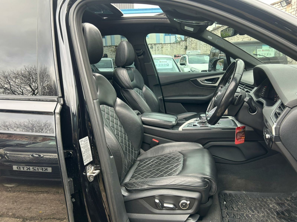 This 2017 Audi SQ7 TDI V8 offers exceptional performance with its powerful 4.0L Diesel Engine and Four Wheel Drive system, ensuring a confident drive in all conditions. With seating for seven, this Euro 6 compliant model is as practical as it is potent. It boasts a generous towing weight of 3500 kg, making it ideal for larger loads. Notable features include a Bluetooth interface for seamless connectivity, a rear view camera for enhanced parking assistance, and automatic headlights activated by the light and rain sensor. Comfort is further assured with deluxe four-zone automatic climate control and heated front seats.Experience exhilarating acceleration, reaching 0-62mph in just 4.9 seconds, a testament to the SQ7's dynamic capabilities. This impressive speed, combined with its advanced features and robust engine, positions the Audi SQ7 TDI V8 as a superior choice within its class, offering a blend of power, luxury, and versatility for discerning drivers. in alloy wheels - 5-arm off road design - matt titanium look gloss turned, 7 seats, ami - audi music interface, active sound exhaust system, adaptive s air suspension, airbags - front side with curtain, all weather led headlights, aluminium roof rails, aluminium scuff plates with sq7 logo, anti theft locking wheel bolts, anti-theft alarm, audi connect - 3 month trial, audi connect infotainment embedded sim, audi connect safety and service - e-call, audi drive select, audi hill hold assist, audi parking system plus, audi pre-sense city, audi smartphone interface, audi sound system, audi virtual cockpit, auto-dimming rear-view mirror, bluetooth interface, brake calipers - black with s logo, child locks, chrome package, cloth headlining in black, comfort front centre armrest, cruise control with speed limiter, dab digital radio reception, deluxe four-zone automatic climate control, door mirrors - heated-electrically adjustable-folding, driver information system with colour display, driver and front passenger airbag with front passenger airbag deactivation, dynamic rear indicators, esc - electronic stabilisation control inc abs - ebd - asr - edl, electric windows - front and rear, electrically adjustable 4-way lumbar support, electrically adjustable front seats, electromechanical parking brake, electromechanical power steering, exterior mirror housings in aluminium look, first aid kit and warning triangle, front and rear floor mats, full body-colour paint finish, gloss package, headlight washer system, heat insulating glass - windscreen, heated front seats, high-beam assist, hill descent control, isofix child seat mounting, interior light package, keyless go, led rear lights, light and rain sensor, luggage compartment - cover electric, mmi navigation plus including mmi touch, mmi radio plus, power operated tailgate, power steering - servotronic, privacy glass, rear view camera, remote central locking, s body styling, seat belt monitoring, stainless steel loading sill protector, steel pedal cluster, steering wheel - 3-spoke leather - multi-function - sports, steering wheel - height and reach adjustable, tool kit, two cup-holders in centre console, tyre pressure loss indicator, tyre repair kit, upper inlays in brushed aluminium-sono and lower inlays in chrome paint finish-slate grey, voice control system