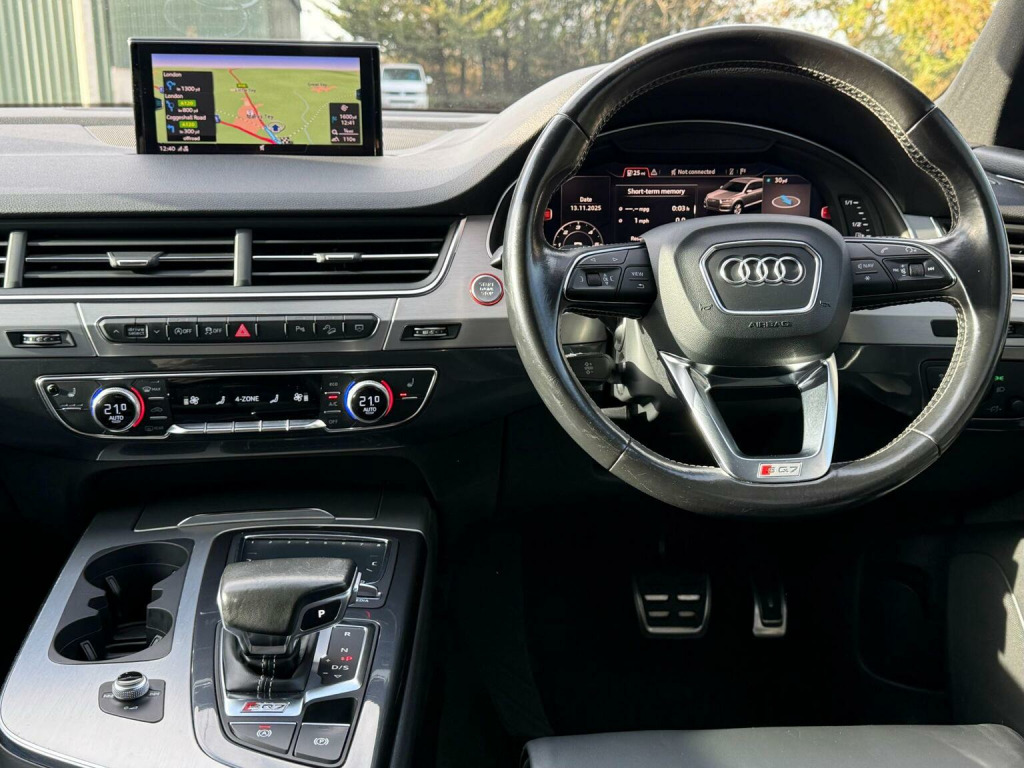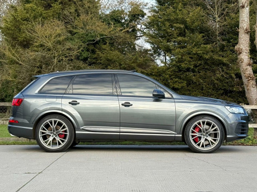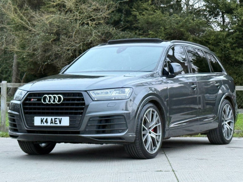 A STUNNING AND EXCEPTIONALLY WELL-PRESENTED SQ7, FINISHED IN DAYTONA GREY PEARL WITH FULL BLACK VALCONA LEATHER INTERIOR AND A PANORAMIC GLASS ROOF. SITTING PERFECTLY ON 22-INCH AUDI SPORT ALLOY WHEELS WITH RED BRAKE CALLIPERS, THIS EXAMPLE LOOKS EVERY BIT AS IMPRESSIVE AS IT DRIVES. POWERED BY THE LEGENDARY 4.0 V8 TDI ENGINE AND PAIRED WITH QUATTRO ALL-WHEEL DRIVE, THE SQ7 DELIVERS EFFORTLESS PERFORMANCE WITH SMOOTH, REFINED POWER — COMBINING TRUE SPORTS SUV PACE WITH LUXURY AND EVERYDAY PRACTICALITY. THE SPECIFICATION INCLUDES PANORAMIC GLASS ROOF, ELECTRIC FRONT SEATS, REVERSING CAMERA, FRONT AND REAR PARKING SENSORS, AUDI SOUND SYSTEM, AND MUCH MORE, CREATING A PREMIUM, HIGH-PERFORMANCE DRIVING ENVIRONMENT. ✔ SERVICE HISTORY, ✔ BOTH KEYS, ✔ MAINTENANCE INVOICES PRESENT, CLEARLY WELL MAINTAINED THROUGHOUT ITS LIFE AND REPRESENTING AN OUTSTANDING EXAMPLE OF AUDIS FLAGSHIP PERFORMANCE SUV. READY TO DRIVE AWAY TODAY