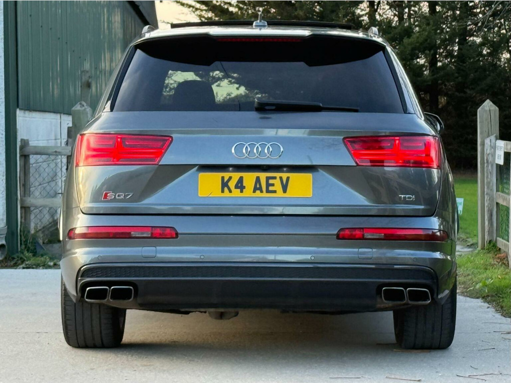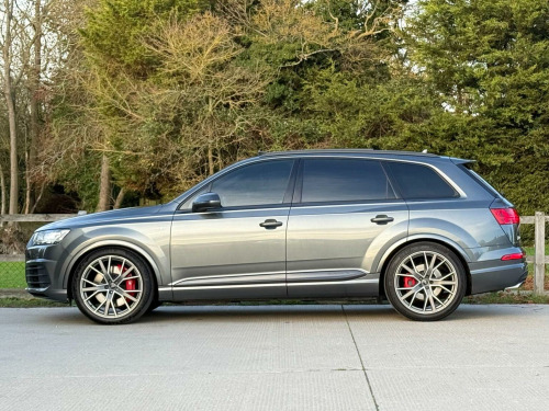 Just Arrived – Audi Sq7 4.0 V8 Tdi Quattro Auto In Stunning Daytona Grey Pearl With Full Black Leather Interior And Panoramic Glass Roof. This Example Looks Superb Sitting On 22-inch Audi Sport Alloy Wheels With Red Brake Callipers And Comes Complete With Service History, Both Keys, And Invoices For Maintenance. The Car Drives Beautifully – Powerful, Smooth And Refined – Offering An Incredible Combination Of Performance, Luxury And Practicality. Specification Highlights Include Daytona Grey Pearl Paint, Panoramic Glass Roof, Full Black Valcona Leather, 22″ Audi Sport Wheels, Red Brake Callipers, Reversing Camera, Parking Sensors, Electric Seats ,Audi Sound System And Much More. This Sq7 Has Clearly Been Well Maintained Throughout Its Life And Represents An Outstanding Example Of Audis Flagship Performance Suv. Ready To Drive Away Today.