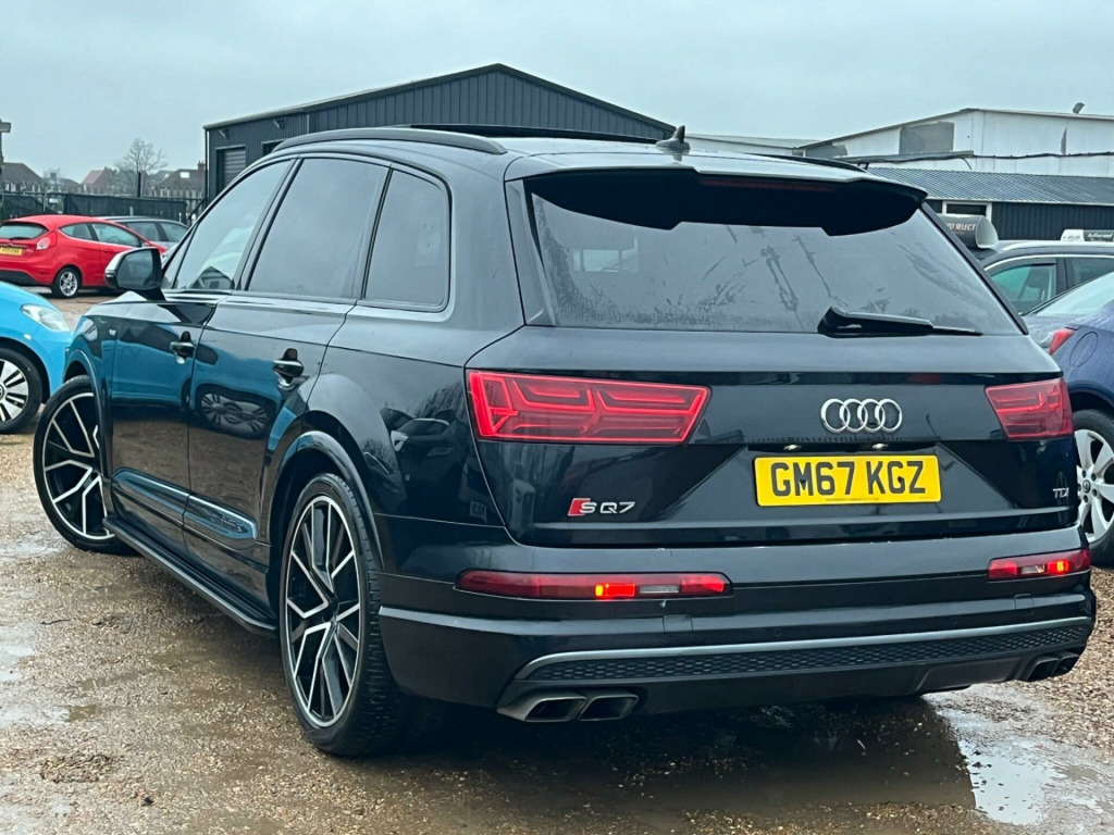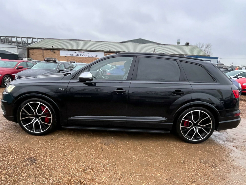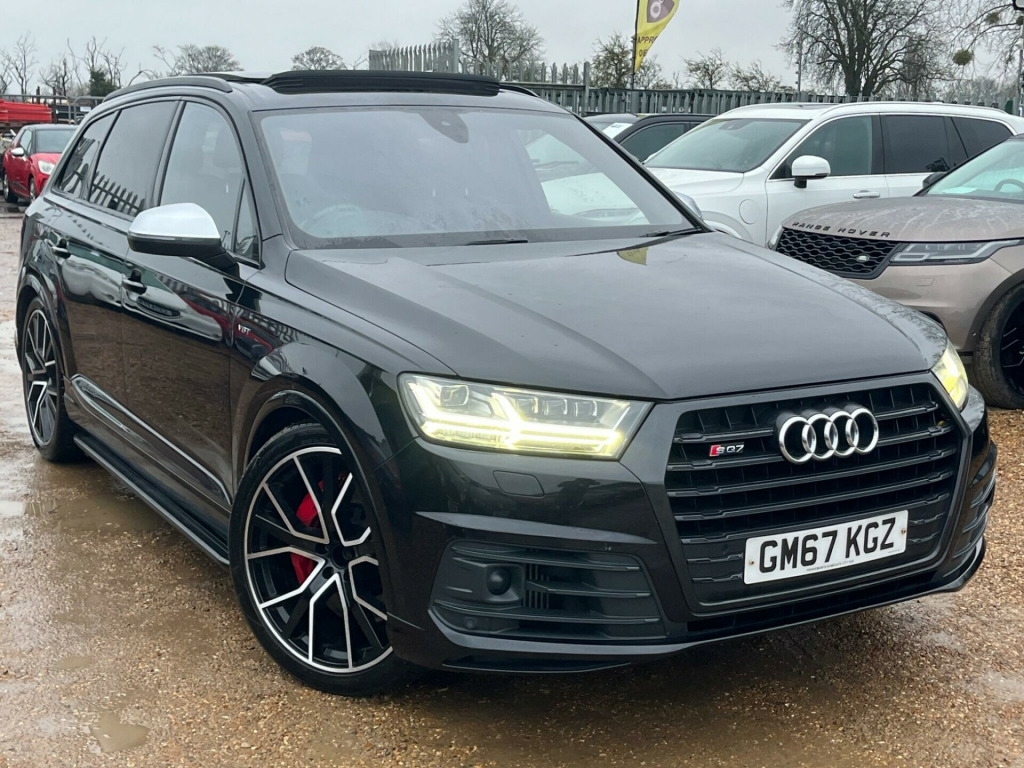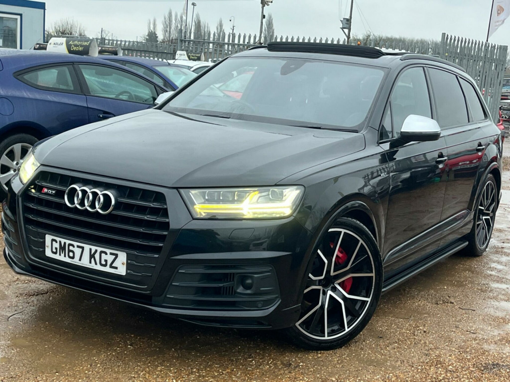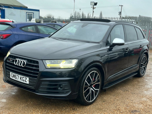 This 2017 Audi SQ7 TDI V8 boasts a full service history, with its last service completed on 02 February 2026 using genuine parts, offering peace of mind. This impressive seven seater features a powerful 4.0 litre diesel engine paired with four wheel drive, ensuring excellent performance and control. It meets Euro 6 emissions standards and has a substantial towing weight of 3500 kg, making it a versatile choice. The vehicle comes with 12 months MOT provided on purchase.Inside, you will find a luxurious cabin appointed with Valcona Leather Sports Seats in black. Enjoy an expansive view through the panoramic glass sunroof, which includes an opening function. The Tour Pack adds adaptive cruise control for effortless journeys, while the Comfort and Sound Package enhances the experience with keyless entry, rear camera parking, heads up display and a premium branded sound system. This SQ7 accelerates from 0 to 62mph in a remarkable 4.9 seconds, a highlight that demonstrates its superior performance compared to other vehicles in its class.It’s equipped with £10k worth of extras• Opening Panoramic Roof • Tour Pack • 21” 5 Arm Turbine design alloys • Comfort and Sound Pack • Technology Pack• Audi Matrix LED Headlights • Metalic Paint• Heat/Sound-Insulating glass with privacy glass• Red Painted brake calipers with S Logo • 3 Spoke Flat-bottomed leatherMulti functioning sports steering wheel • Orca Black, Metalic • Valcona Leather S Line Sports Seats - Black. 20in Alloy Wheels - 5-Arm Off Road Design - Matt Titanium Look Gloss Turned, 7 Seats, AMI - Audi Music Interface, Active Sound Exhaust System, Adaptive S Air Suspension, Airbags - Front Side with Curtain, All Weather LED Headlights, Aluminium Roof Rails, Aluminium Scuff Plates with SQ7 Logo, Anti Theft Locking Wheel Bolts, Anti-Theft Alarm, Audi Connect - 3 Month Trial, Audi Connect Infotainment Embedded SIM, Audi Connect Safety and Service - e-call, Audi Drive Select, Audi Hill Hold Assist, Audi Parking System Plus, Audi Pre-Sense City, Audi Smartphone Interface, Audi Sound System, Audi Virtual Cockpit, Auto-Dimming Rear-View Mirror, Bluetooth Interface, Brake Calipers - Black with S Logo, Child Locks, Chrome Package, Cloth Headlining in Black, Comfort Front Centre Armrest, Cruise Control with Speed Limiter, DAB Digital Radio Reception, Deluxe Four-Zone Automatic Climate Control, Door Mirrors - Heated-Electrically Adjustable-Folding, Driver Information System with Colour Display, Driver and Front Passenger Airbag with Front Passenger Airbag Deactivation, Dynamic Rear Indicators, ESC - Electronic Stabilisation Control inc ABS - EBD - ASR - EDL, Electric Windows - Front and Rear, Electrically Adjustable 4-Way Lumbar Support, Electrically Adjustable Front Seats, Electromechanical Parking Brake, Electromechanical Power Steering, Exterior Mirror Housings in Aluminium Look, First Aid Kit and Warning Triangle, Front and Rear Floor Mats, Full Body-Colour Paint Finish, Gloss Package, Headlight Washer System, Heat Insulating Glass - Windscreen, Heated Front Seats, High-Beam Assist, Hill Descent Control, ISOFIX Child Seat Mounting, Interior Light Package, Keyless Go, LED Rear Lights, Light and Rain Sensor, Luggage Compartment - Cover Electric, MMI Navigation Plus including MMI Touch, MMI Radio Plus, Power Operated Tailgate, Power Steering - Servotronic, Privacy Glass, Rear View Camera, Remote Central Locking, S Body Styling, Seat Belt Monitoring, Stainless Steel Loading Sill Protector, Steel Pedal Cluster, Steering Wheel - 3-Spoke Leather - Multi-function - Sports, Steering Wheel - Height and Reach Adjustable, Tool Kit, Two Cup-Holders in Centre Console, Tyre Pressure Loss Indicator, Tyre Repair Kit, Upper Inlays in Brushed Aluminium-Sono and Lower Inlays in Chrome Paint Finish-Slate Grey, Voice Control System, Tour Pack, Panoramic Glass Sunroof, 21in Alloy Wheels - 5-Arm-Turbine Design - Contrasting Grey - Partly Polished Alloy Wheels, Comfort and Sound Package, Technology Package, Audi Matrix LED Headlights, Red Painted Brake Calipers with S Logo, Heat and Sound Insulating Glass with Privacy Glass, Steering Wheel - 3-Spoke Leather-Multi-function-Flat Bottomed-Sports-Shift Paddles, Black Roof Rails, Black Styling Package, Valcona Leather - Sports Seats Plus - Black, Leather Package. Full service history