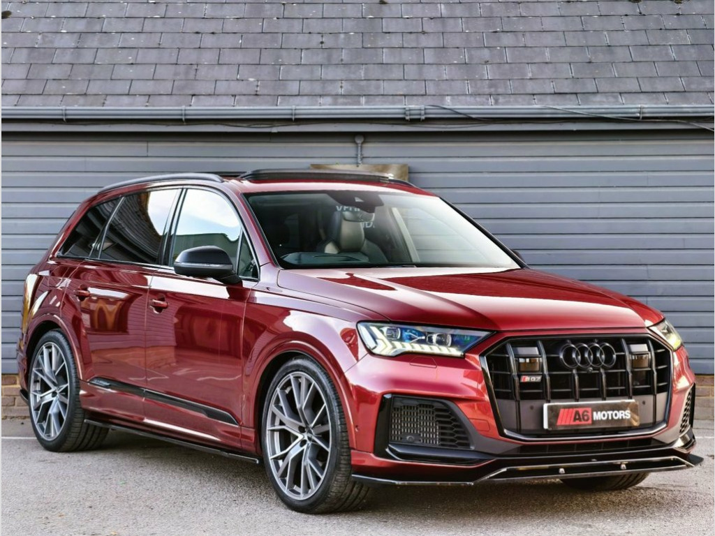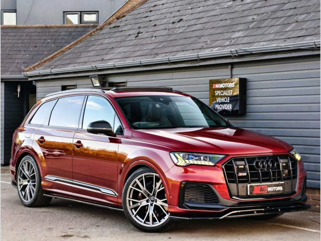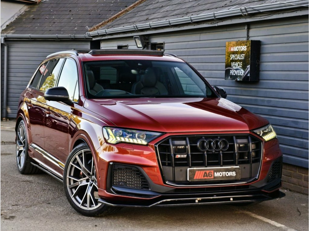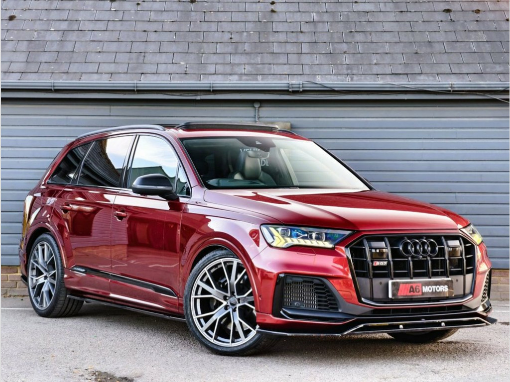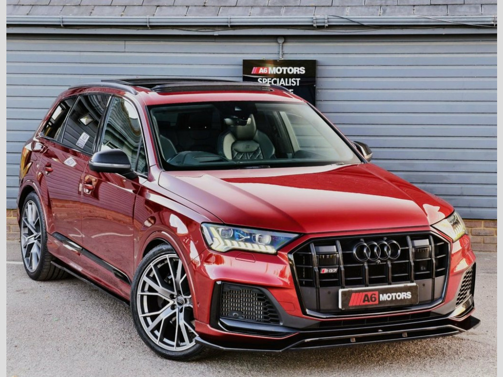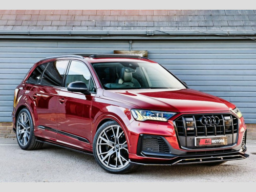 SAME DAY FINANCE AVAILABLE WITH £0 DEPOSIT. CALL OUR FINANCE TEAM FOR A QUOTATION TODAY. REQUEST A PERSONALISED VIDEO TODAY. STUNNING AUDI SQ7 VORSPRUNG EDITION WITH JUST 1 OWNER FROM BRAND NEW BOASTING A FULL SERVICE HISTORY & COMPLIMENTED BY A HUGE FACTORY SPECIFICATION FURTHER BENEFITING FROM HAVING A MAXTON DESIGN BODYKIT FITTED. A VERY RARE EXAMPLE IN THIS COLOUR COMBINATION. THIS LOVELY EXAMPLE IS SUPPLIED HPI CLEAR & WITH A NATIONWIDE WARRANTY. GOOD CONDITION THROUGH OUT. DRIVES WELL. GOOD TYRES ALL ROUND. BEING A VORSPRUNG MODEL IT HAS A HUGE SPEC WHICH INCLUDES PANORAMIC GLASS SUNROOF, 22" ALLOY WHEELS, REAR PRIVACY GLASS, 360 & 3D SURROUND VIEW CAMERAS, AMBIENT LIGHTING, SOFT CLOSURE DOORS, HEADS UP DISPLAY, ADAPTIVE CRUISE CONTROL, LANE ASSIST, HEATED & COOLING FRONT SEATS, MIDDLE ROW OUTER HEATED SEATS, FRONT ELECTRIC & MEMORY SEATS, APPLE CAR PLAY, ANDROID AUTO, MASSAGE SEATS, ADAPTIVE AIR SUSPENSION, BANG OLUFSEN SOUND SYSTEM, SAT NAV, DAB, BLUETOOTH & MORE. Audi Warranty - Covering you for up to 4, Matador Red, Audi Exclusive, Exclusive Paint Identifier, 22in Alloy Wheels - 10.0J 5-Arm-Trapezoi, 22in Alloy Wheels - 10.0J 5-V-Spoke - St, 7 Seats, AMI - Audi Music Interface, Airbags - Driver - Front Passenger - Fro, All-Wheel Steering, Anti-Theft Alarm, Anti-Theft Wheel Bolts and Wheel Looseni, Audi Beam, Audi Connect (3 Year Subscription From N, Audi Connect Safety and Service - e-call, Audi Drive Select, Audi HD Matrix LED Headlights with Audi , Audi Hill Hold Assist, Audi Music Interface in the Rear, Audi Parking System Plus, Audi Phone Box with Wireless Charging, Audi Pre-Sense Front, Audi Smartphone Interface, Audi Virtual Cockpit, Auto Dimm