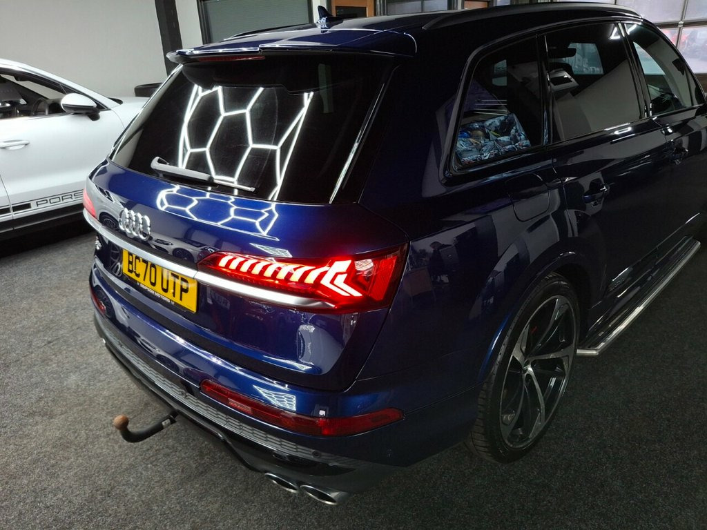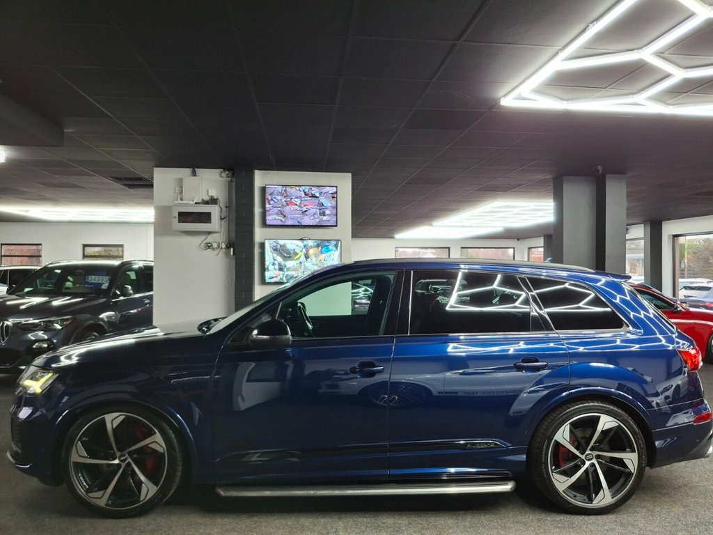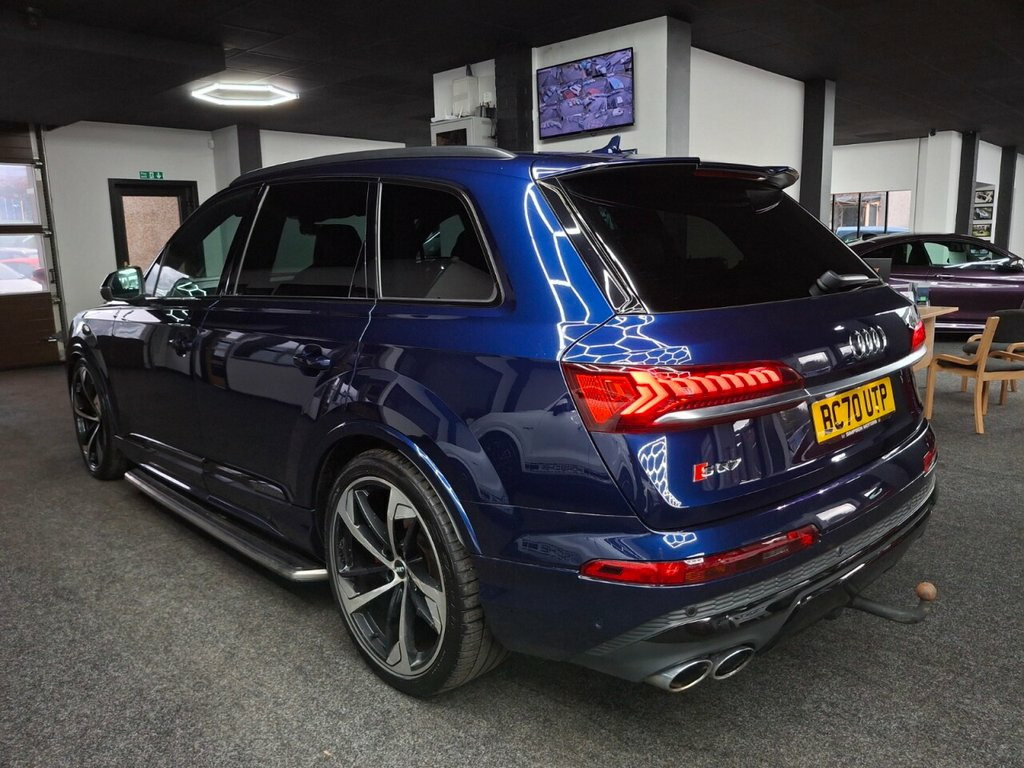 Here we have a Stunning 2020 Audi SQ7 4.0 TDI V8 Vorsprung Tiptronic quattro, finished in the beautiful Navarra Blue – a superb colour that really suits the SQ7 and gives it a great presence on the road. The car has covered 57,080 miles from new and has had 2 owners, who have kept a comprehensive service record throughout its life. It was last serviced in March 2025 at 50,303 miles. For total peace of mind, the vehicle will also receive a fresh service and be supplied with a fresh 12 months MOT prior to sale, bringing it fully up to date and ready for the new owner. The car comes complete with 2 keys and the Audi book pack. It will also be supplied with a warranty included, with the option to extend up to 3 years for additional peace of mind — please ask us for more details and we will be happy to discuss. We can also offer G-Techniq Crystal ceramic coating for £399 — please let us know if you would like this applied to your car. 22in Alloy Wheels - 10.0J 5-Arm-Trapezoi, Navarra Blue