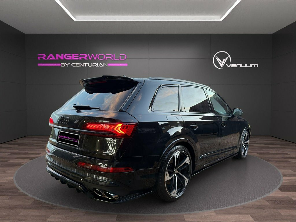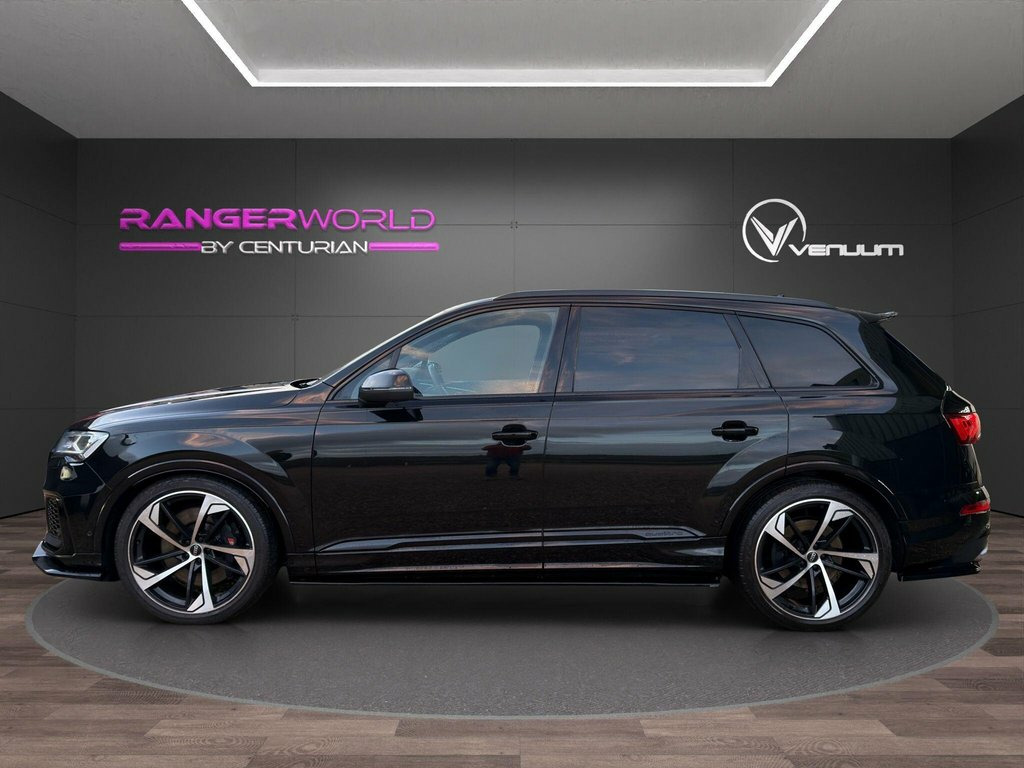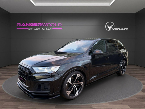 TECHNOLOGY PACK + BANG AND OLUFSEN TOUR PACK This 2023 Audi SQ7 TFSI V8 Black Edition boasts exceptionally low mileage for its year, having covered just 14,000 miles. As a Euro 6 compliant model, it features a powerful 4.0 litre petrol engine paired with a four wheel drive system, ensuring confident performance in all conditions. This seven seat Black Edition variant offers a premium interior experience, enhanced by the convenience of heated front seats and deluxe four zone automatic climate control. For effortless journeys, the Tour Pack includes adaptive cruise control, while a rear view camera aids parking. Connectivity is seamless thanks to the integrated Bluetooth interface. The Audi SQ7 TFSI V8 Black Edition delivers an exhilarating driving experience, accelerating from 0 to 62 miles per hour in a remarkable 4.1 seconds, a testament to its potent V8 engine. This performance is matched by its practicality, offering substantial boot space for all your needs and a generous towing weight of 3500 kg, making it ideal for both family adventures and towing. These attributes, combined with its advanced technology and luxurious appointments, position this SQ7 as a superior choice within its class.RANGER WORLD exercises all reasonable care and skill in providing you with spec check Data. All rights reserved. RANGER WORLD does not accept responsibility for errors, omissions, liability or loss suffered due to the use of spec check Data by any user or other party. spec check is a gui 22in Alloy Wheels - 10.0J 5-Arm-Trapezoi, 7 Seats, Airbags - Driver - Front Passenger - Fro, All-Wheel Steering, AMI - Audi Music Interface, Anti-Theft Alarm, Anti-Theft Wheel Bolts and Wheel Looseni, Audi Beam, Audi Connect (3 Year Subscription From N, Audi Connect Safety and Service - e-call, Audi Connect with Amazon Alexa Integrati, Audi Drive Select, Audi Hill Hold Assist, Audi Parking System Plus, Audi Pre-Sense Front, Audi Smartphone Interface, Audi Sound System, Audi Virtual Cockpit, Auto Dimming and Frameless Rear View Mir, Black Roof Rails, Bluetooth Interface, Body Coloured Door Mirrors, Camera-Based Traffic Sign Recognition, Cloth Headlining in Black, Comfort and Sound Package, Co