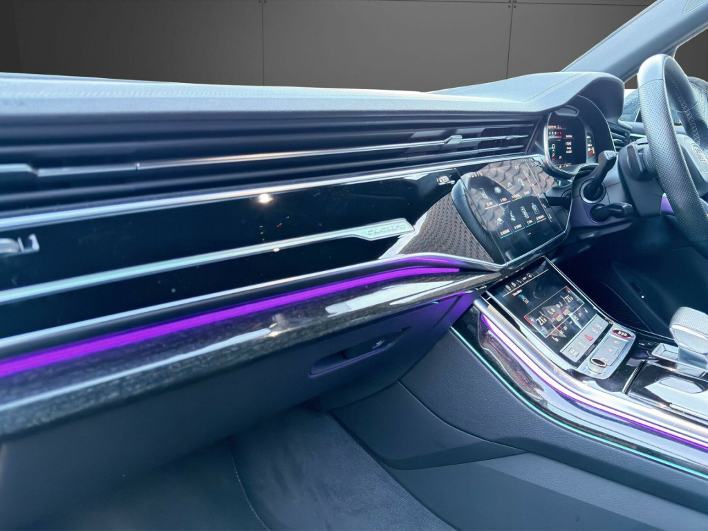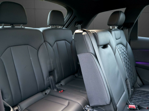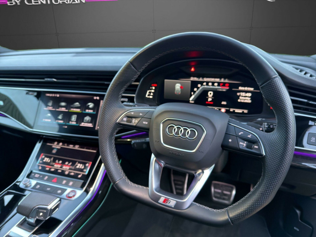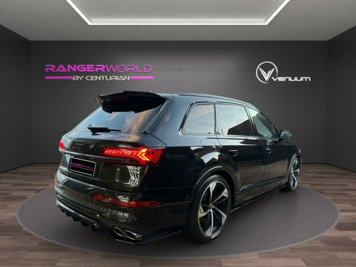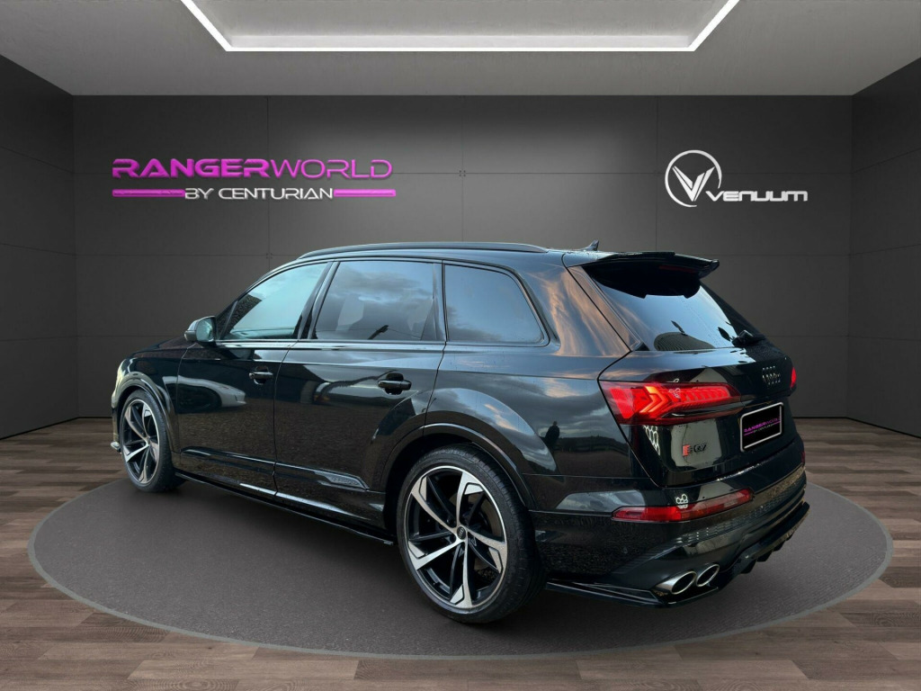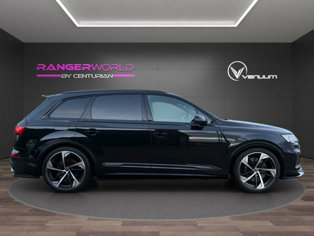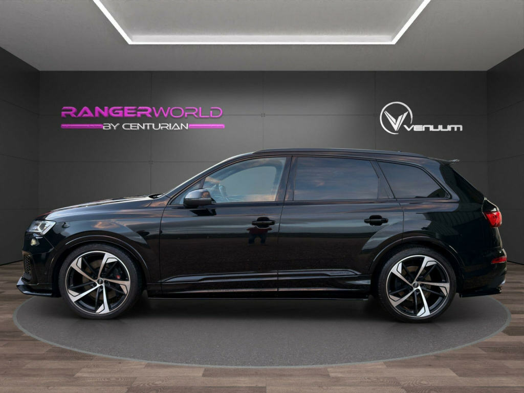 TECHNOLOGY PACK + BANG AND OLUFSEN TOUR PACK This 2023 Audi SQ7 TFSI V8 Black Edition boasts exceptionally low mileage for its year, having covered just 14,000 miles. As a Euro 6 compliant model, it features a powerful 4.0 litre petrol engine paired with a four wheel drive system, ensuring confident performance in all conditions. This seven seat Black Edition variant offers a premium interior experience, enhanced by the convenience of heated front seats and deluxe four zone automatic climate control. For effortless journeys, the Tour Pack includes adaptive cruise control, while a rear view camera aids parking. Connectivity is seamless thanks to the integrated Bluetooth interface.The Audi SQ7 TFSI V8 Black Edition delivers an exhilarating driving experience, accelerating from 0 to 62 miles per hour in a remarkable 4.1 seconds, a testament to its potent V8 engine. This performance is matched by its practicality, offering substantial boot space for all your needs and a generous towing weight of 3500 kg, making it ideal for both family adventures and towing. These attributes, combined with its advanced technology and luxurious appointments, position this SQ7 as a superior choice within its class.RANGER WORLD exercises all reasonable care and skill in providing you with spec check Data. All rights reserved. RANGER WORLD does not accept responsibility for errors, omissions, liability or loss suffered due to the use of spec check Data by any user or other party. spec check is a guide and all equipment should be physically verified, RANGER WORLD does not warrant any information provided as part of the spec check.. 22in Alloy Wheels - 10.0J 5-Arm-Trapezoid Design Audi Sport in Anthracite Black with Gloss Turned Finish, 7 Seats, AMI - Audi Music Interface, Airbags - Driver - Front Passenger - Front Side - Curtain, All-Wheel Steering, Anti-Theft Alarm, Anti-Theft Wheel Bolts and Wheel Loosening Warning, Audi Beam, Audi Connect (3 Year Subscription From New), Audi Connect Safety and Service - e-call, Audi Connect with Amazon Alexa Integration, Audi Drive Select, Audi Hill Hold Assist, Audi Parking System Plus, Audi Pre-Sense Front, Audi Smartphone Interface, Audi Sound System, Audi Virtual Cockpit, Auto Dimming and Frameless Rear View Mirror, Black Roof Rails, Bluetooth Interface, Camera-Based Traffic Sign Recognition, Cloth Headlining in Black, Comfort Front Centre Armrest, Cruise Control with Speed Limiter, DAB Digital Radio, Deluxe Four-Zone Automatic Climate Control, Door Mirrors - Heated - Electrically Adjustable - Folding and Auto Dimming with Memory Function, ESC - Electronic Stabilisation Control inc ABS - ASR and EDL, Electric Windows - Front and Rear, Electromechanical Parking Brake, Electromechanical Power Steering, Extended Pedestrian Protection Measures, First Aid Kit and Warning Triangle, Flat-Bottomed 3-Spoke Leather Multi-Function Sports Steering Wheel with Shift Paddles, Front Sun Visors with Illuminated Vanity Mirrors, Front and Rear Floor Mats, Fuel Tank 85L, Gloss Black Finish for the Exterior Audi Rings and SQ7 Logos, Heated Front Seats, High Beam Assist, Illuminated Door Sill Trims with S Logo, Inlays - Polished Oak with Grey Finish, Keyless Go with Remote Central Locking, LED Daytime Running Lights, LED Headlights, LED Interior Ambient Lighting Pack, LED Rear Lights, Lane Departure Warning, Luggage Compartment Cover, Luggage Compartment Sill Protection in Stainless Steel, MMI Navigation Plus with MMI Touch, Natural Voice Recognition, Pedals in Stainless Steel, Power Operated Tailgate, Privacy Glass, Rear View Camera, S Front and Rear Bumpers, S Line Roof Spoiler, S Specific Adaptive Air Sport Suspension, S Specific Rear Bumper with 4 Exhaust Pipes, Seat Belt Monitoring, Titanium Black Door Mirrors, Titanium Black Styling Pack, Tool Kit, Tyre Pressure Loss Indicator, Tyre Repair Kit, Windshield with Heat Insulated Glass, Tour Pack, Body Coloured Door Mirrors, Comfort and Sound Package, Valcona Leather - S Super Sport Seats - Black with Grey Stitching, Valcona Leather - Sports Seats with S Embossed Logo - Diamond Silver.